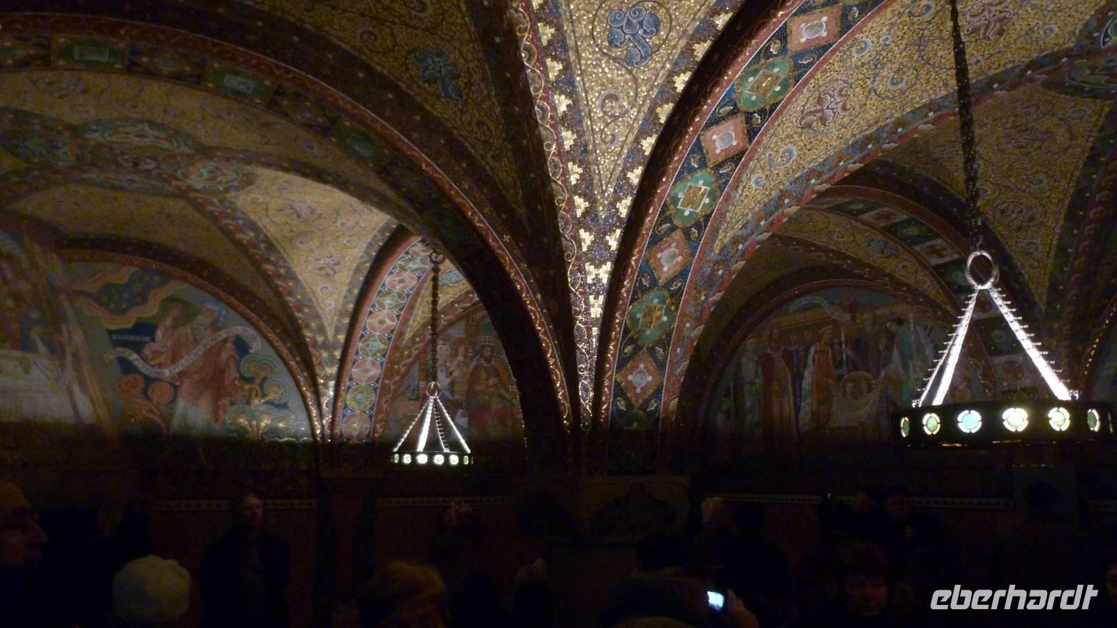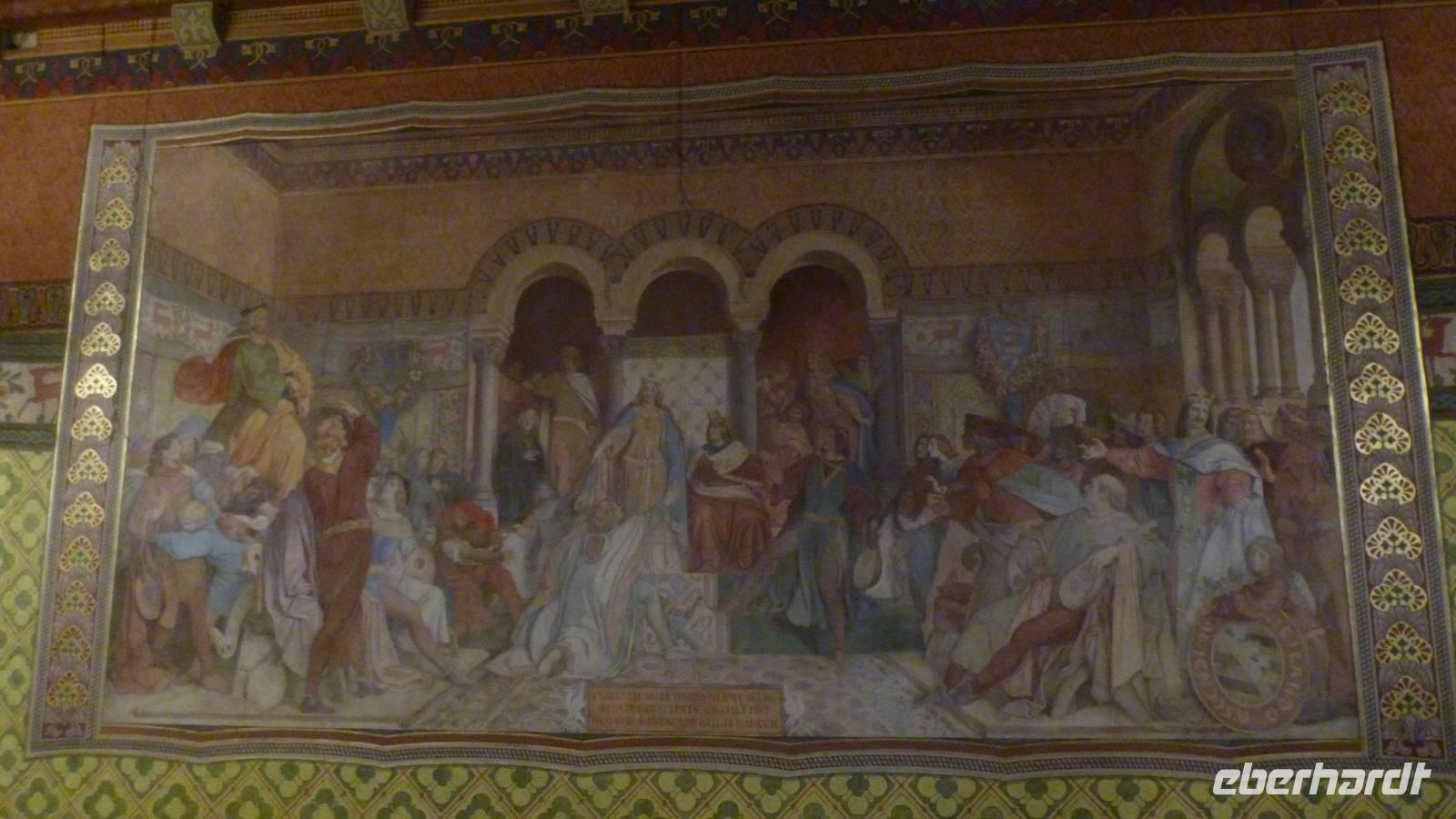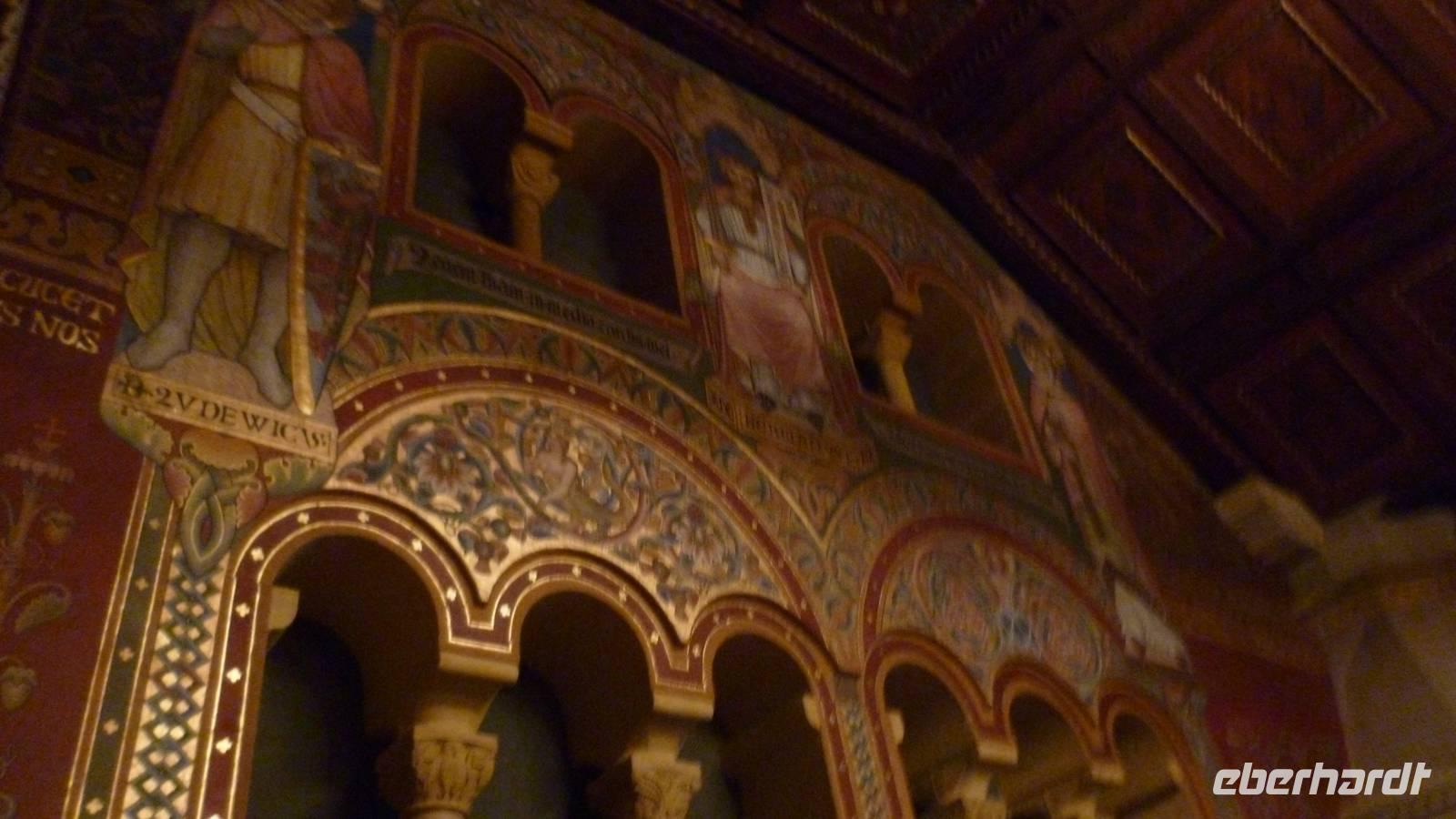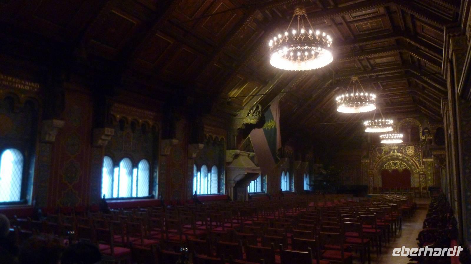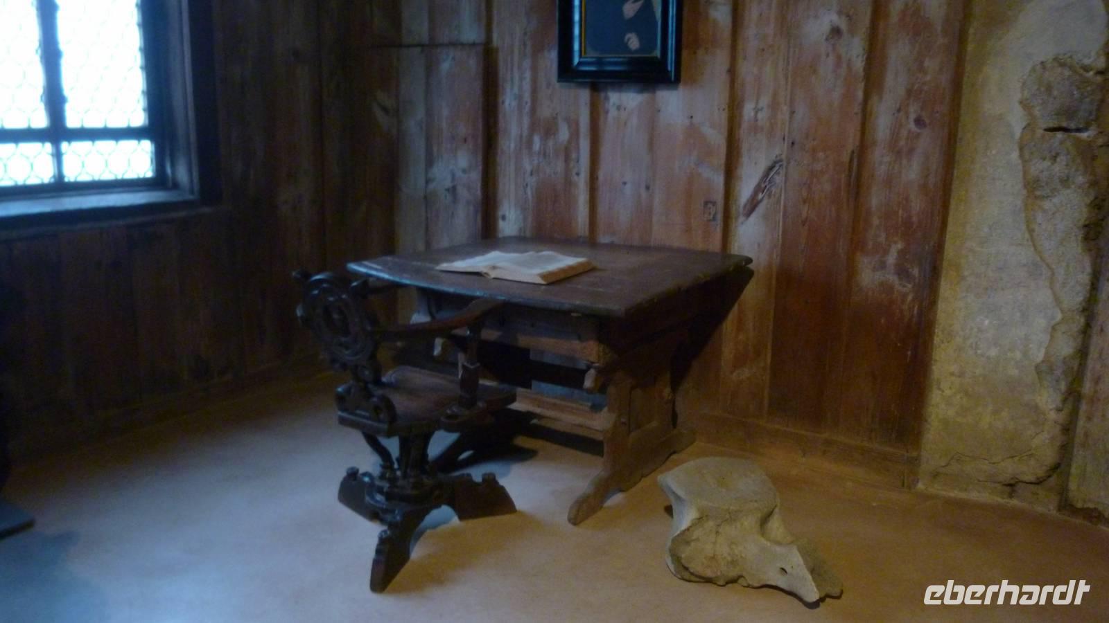 Wir haben wirklich Glück mit unseren Gästeführern auf dieser Reise, denn sowohl die beiden Herren in Erfurt, als auch der Gästeführer der Wartburg sind hervorragend. Er nimmt uns mit auf eine Zeitreise von Ludwig dem Springer, der im 11. Jahrhundert diese Burg errichten lies, über Elisabeth von Thüringen, bis hin zu Luther, der sich hier auf der Burg aufhielt. Sehr beeindruckend ist vor allem das Frauenzimmer mit tausenden von Mosaikstücken, die Decke und Wände verzieren.