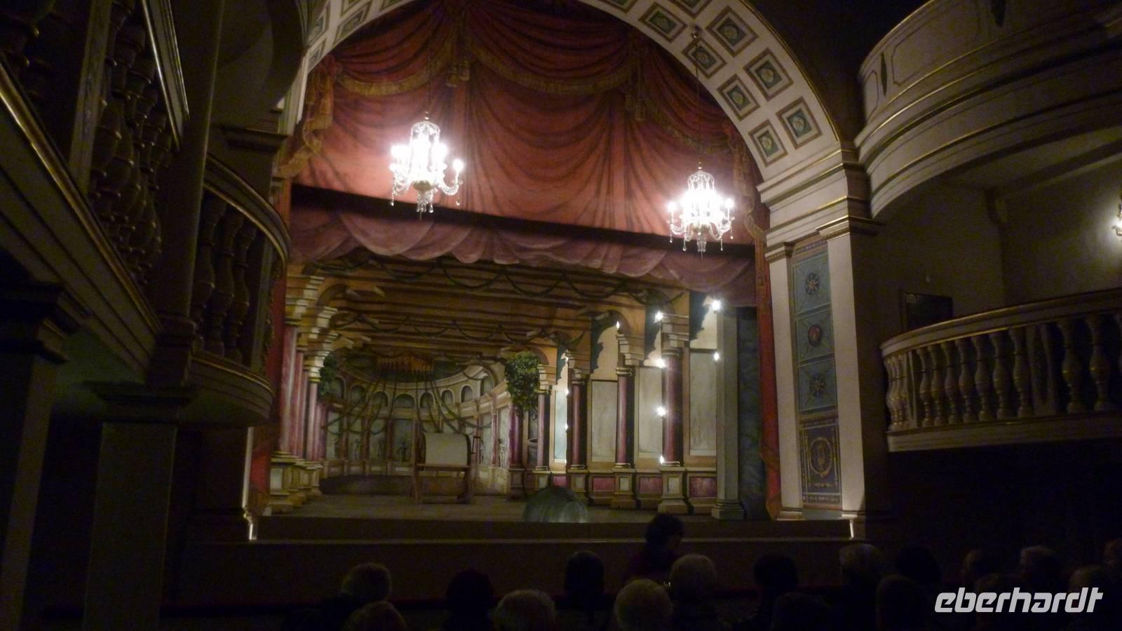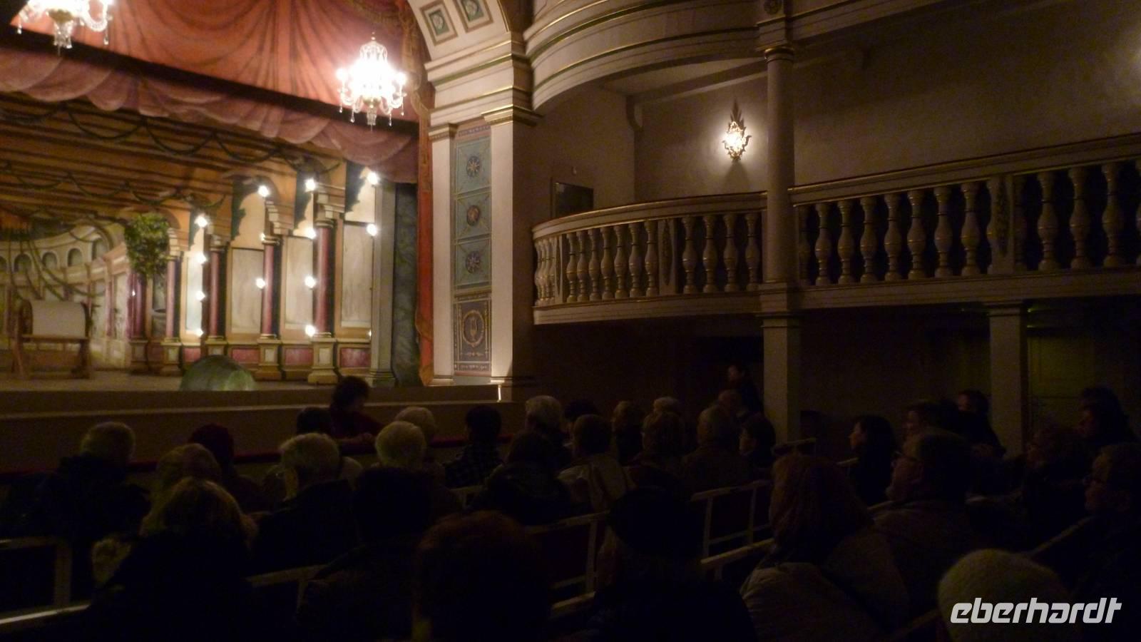 Das neue Jahr begrüßt uns mit herrlichem Kaiserwetter. Der heutige Ausflug führt uns nach Gotha, genau gesagt zum Herzen der Stadt, dem Schloss Friedenstein. Dort angekommen werden wir herzlich begrüßt von unserer Gästeführerin. Sie war selber lange im Theaterchor tätig und zeigte uns mit viel Enthusiasmus das berühmte Ekhof-Theater. Conrad Ekhof ist bekannt als der Vater des Theaters. Durch ihn wurden die Stücke von Goethe und vielen weiteren berühmten Schriftstellern auf die Bühne gebracht. Das Theater ist toll! Die Bühne ist mit viel Liebe gestaltet und unsere Gästeführerin zeigt uns die Geräuschkullisse von Regen und Donner. Eine kurze Führung durch das Museum des Theaters darf natürlich nicht fehlen.