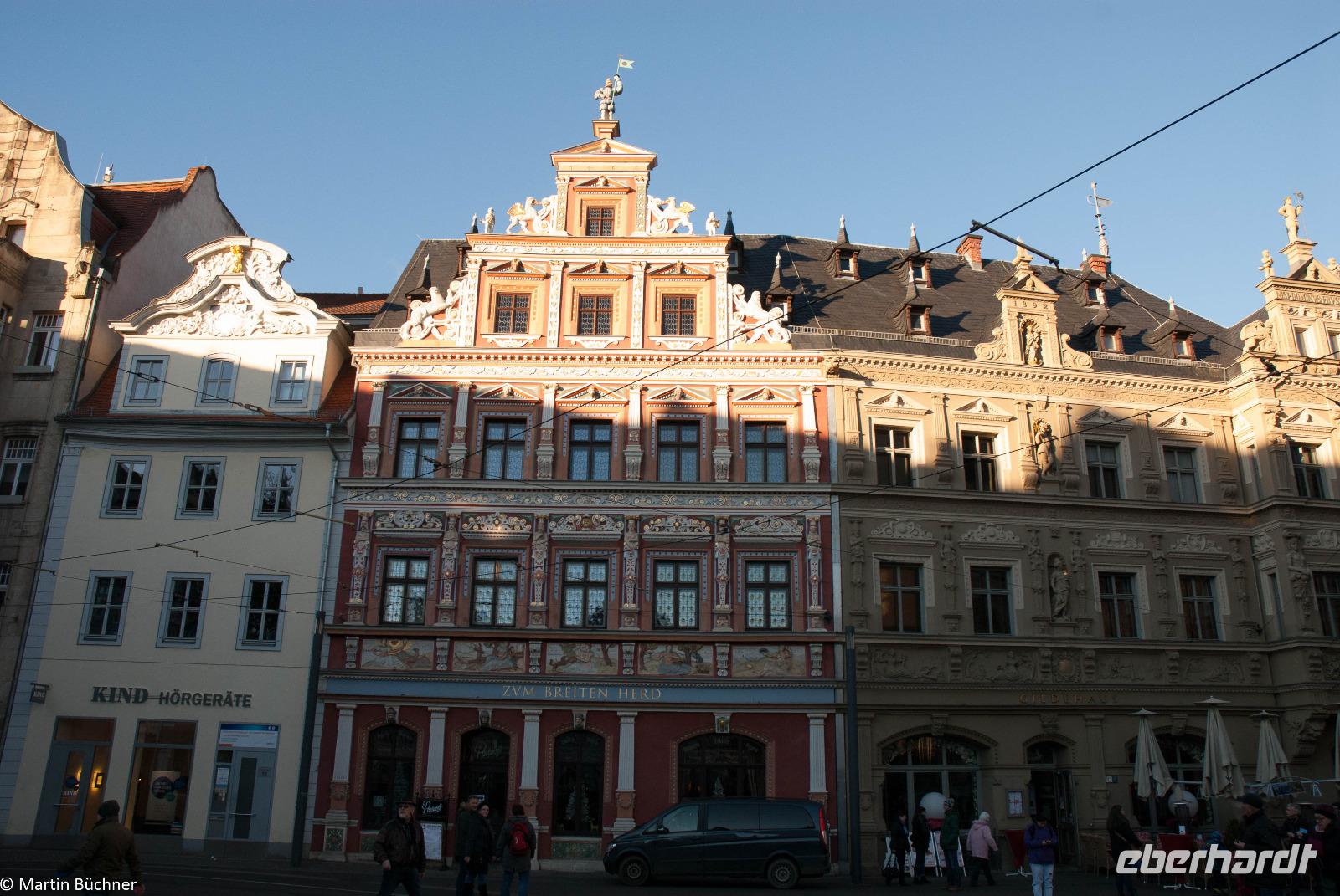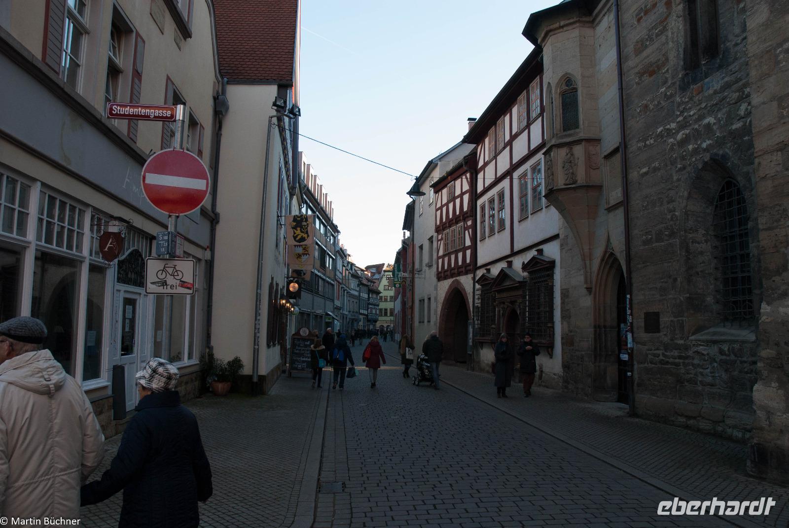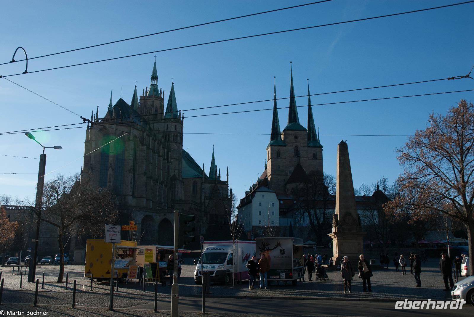 Zunächst bleibt etwas Zeit sich am Domplatz etwas gegen den kleinen Hunger zu versorgen. Heute ist auf dem Domplatz Markttag, wer möchte kann sofort in die thüringische Kulinarik eintauchen. Auch ein kleiner Teil Weihnachtsmarkt ist noch vorhanden.
