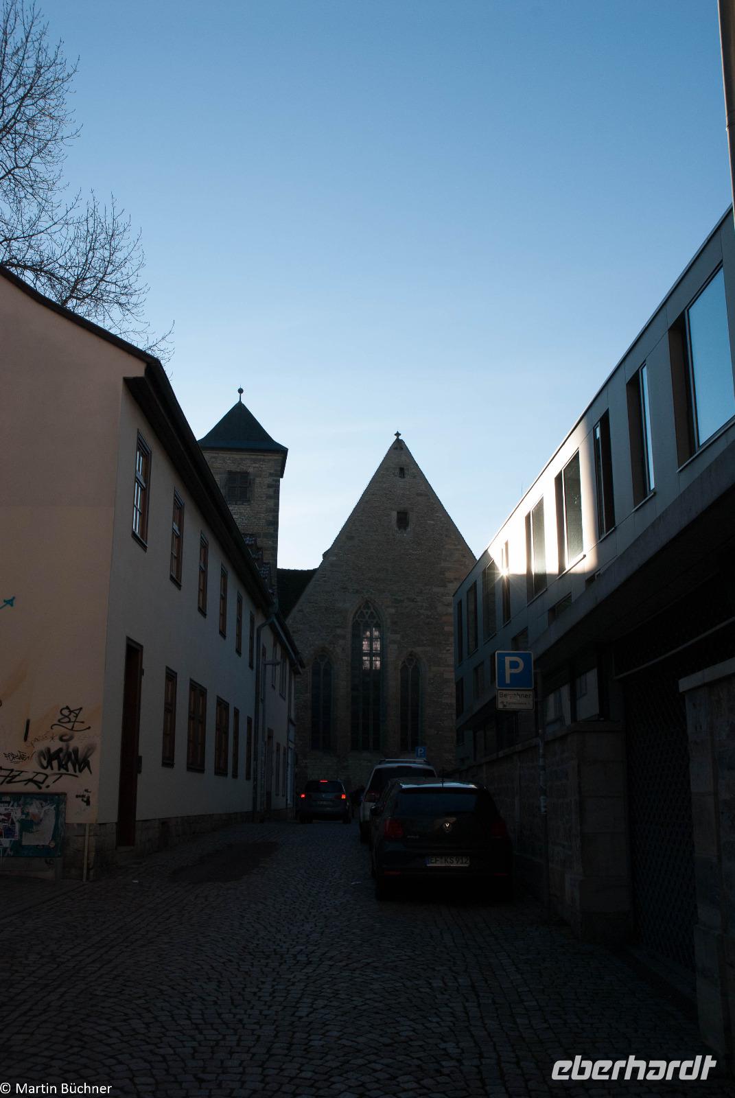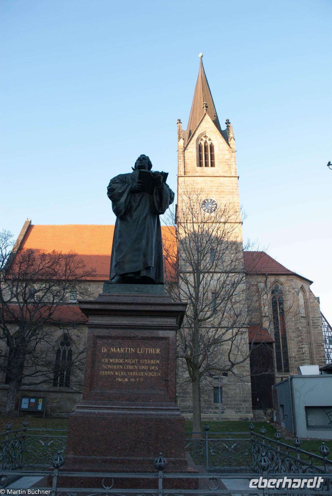 Beginnend am Domplatz über den Waidspeicher, der Via Regia (Marktstraße), Allerheiligenstraße hin zum weltberühmten Augustinerkloster. Dort wo es alles anfing. Luthers Ausbildung, hier erwarb er die Sprachkenntnisse, die er für seine spätere Übersetzung brauchte. Bei Erfurt-Stotternheim kam er in ein schweres Gewitter, bei dem er Gott aus Dankbarkeit seiner Unversehrtheit gelobte in Kloster zu gehen. Ein Kloster wiederum, dass ihn lehrte bescheiden zu sein und ihm möglicherweise auch die Probleme des Systems vor Augen führte.