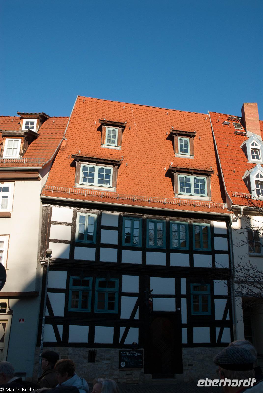 Am Nachmittag kehren wir zurück nach Erfurt. Viele Gäste nutzen das Angebot des Neujahrskonzerts, andere nutzen ihre Freizeit um die herrliche Altstadt in ihrer Freizeit weiter zu erkunden. Ein Tipp ist hier auch der Erfurter Anger. Ein Stell-Dich-Ein der Weltgeschichte gab sich dort in mehreren Häusern die Klinke in die Hand, manchmal auch mit Jahrhunderten Abstand. Unter diesen Besuchern waren Otto von Bismarck, Martin Luther, die Heilige Elisabeth von Thüringen (Rosenwunder), die Schwedische Königin Maria Elenora von Brandenburg (Gattin von König Gustav II. Adolf von Schweden), Alexander und Wilhelm von Humboldt, Friedrich Schiller, Johann Wolfgang von Goethe, Kaiser Napoleon I. Bonaparte, um nur einige zu nennen...