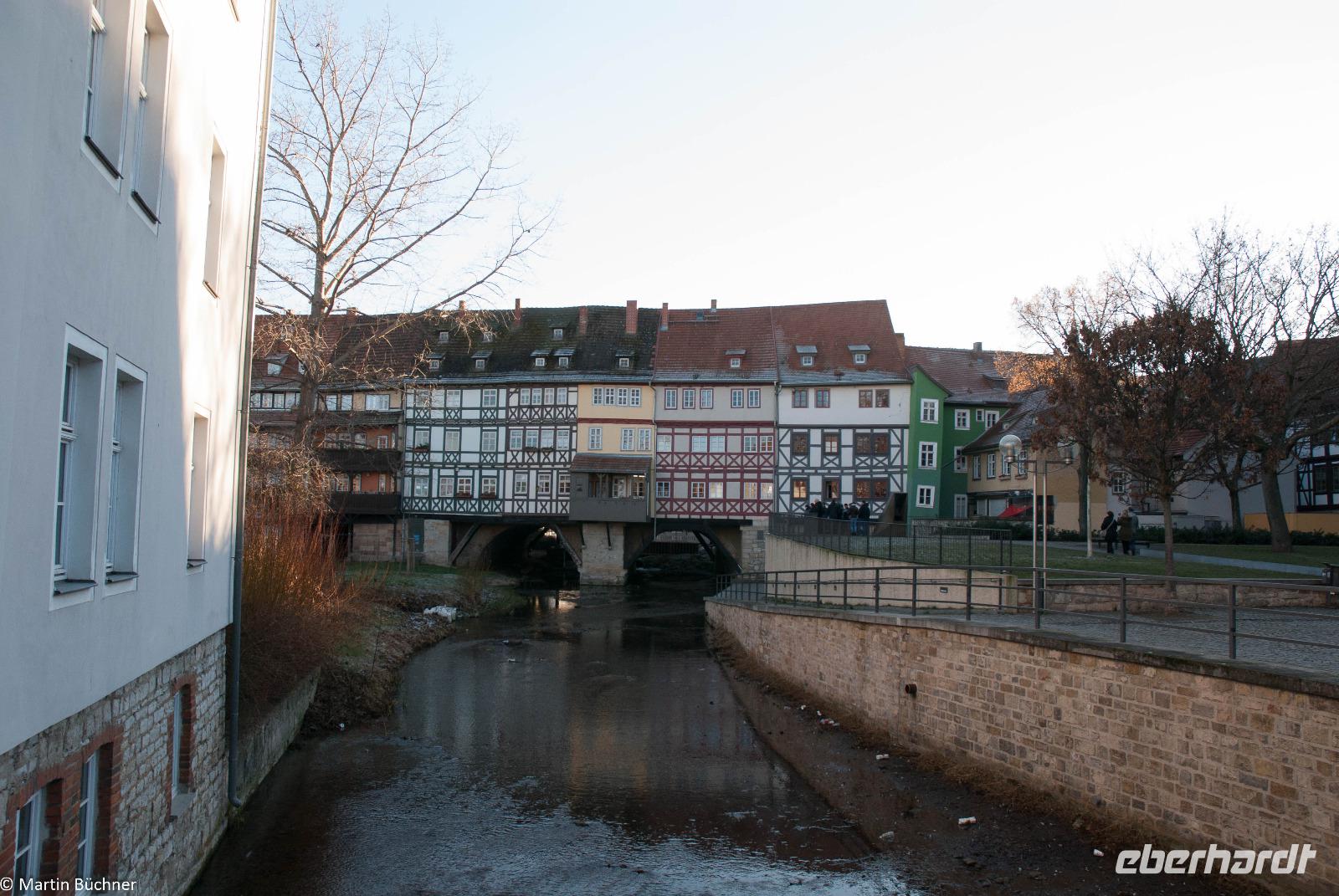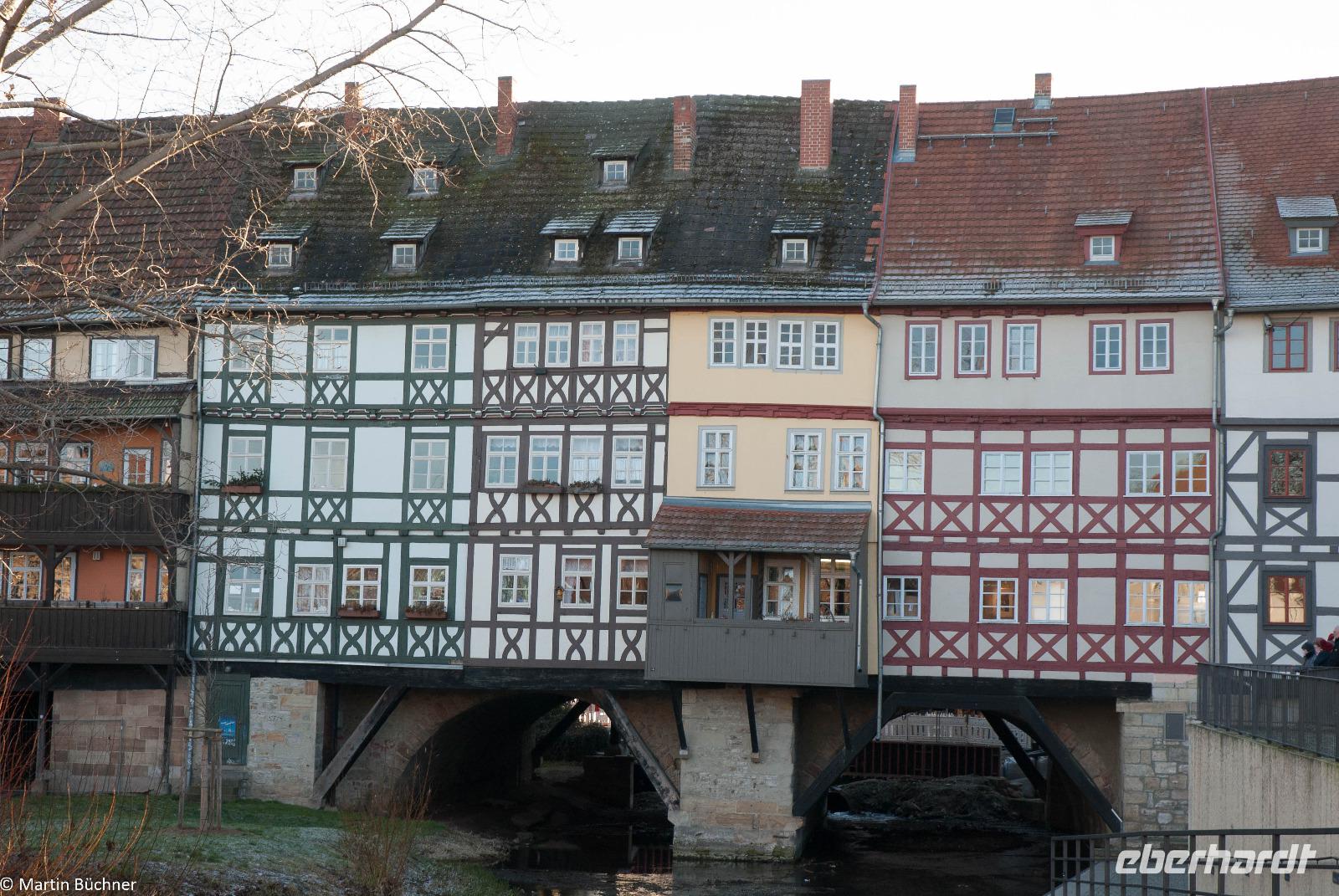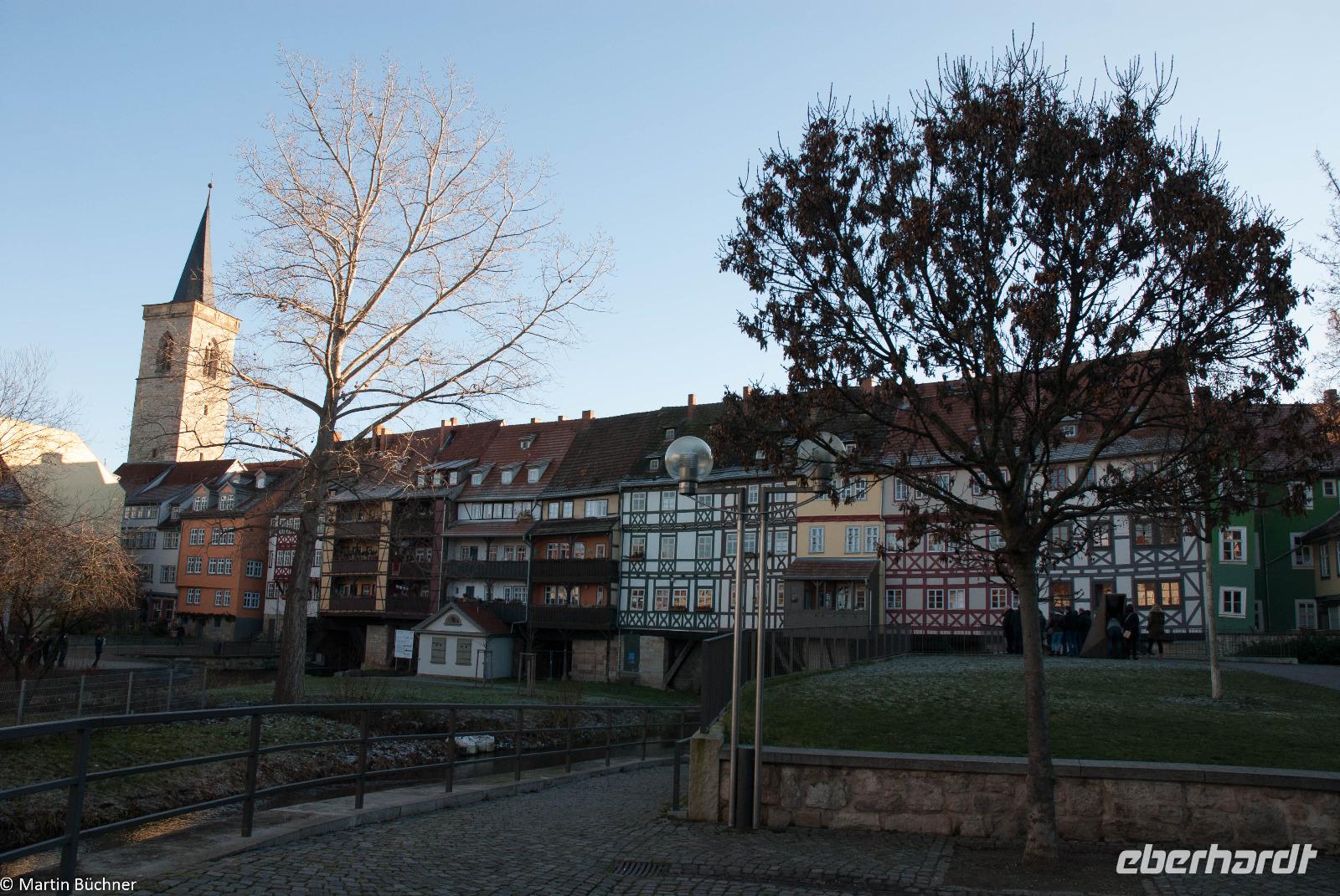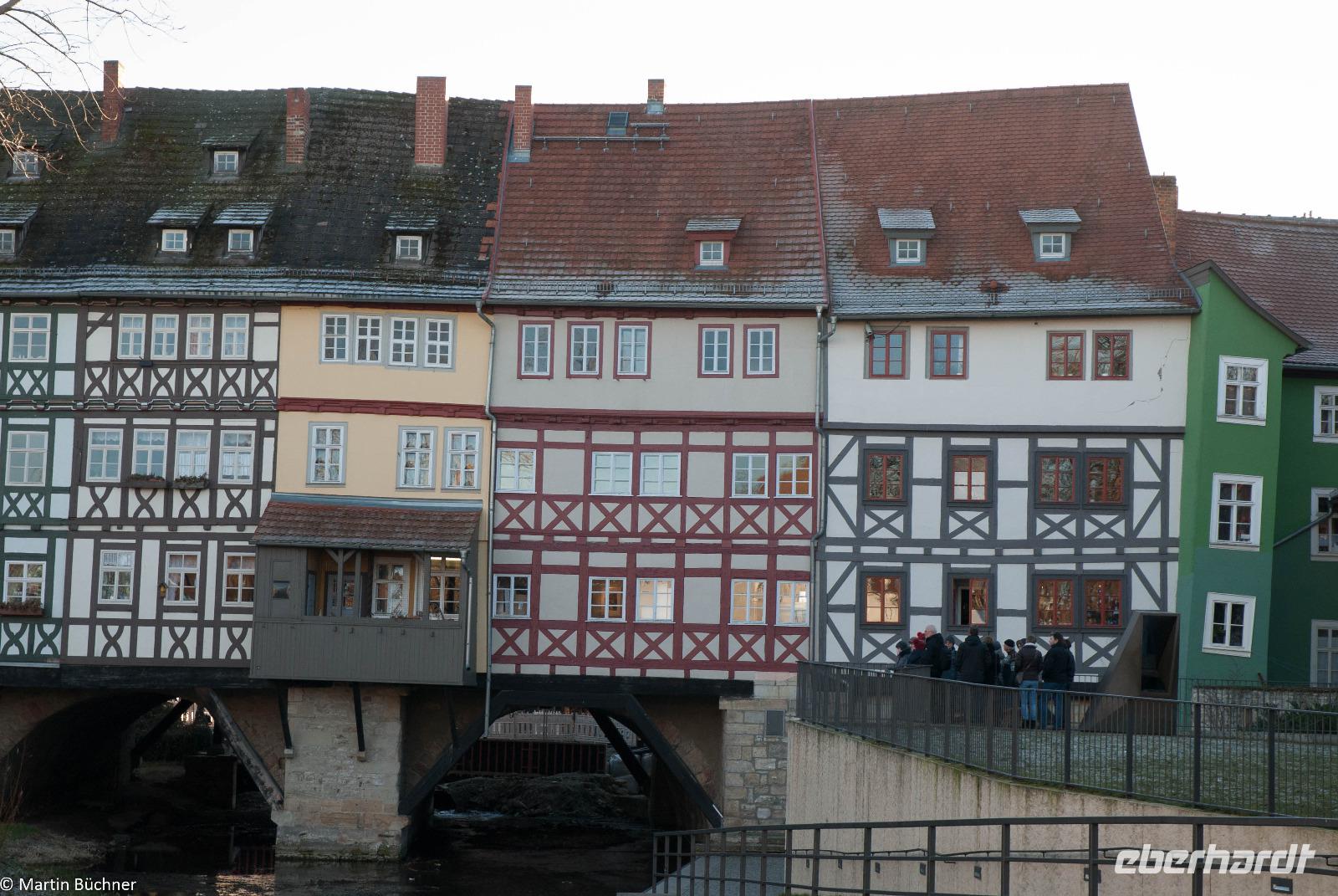 Die Stadtführung führt weiter vorbei an der berühmten Krämerbrücke, der einzigen mit Häusern bebauten mittelalterlichen Brücke der nördlich der Alpen.