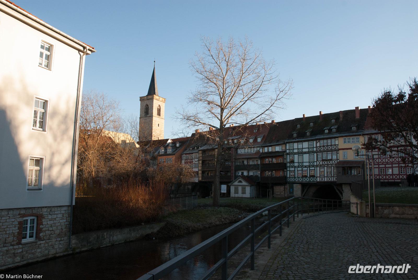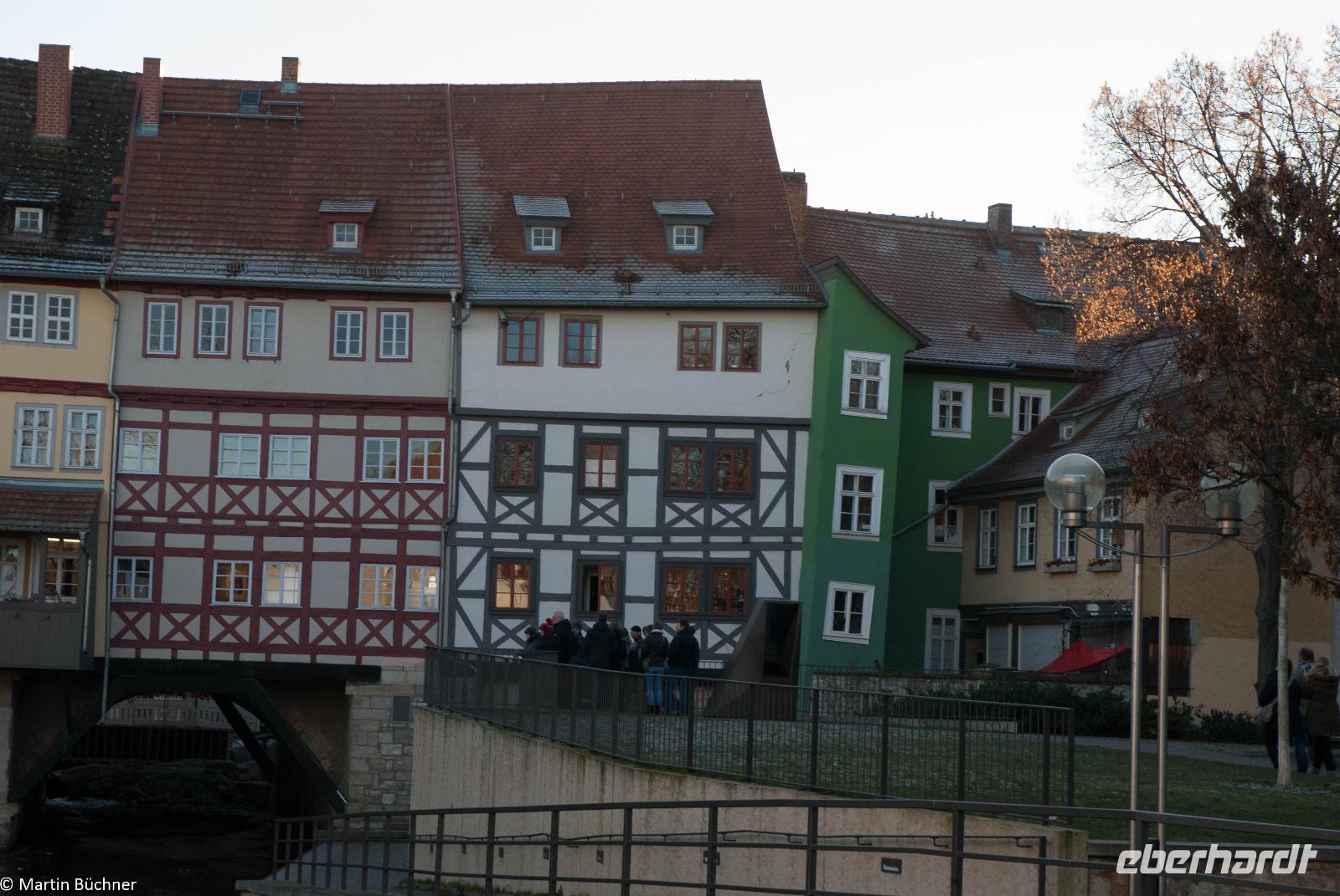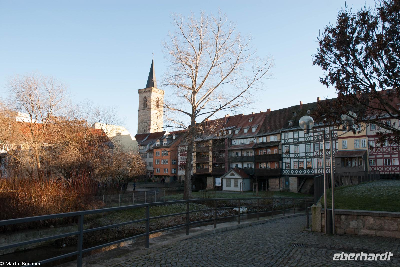 Die Stadtführung führt weiter vorbei an der berühmten Krämerbrücke, der einzigen mit Häusern bebauten mittelalterlichen Brücke der nördlich der Alpen.