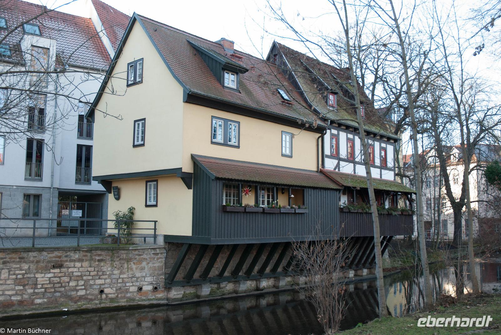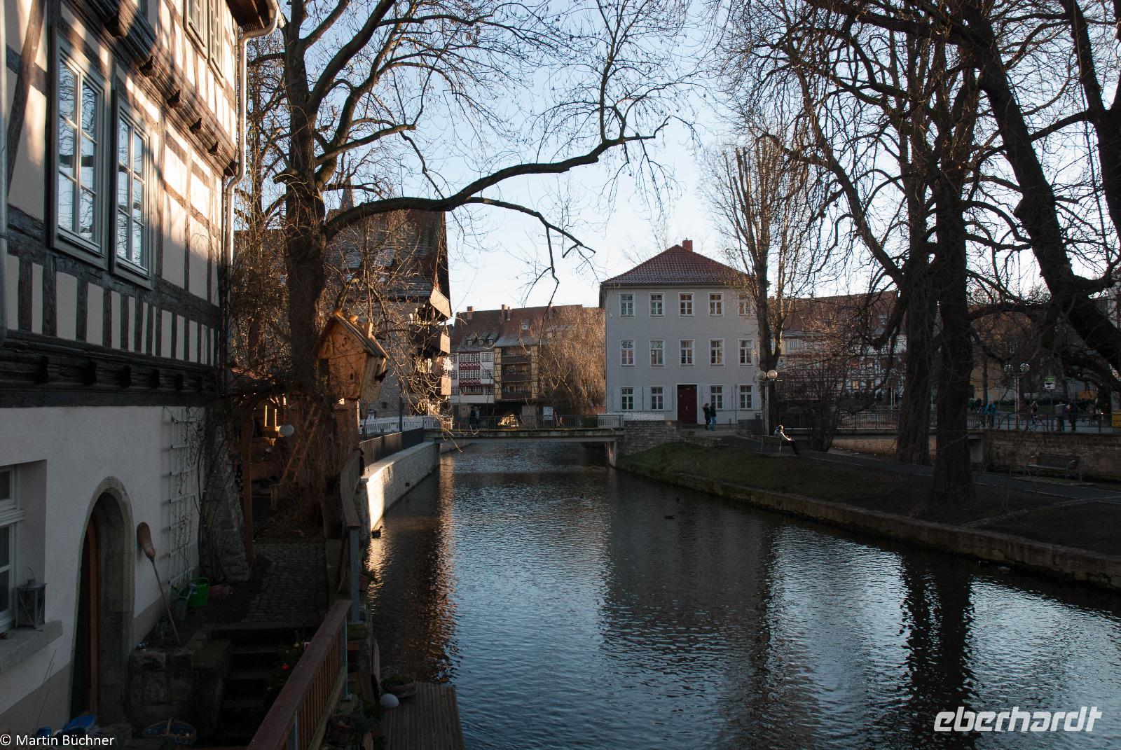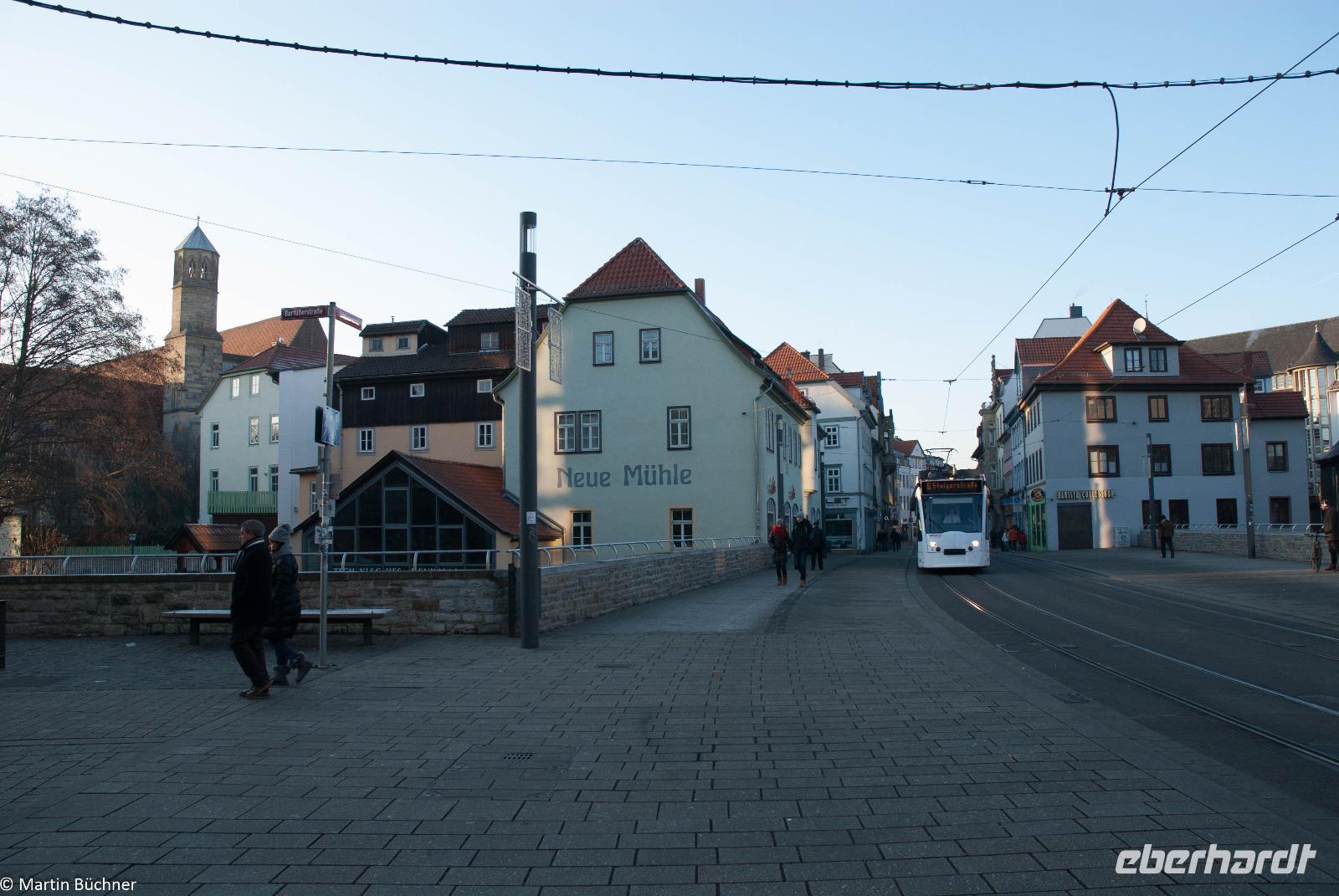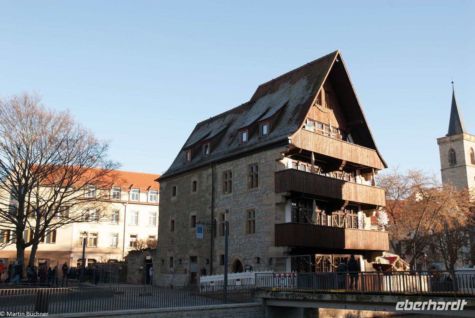 Die Stadtführung führt weiter vorbei an der berühmten Krämerbrücke, der einzigen mit Häusern bebauten mittelalterlichen Brücke der nördlich der Alpen.