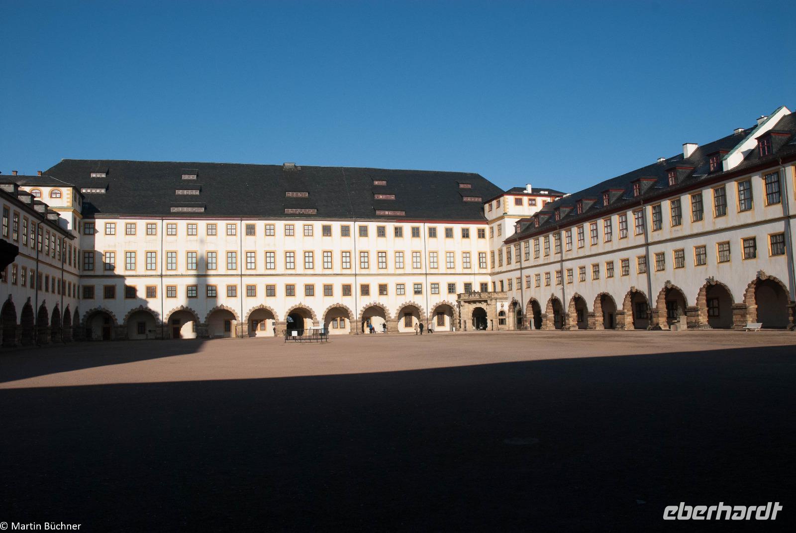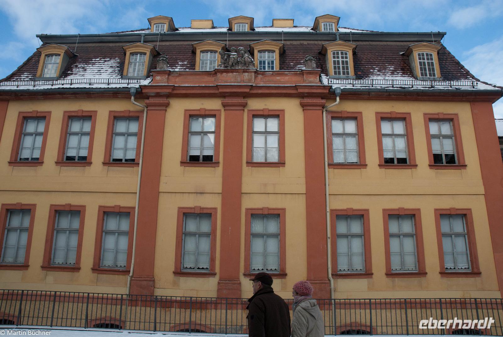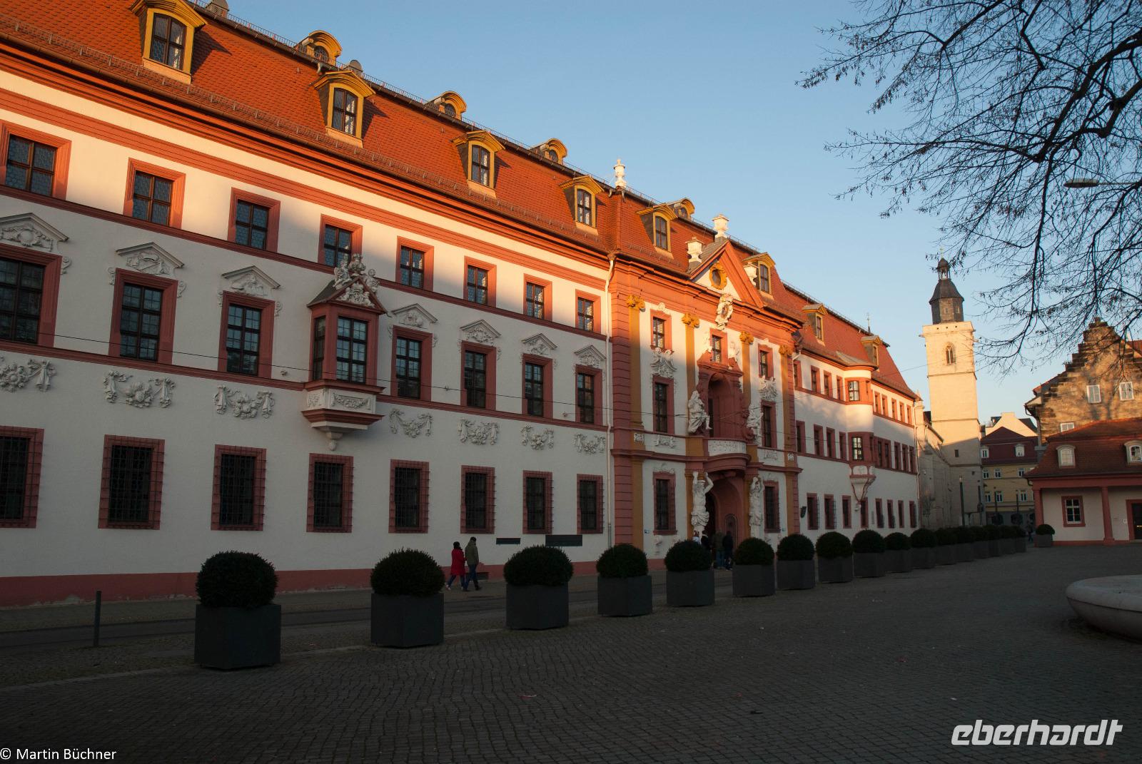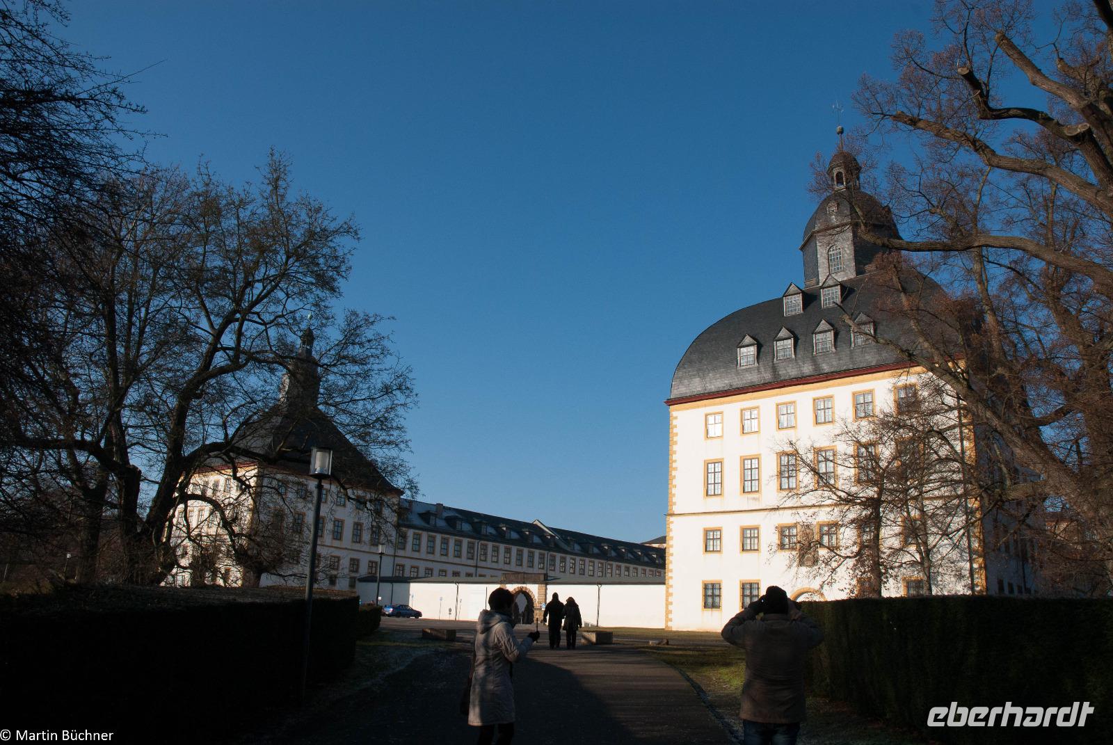 Den Stammsitz der Ernestiner bildet Schloss Friedenstein. Da heute Neujahr ist und für viele Gäste in Erfurt noch ein klassisches Neujahrskonzert wartet, beschränken wir uns heute auf das weltberühmte barocke Ekhof Theater im Westturm des Schlosses.