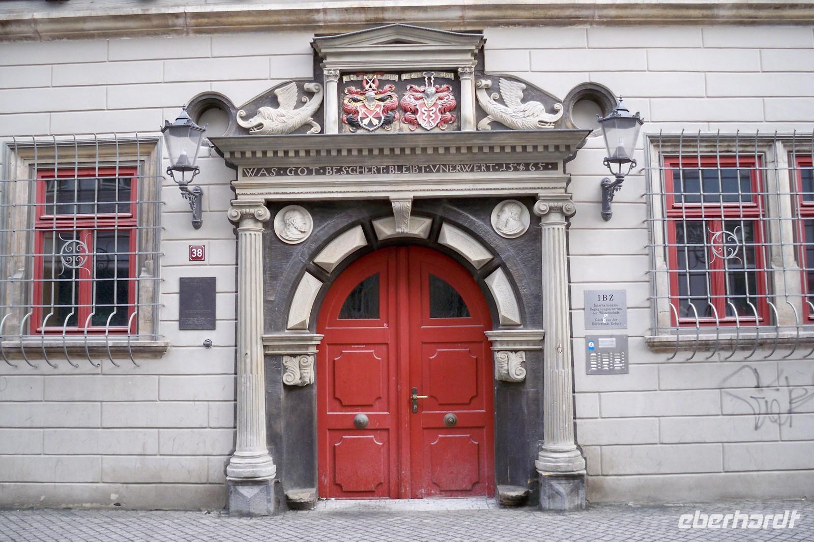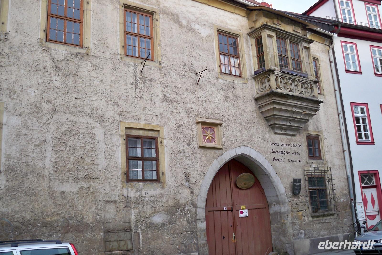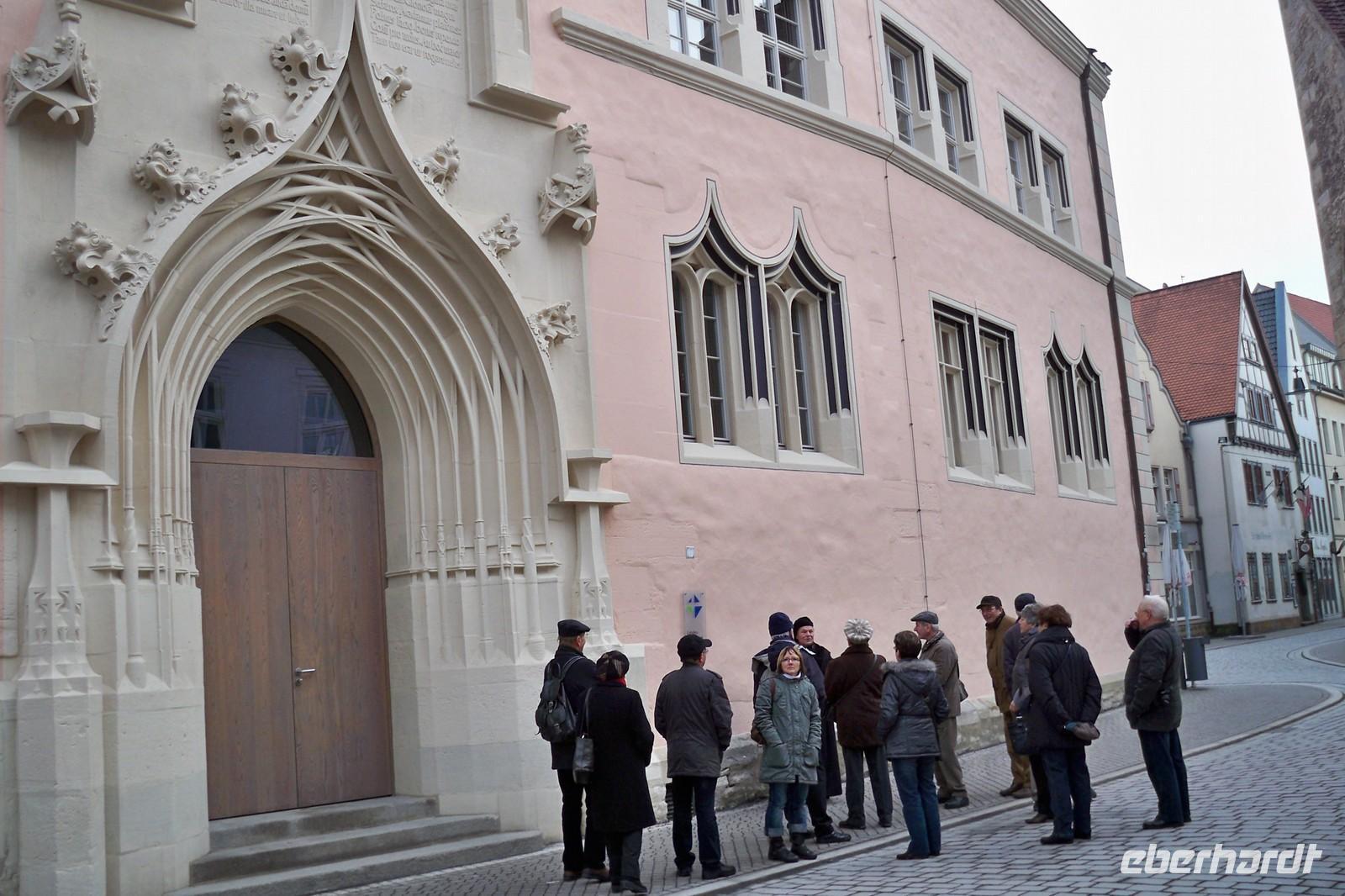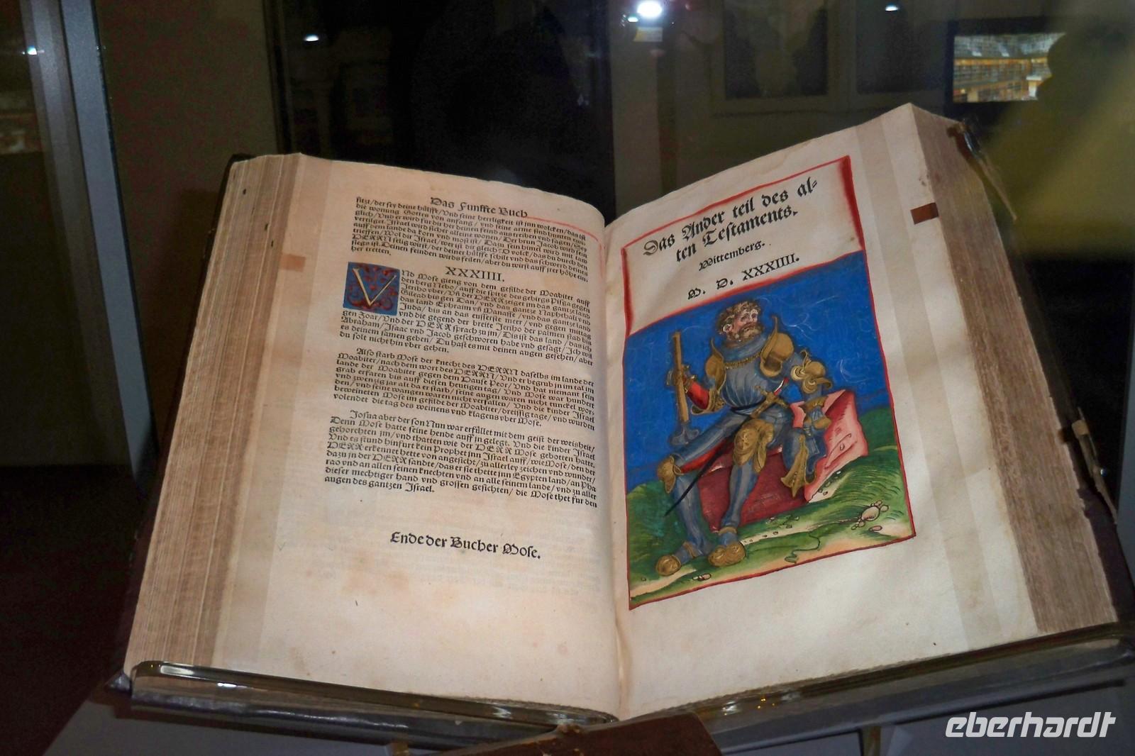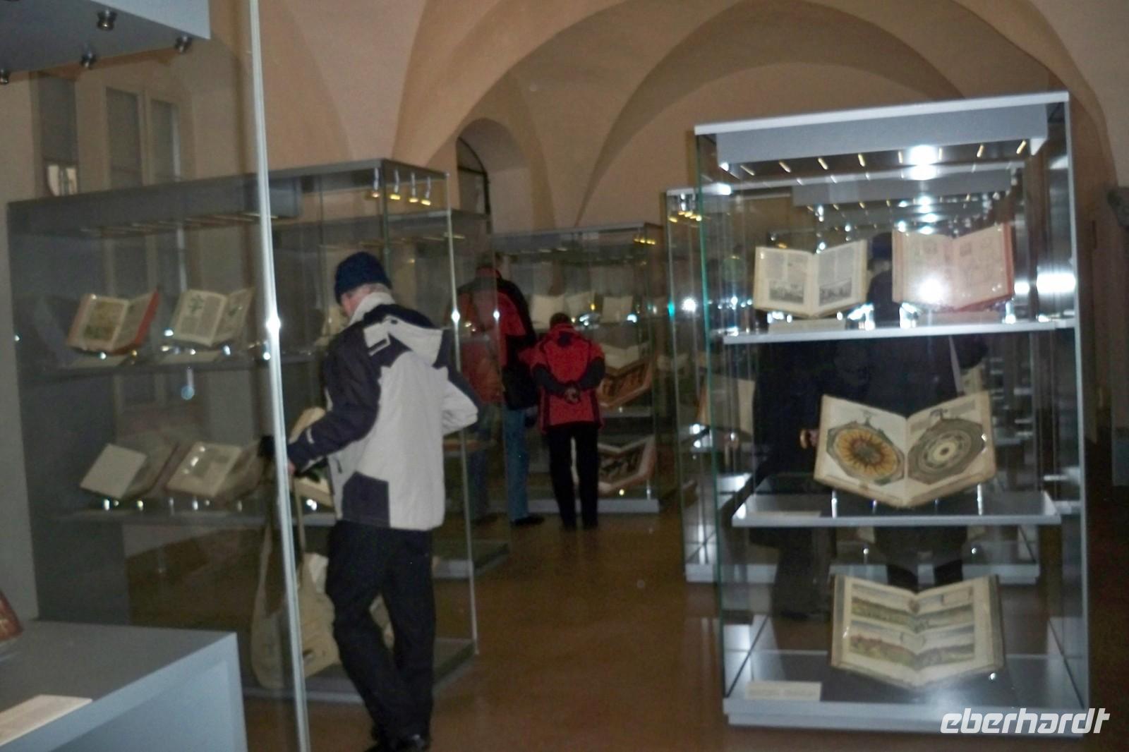 im Park nur erahnen. Das Liebesgedicht Goethes: „Ich ging im Walde so für mich hin, ……“ wurde von einem Gast vorgetragen. Dann hatten wir die Möglichkeit uns kurz im Vorraum der Anna Amalia Bibliothek etwas aufzuwärmen. Dort befand sich gerade eine Ausstellung von historischen Schriften. Unter Anderem auch, die bei dem Brand 2004 in der Bibliothek gerettete „Lutherbibel“ von 1534. Der Rundgang führte uns weiter am Weimarer Schloss vorbei bis zum Markt. Mit zahlreichen Eindrücken bedankten wir uns bei unserer Stadtführerin und verbrachten noch etwas Freizeit in der Stadt. Weiter ging es mit unserem Reisebus nach Erfurt. Wo wir gegen 16.30 Uhr das gastliche Hotel „Am Kaisersaal“ erreichten. Unser Gepäck wurde mit dem Shuttle-Service in’s Hotel gebracht, denn der Bus musste etwas abseits parken. Das Hotel befindet sich ja direkt in der Altstadt und nur wenige Meter von der Krämerbrücke, einem Wahrzeichen der Stadt Erfurt entfernt. Einige Gäste unternahmen dann auch gleich den ersten Spaziergang, bis wir uns zum gemeinsamen Abendessen im Hotel wieder einfanden.