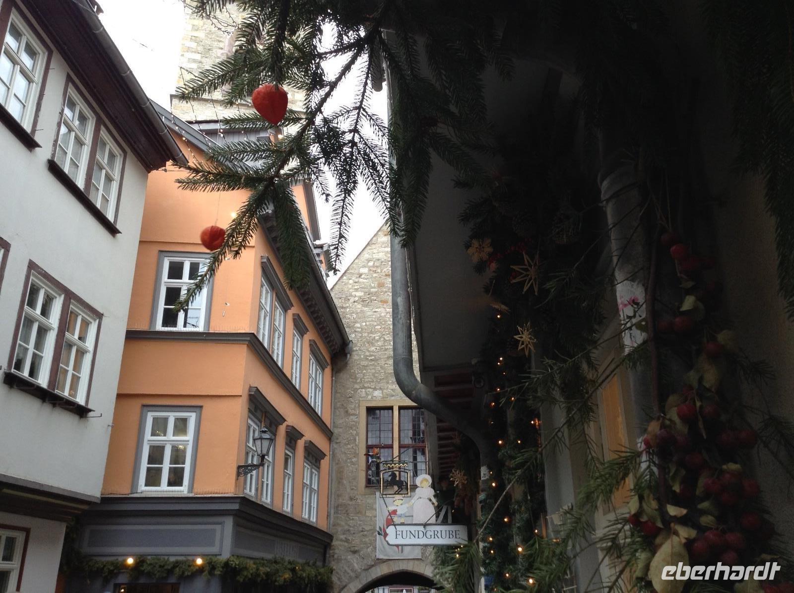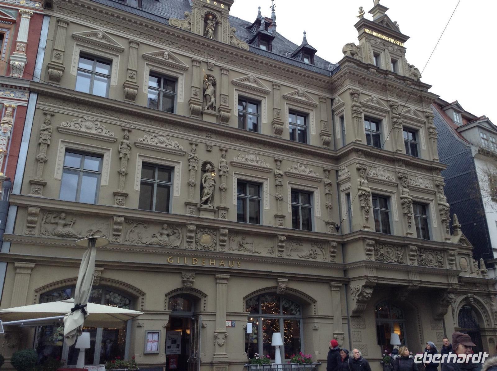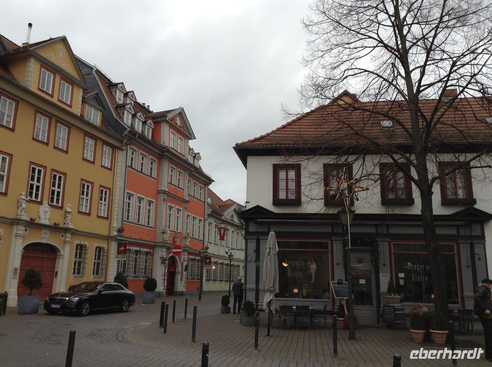 Noch einmal warteten 2 Stadtführer auf uns und führten uns durch die bedeutende geschichtsträchtige Weimarer Altstadt, vorbei an der Anna Amalia Biblothek, den Wohnhäusern von Goethe und Schiller, dem Theater, dem Wittumspalais, den vielen Museen der Stadt. Am Marktplatz mit dem neogotischen Rathaus endete unsere Stadtführung. Anschließend hatte jeder noch genügend freie Zeit, um Weimar selbst noch etwas zu erkunden oder gemütlich zum Mittag zu essen. Auch der Weihnachtsmarkt war in Weimar noch voll im Gange mit Glühwein und Thüringer Bratwurst.