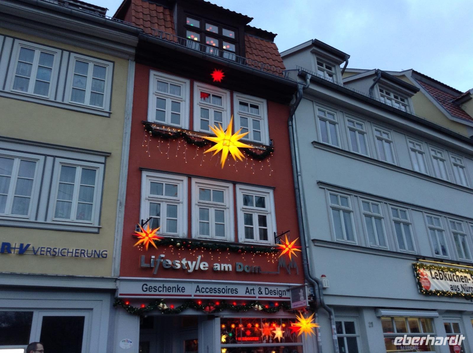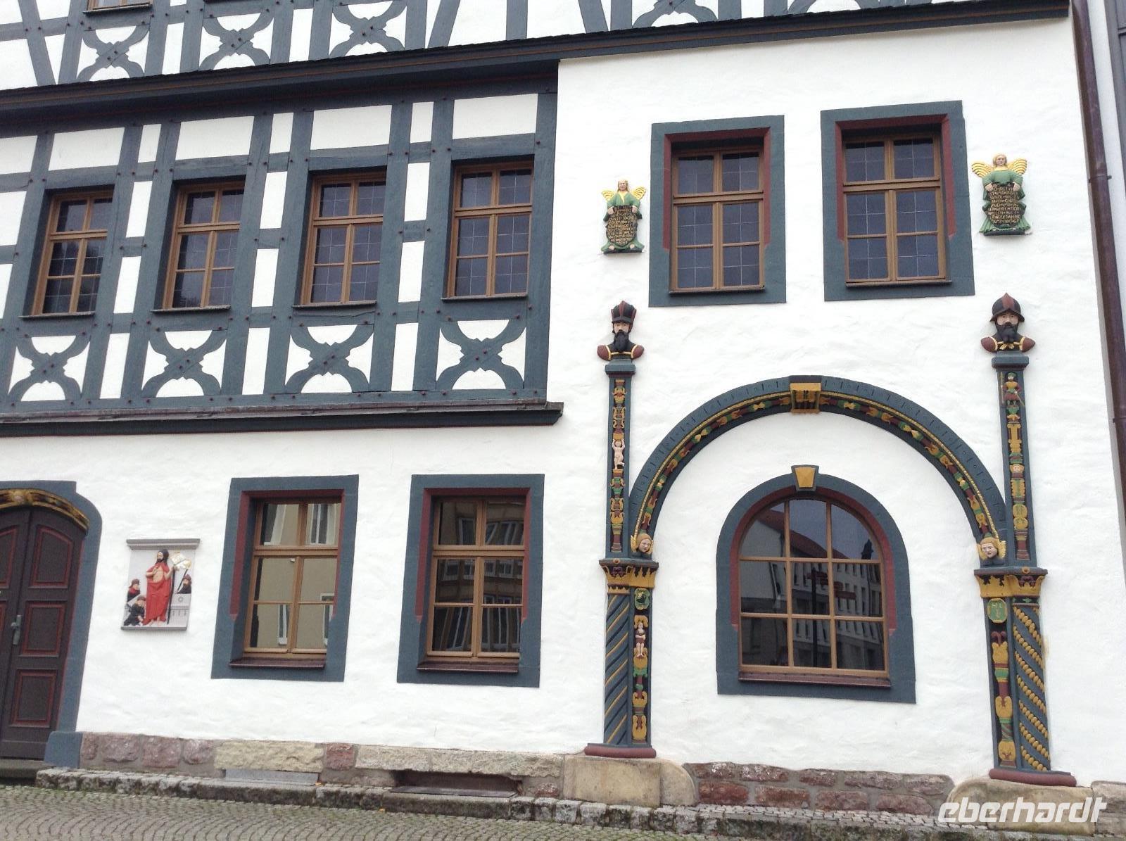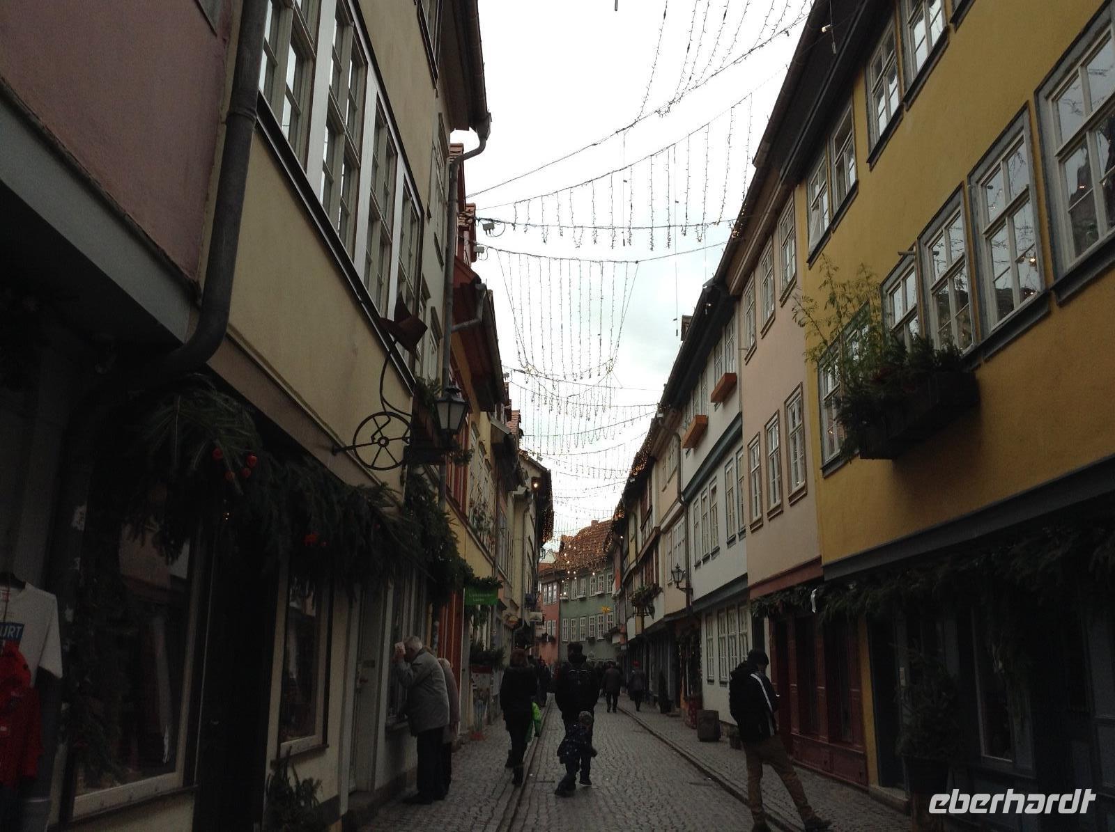 Noch einmal warteten 2 Stadtführer auf uns und führten uns durch die bedeutende geschichtsträchtige Weimarer Altstadt, vorbei an der Anna Amalia Biblothek, den Wohnhäusern von Goethe und Schiller, dem Theater, dem Wittumspalais, den vielen Museen der Stadt. Am Marktplatz mit dem neogotischen Rathaus endete unsere Stadtführung. Anschließend hatte jeder noch genügend freie Zeit, um Weimar selbst noch etwas zu erkunden oder gemütlich zum Mittag zu essen. Auch der Weihnachtsmarkt war in Weimar noch voll im Gange mit Glühwein und Thüringer Bratwurst.
