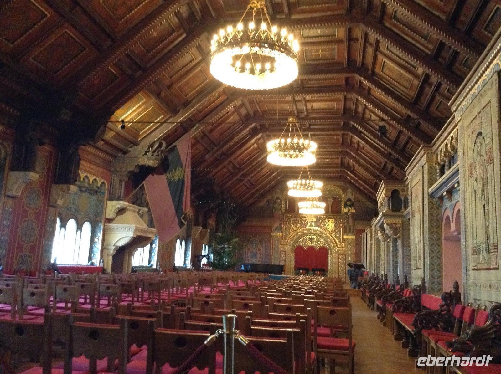 Auch am Silvestermorgen war es eher grau und nieselig, die Wolken hingen tief und auf unserer Fahrt über die Autobahn nach Eisenach waren kaum die drei Gleichen zu erkennen. Unser Bus brachte uns zunächst zum Busparkplatz unterhalb der Wartburg. Zu Fuß oder mit einem Shuttle-Service nahmen wir den kurzen Aufstieg zur Burg und versammelten uns im Burginnenhof. Eine Führung war bestellt und begann auch ganz pünktlich. Wir betraten die geschichtsträchtigen alten Räume der Burganlage und fühlten uns um Jahrhunderte zurückversetzt. Ein junger Gästeführer zeigte uns die altehrwürdigen Räume und erzählte so manche interessante Geschichte über die Burg, ihre Besitzer und die geschichtliche Bedeutung. Später war noch etwas freie Zeit, um sich die Lutherstube und das Museum anzusehen, bevor es gegen Mittag zurück zum Busparkplatz ging. Unser Bus brachte uns hinunter in das Stadtzentrum von Eisenach. Wir hielten direkt am Bachhaus und starteten von da aus unseren Bummel durch die Altstadt, zum Lutherhaus, zum Marktplatz mit der St. Georgenkirche und dem Stadtschloss. Am frühen Nachmittag fuhren wir zurück zum Hotel und bereiteten uns auf den krönenden Abschluß dieses Jahres vor - die Silvesterfeier.