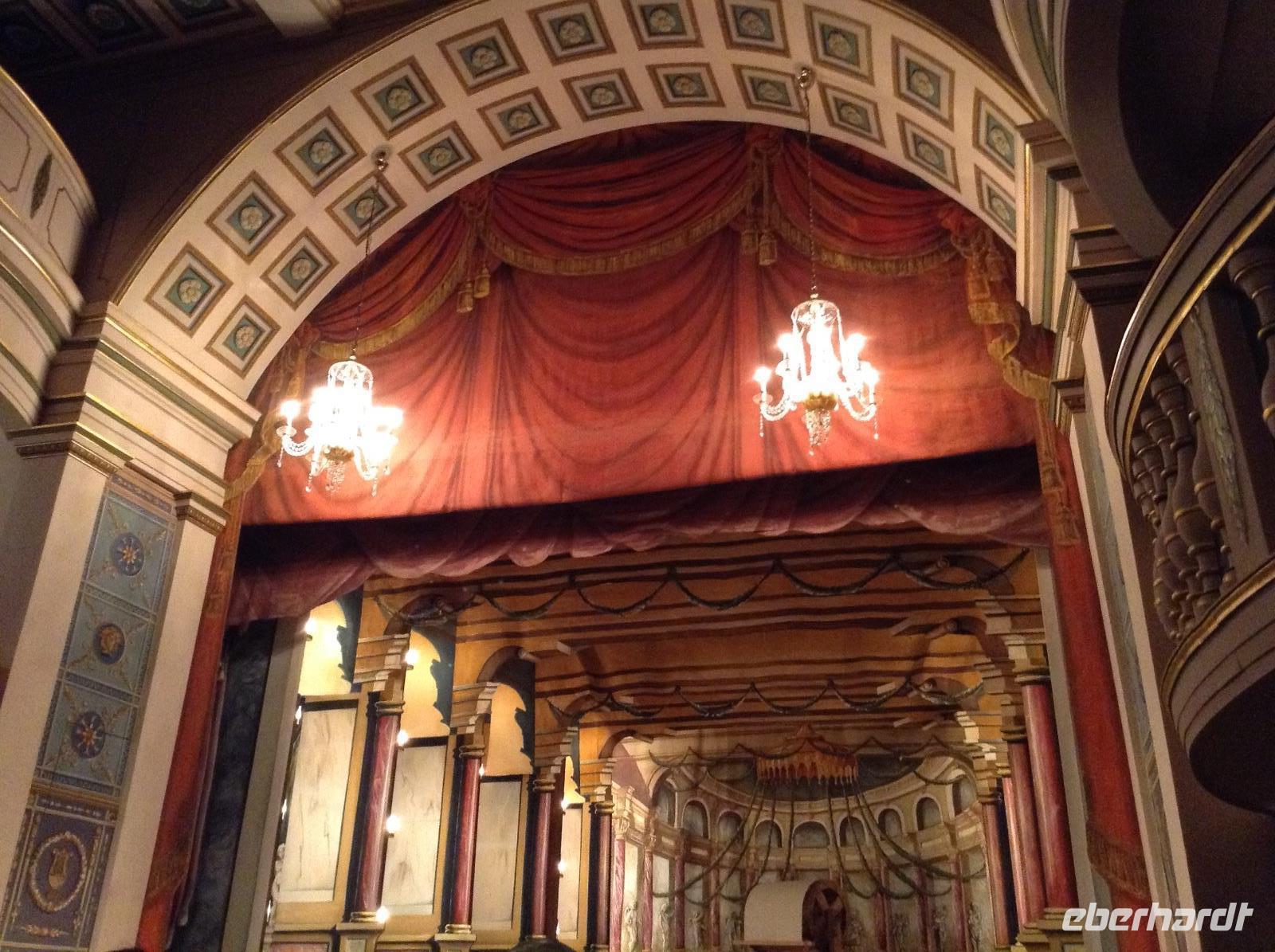 Der Besuch des Schlosses Friedensstein stand auf dem Programm und wir machten einen kurzen Neujahresspazierung vom Busparkplatz zum Schlosshof. Eine Stadtführerin führte unsere Gruppe über den Schlosshof und erzählte über die Entstehung, die Schlossherren, die Wappen und weitere interessante Geschichten. Das Hauptaugenmerk an diesem Tag lag aber auf dem fast 300 Jahre alten Theater in einem Seitenturm des Schlosses. Unsere Gästeführerin ließ dort zum Klang historischer Instrumente die Bühnenwelt des Barock auferstehen. Wir waren beeindruckt und begeistert zugleich.