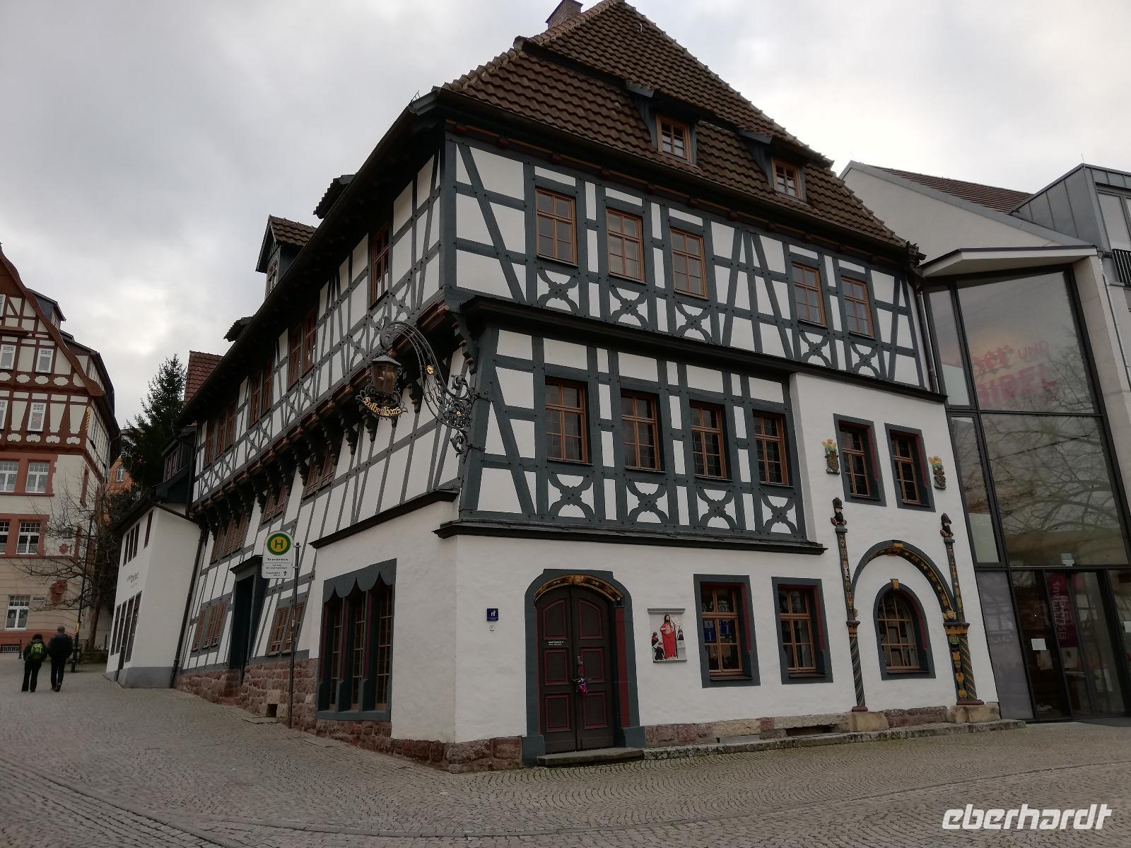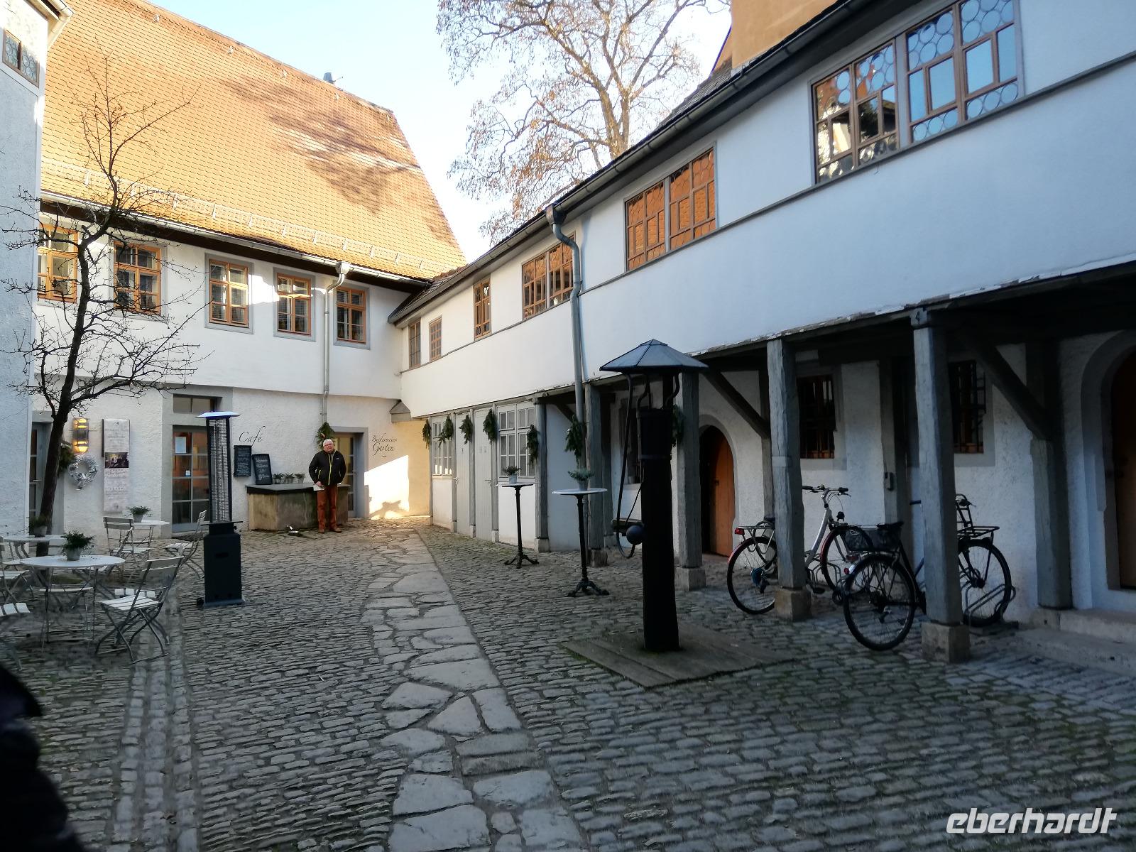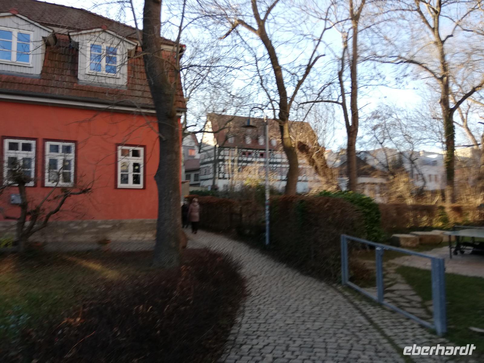 Nur ein kurzer Weg entfernt vom Kaisersaal trennt uns vom Restaurant Feuerkugel, in dem wir heute zu Abend essen. Ganz nach dem Thüringer Motto