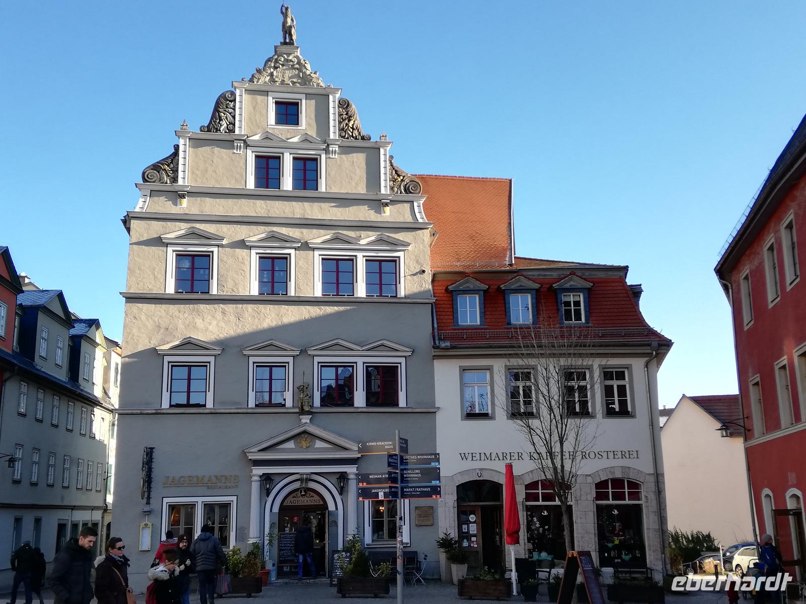 Am Morgen werden die Koffer wieder in den Bus geladen, von einigen Gästen verabschieden wir uns schon. Wir fahren zurück nach Dresden. Doch bevor es so weit ist ,stoppen wir in Weimar. Hier haben wir noch eine Stadtführung. Wenn die Zeit auch sehr kurz erscheint, erfahren wir viel Wissenswertes über die „Stadt der deutschen Klassik" und die deshalb Weltkulturerbe ist . Die zwei Stadtführer führten uns zu unterschiedlichen Orten. Dabei ist der Herderplatz mit der Herderkirche ( Stadtkirche St. Peter und Paul) ein zentraler Ort in Weimar. Gesehen haben wir u.a. das Kirm-Krackow- Haus, das zu den ältesten Häusern der Stadt zählt, den Markt auf dem noch der Wintermarkt besucht werden kann. Weitere Sehenswürdigkeiten sind natürlich das Deutsche Nationaltheater, die Anna Amalia-Bibliothek, das Schillerhaus, das Goethehaus uvm.