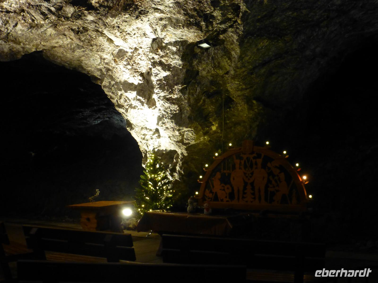 Der bekannte Kurort Bad Salzungen war unser Ziel. Er liegt eingebettet zwischen dem Thüringer Wald und der Rhön. Bereits vor 200 Jahren waren die ersten Kurgäste zu Gast. Vor allem wegen der unterschiedlichen 2% - 27% Solequellen die im Gradierwerk und in der SOLEWELT Bad Salzungen genutzt werden. Zuerst besuchten wir das Museum am Gradierwerk wo sich das Saline- und Kurmuseum befindet. Anschließend begaben wir uns auf den Markt zum Rathaus und zu einige Fachwerkhäuser, die wir bewunderten. Wir erreichten den Burgsee und hatten einen schönen Blick auf die Schnepfenburg und Teile der alten Stadtmauer. Noch ein kurzer Blick in die Kirche und schon ging es zurück zum Bus. Auf dem Weg dahin sahen wir noch das älteste Fachwerkhaus der Stadt, die Kinderklinik „Charlottenhall". Am Nachmittag besuchten wir die Marienglashöhle. In dem früheren Stollen wurden Gipslagerstätten und später auch die Kristalgrotte erschlossen. Durch den Eingangsstollen erreichten wir eine Halle wo sich ein künstlicher Wasserfall befindet. Dieser wird durch ein Pumpsystem aus dem Höhlensee gespeist. Wir erhielten interessante Informationen über die schwere Arbeit der Bergleute. Nun ging es eine Stufen nach unten in die Gipskristallgrotte. Dort bestaunten wir die entstandenen Stalagmiten und Stalaktiten. Besonders beindruckt hat uns die Akustik als es dunkel wurde und verschieden Kristalle angeleuchtet wurden begleitet von klassischer Musik. Bevor wir das Tageslicht wieder erreichten schauten wir noch in einer Halle vorbei wo man sogar heiraten konnte. Zurück im Hotel luden wir unsere Gäste zum Kaffeetrinken in der Thüringer Stube ein. Dabei wurden lustige Geschichten vorgetragen und es schaute noch einmal der Weihnachtsmann vorbei.