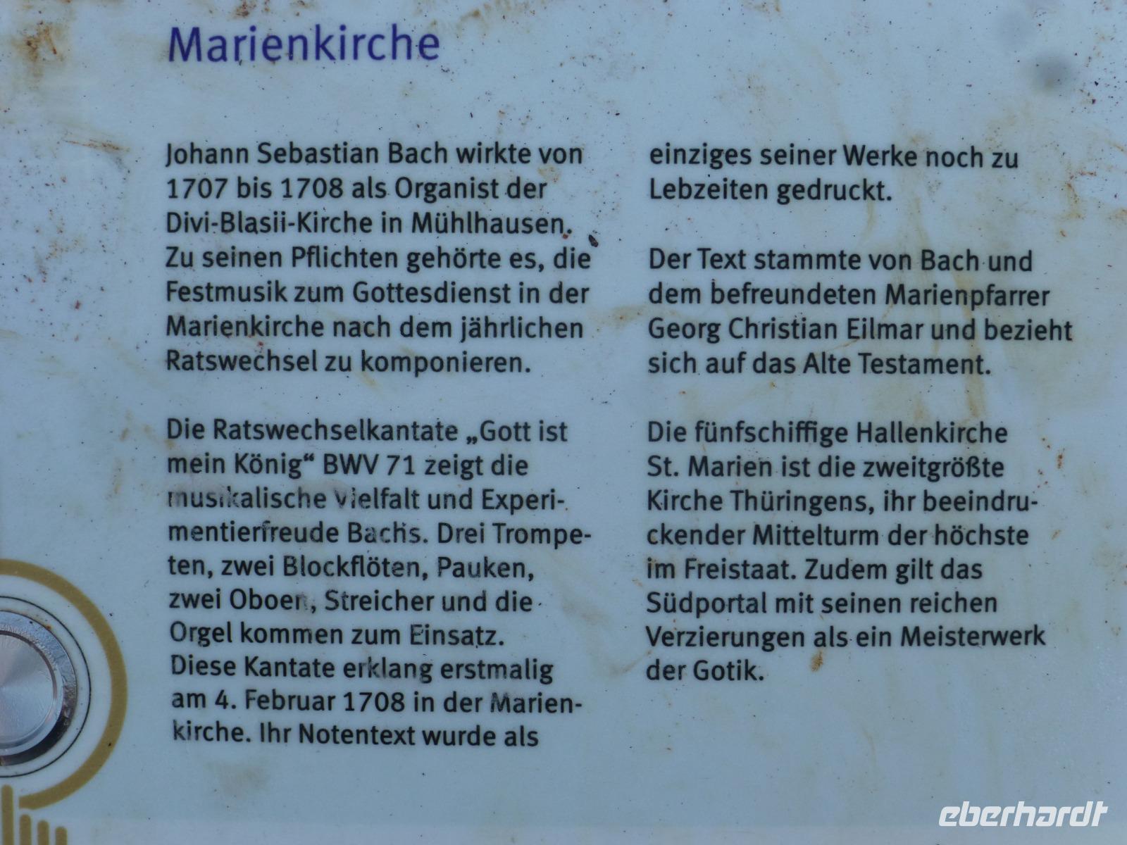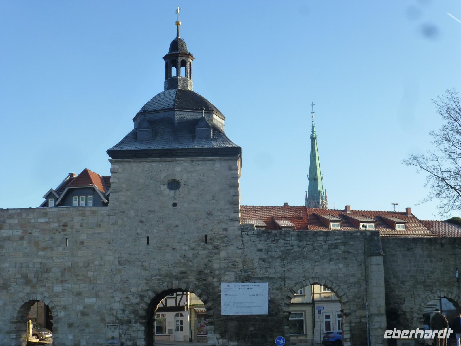 Auf zur Stadtführung nach Mühlhausen. Die Gästeführer erwarteten uns bereits am Inneren Frauentor. Die schöne mittelalterliche Stadt ist noch fast komplett von einer Stadtmauer umgeben. Hinter den Mauern erwartete uns eine sehr schöne Fachwerkstadt und etliche Kirchen. In der Marienkirche hat schon Johann Sebastian Bach auf der Orgel gespielt. Wir spazierten durch die Gassen und Straßen zum mittelalterlichen Rathaus. Im Inneren bestaunten wir den Ratssaal und die schönen Deckengemälde. Im Brauhaus zum Löwen kehrten wir noch einmal ein und ließen unsere Reise Revue passieren.