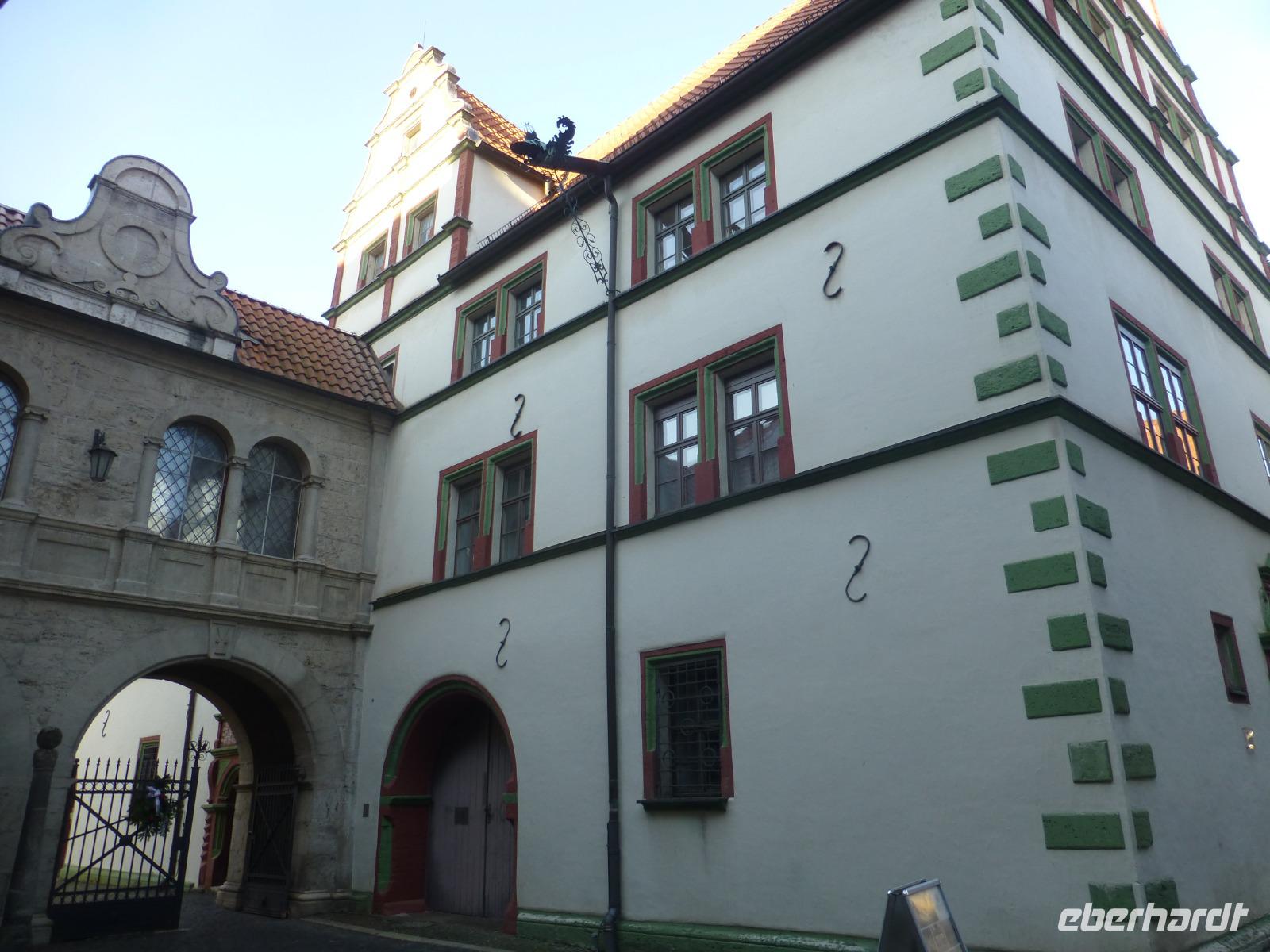 Heute unternahmen wir eine Reise in das Mittelalter. Unsere Reise führte uns in das Werratal nach Witzenhausen zum Schloss Berlepsch. Nach einer etwas beschwerlichen Anfahrt erreichten wir das Schloss und wurden schon freudig von einem Gästeführer in Kostüm erwartet. Während der Führung tauchten wir in die 650 Jahre alte Familiengeschichte ein. Der Schlossherr Sittich Graf von Berlepsch wohnt mit seiner Familie noch in der oberen Etage im Schloss. Dabei hat er 85 Stufen zu bewältigen. Sein Sohn hat jedoch die Geschäfte übernommen und das Schloss den Besuchern wieder zugänglich gemacht. Wir besuchten die kleine Kapelle, die sich unterhalb des Schlosses befindet. Wieder zurück auf der Terrasse erwartete uns ein schöner Blick in das Werratal. Auch im inneren war einiges zu sehen. So bestaunten wir den Rittersaal, das Kaminzimmer, den Festsaal und den Sommersalon. Im letzteren finden auch Trauungen statt. Nach einem Blick in das Museum wo allerlei Dinge aus der Vergangenheit aufbewahrt werden bestand die Möglichkeit den Turm zu besteigen. Ein kleines Abenteuer den die letzten Treppen befinden sich außerhalb des Turms. Aber die Anstrengung hatte sich gelohnt einer weiter Blick in die Umgebung war der Lohn. Nach der Besichtigung fuhren wir nach Bornhagen zum Klausenhof. Das mittelalterliche Wirtshaus befindet sich unterhalb der Burg Hanstein. Seit dem 15. Jh. führte eine wichtige Handelsstraße am Haus vorbei. So diente es als Herberge und Wirtshaus. Zu DDR Zeiten wurde es als Näherei genutzt. Erst nach der Wende nahm Familie Röhrig viel Geld in die Hand und führte das Wirtshaus zu seiner alten Bestimmung zurück. Mit viel Liebe zum Detail wurden die Räumlichkeiten wiederhergerichtet. So entstand eine mittelalterliche Herberge zum Übernachten und verschiedene Räumlichkeiten zum Essen und Feiern. Auch ein Wurstmuseum und ein Hofladen wurden eingerichtet. Wir ließen uns eine umfangreiche Wurstplatte schmecken.
