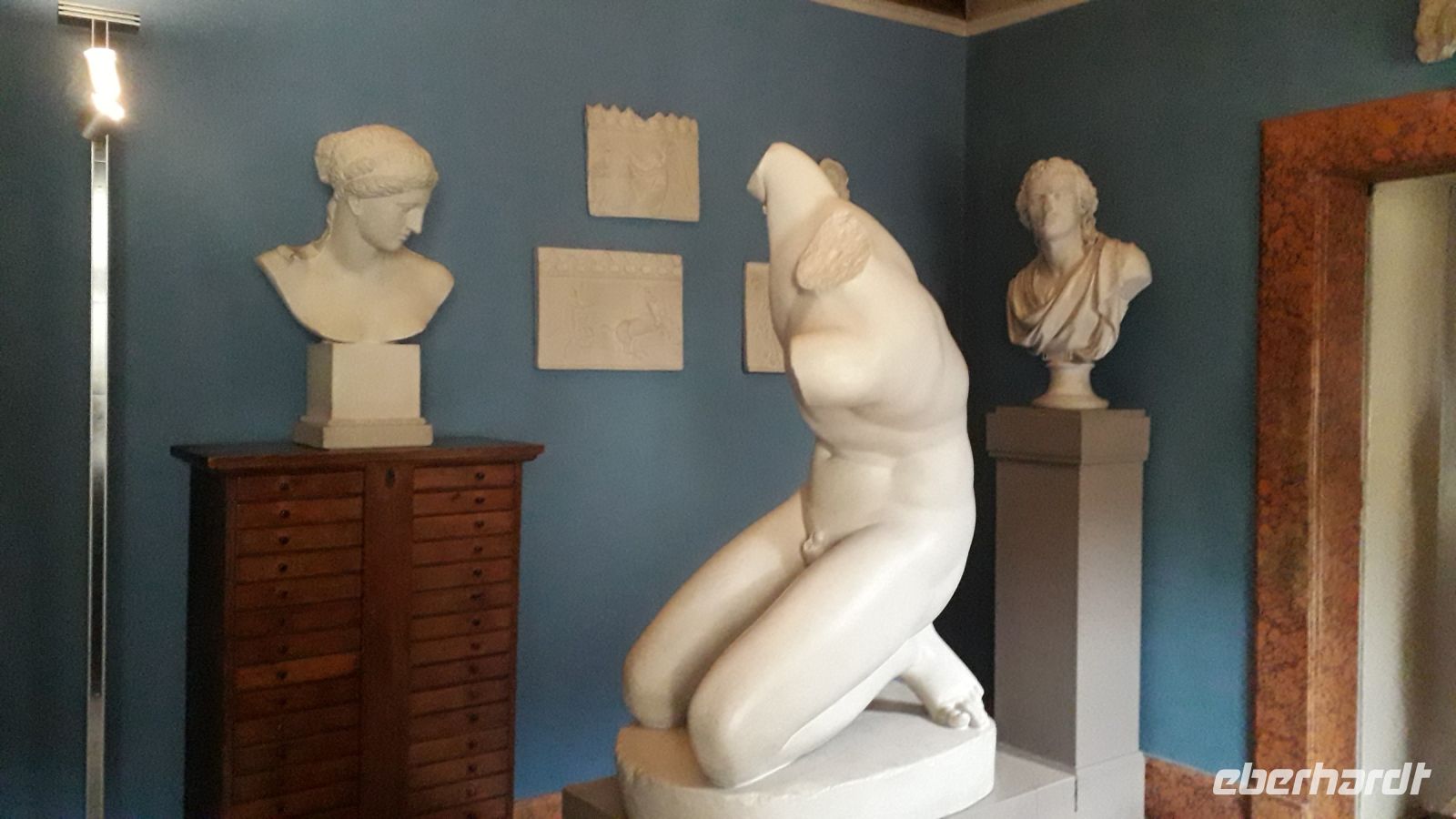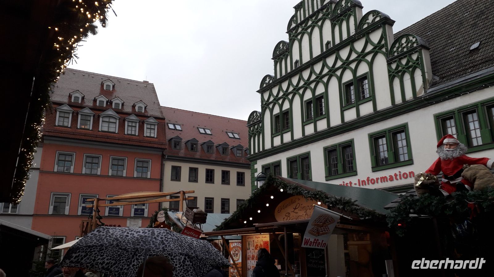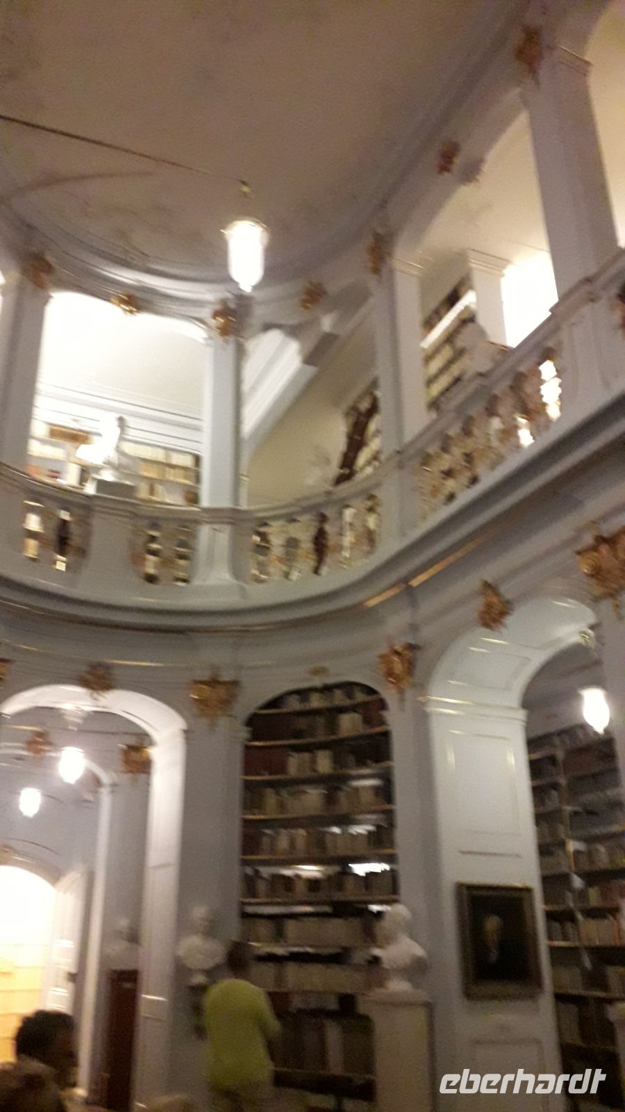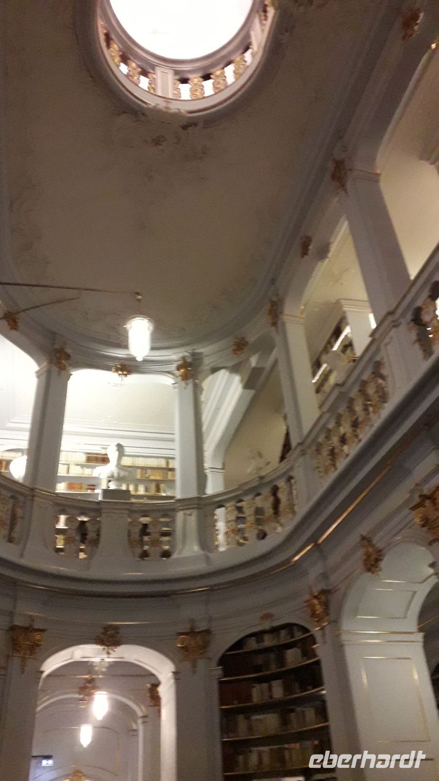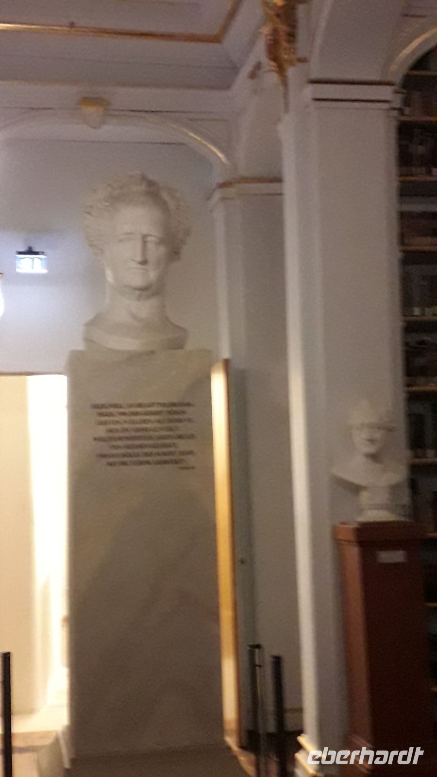 Da es von Dresden nach Weimar nicht so sehr weit ist, mussten wir nicht in aller Herrgottsfrühe aufstehen, um uns am Flughafen im Bus zu treffen. Wir waren erst einmal ein kleines Grüppchen, denn ein Großteil unserer Reisegruppe reiste individuell aus den verschiedenen Teilen Deutschlands an. In Weimar schauten wir uns in der Innenstadt um und genossen das Flair der Weihnachtsmärkte. Natürlich durften eine echte Thüringer Bratwurst und ein Glühwein nicht fehlen. Nachdem wir im Hotel die anderen Reisegäste unserer Gruppe getroffen hatten, fuhren wir zur Anna- Amalia - Bibliothek .Dort bekamen wir einen Eindruck, wie man unser kulturelles Erbe in Form von tausenden Büchern bewahrt und wie aufwendig die beim großen Brand in Mitleidenschaft gezogenen Seite für Seite gerettet werden. Besonders beeindruckend fanden wir den Rokokosaal mit seinen schön geschwungenen Bücherregalen, Skulpturen und Gemälden.