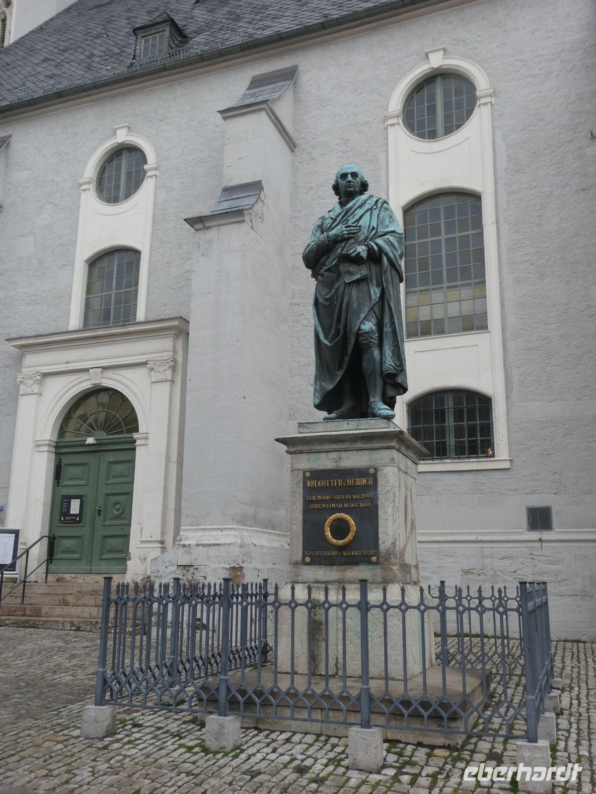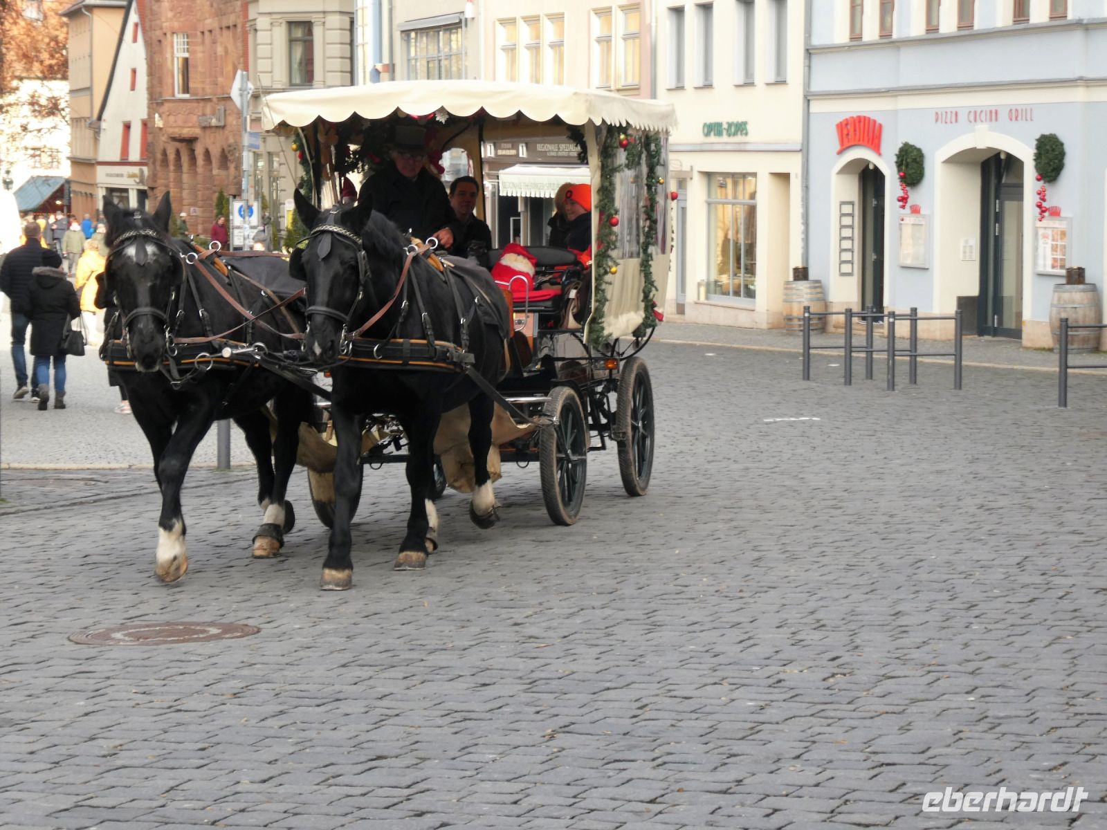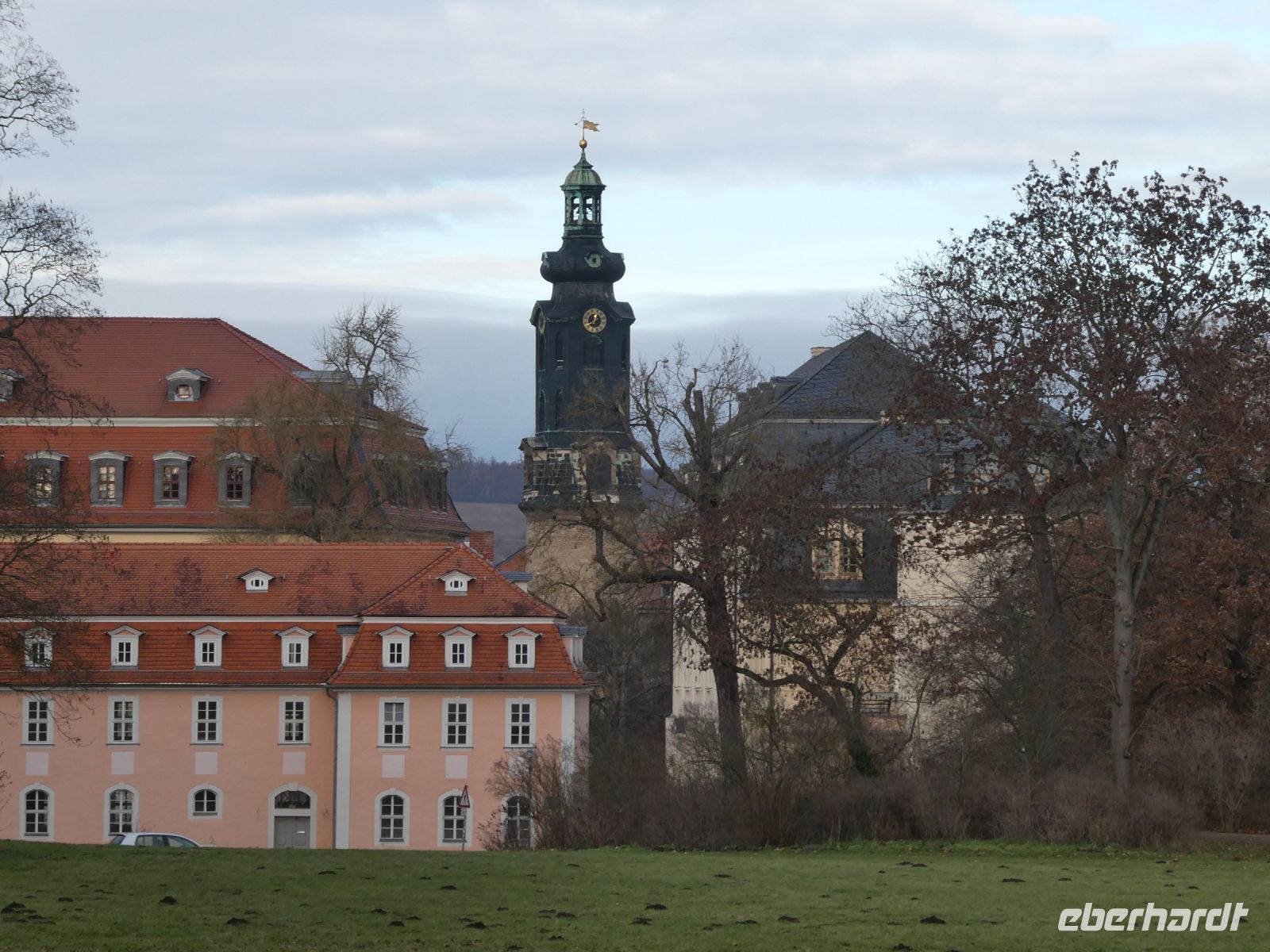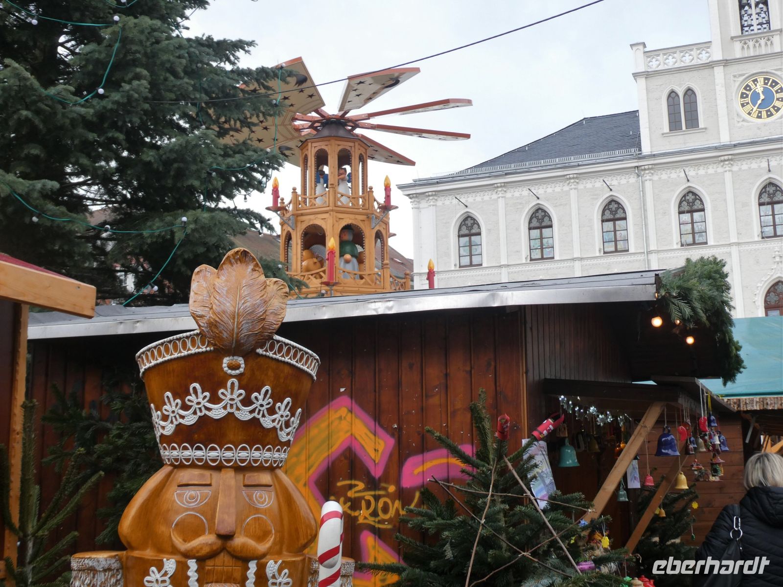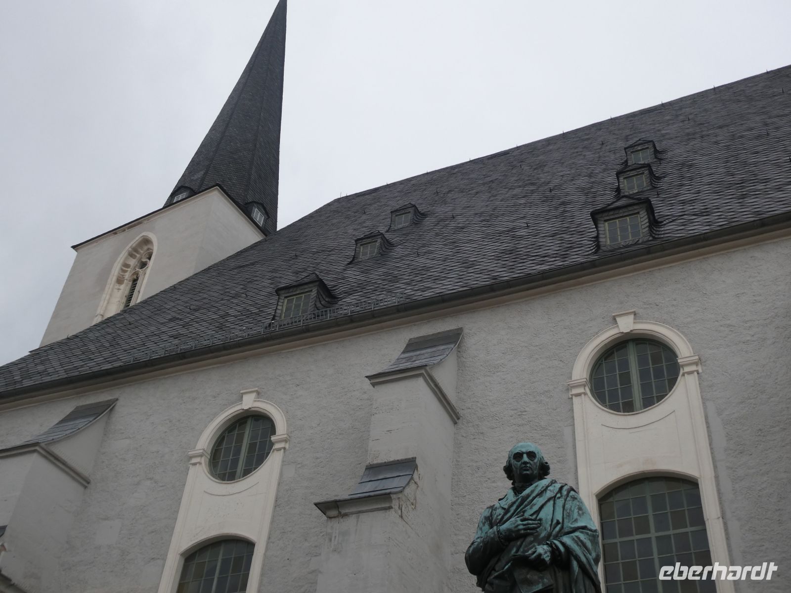 Auf dem Weg nach Weimar gibt es eine kleine Einführung in den Freistaat Thüringen und ein paar Details zu der Stadt Weimer die unser erstes Ziel heute ist. Wir hören vom „Goldenen“ und „Silbernen Zeitalter“ Weimars und der Weimarer Klassik. Viele berühmte Häupter haben hier gewirkt und einige sogar gewohnt. Die Herzogin-Amalia Bibliothek liegt auf unserem Weg und ebenfalls das Liszt-Haus und die Bauhaus-Universität Weimar. Goethes Wohnhaus, welches wir von hinten sehen können und das Haus einer seiner Freundinnen liegen auf unserer Fahrt. Vorbei am Schloss landen wir dann an unserem Busparkplatz. Von hier aus geht es zu Fuß in die Innenstadt und wir spazieren vorbei an der Stadtkirche St-Peter und Paul, die wir uns von innen anschauen. Bemerkenswert ist das Altarbild von Lucas Cranach dem Jüngeren und der Lutherschrein. Heute ist es eine evangelische Kirche. Weiter kommen wir zum Marktplatz mit dem neugotischen Rathaus und seinem bemerkenswerten Glockenspiel mit Glocken aus Meissner Porzellan. Der traditionelle Adventskalender mit echten Fenstern ist noch zu sehen.