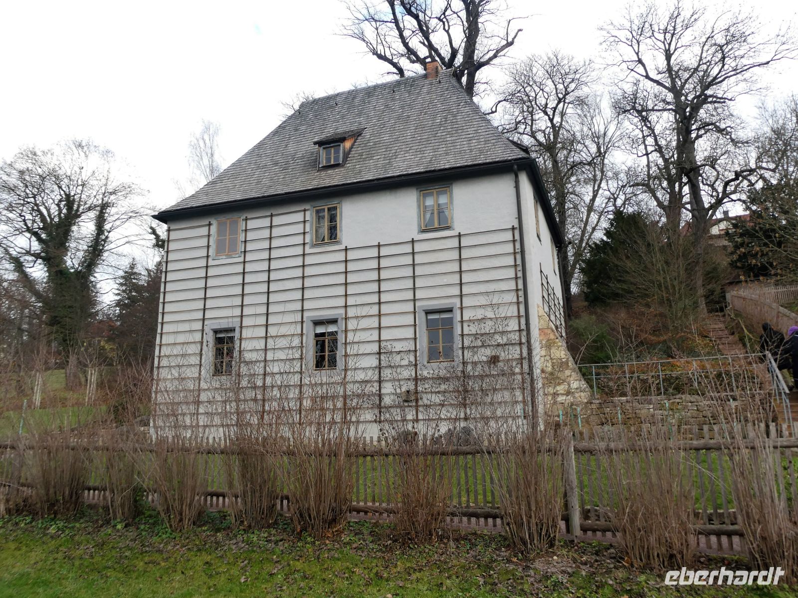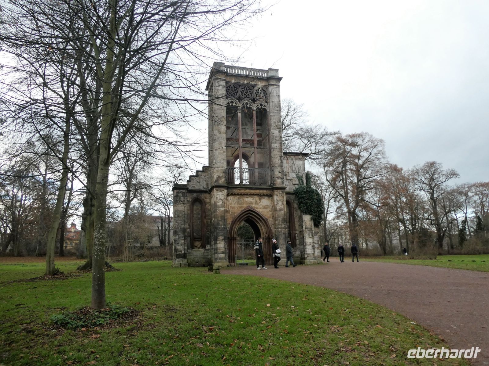 Dann trennt sich die Gruppe und einige gehen weiter zum Stadtschloss mit der Bastille. Dann folgt ein Spaziergang im Park an der Ilm mit seinen Grotten und Denkmälern. Hier hat auch Goethe in der ersten Zeit seines Aufenthaltes in Weimar gewohnt. Dann stürzen wir uns ins Weihnachtsgetümmel und suchen die berühmte Thüringer Rostbratwurst. An einem Stand werden wir fündig und gönnen uns eine davon. Irgendwann ist es Zeit zum Bus zurückzukehren.