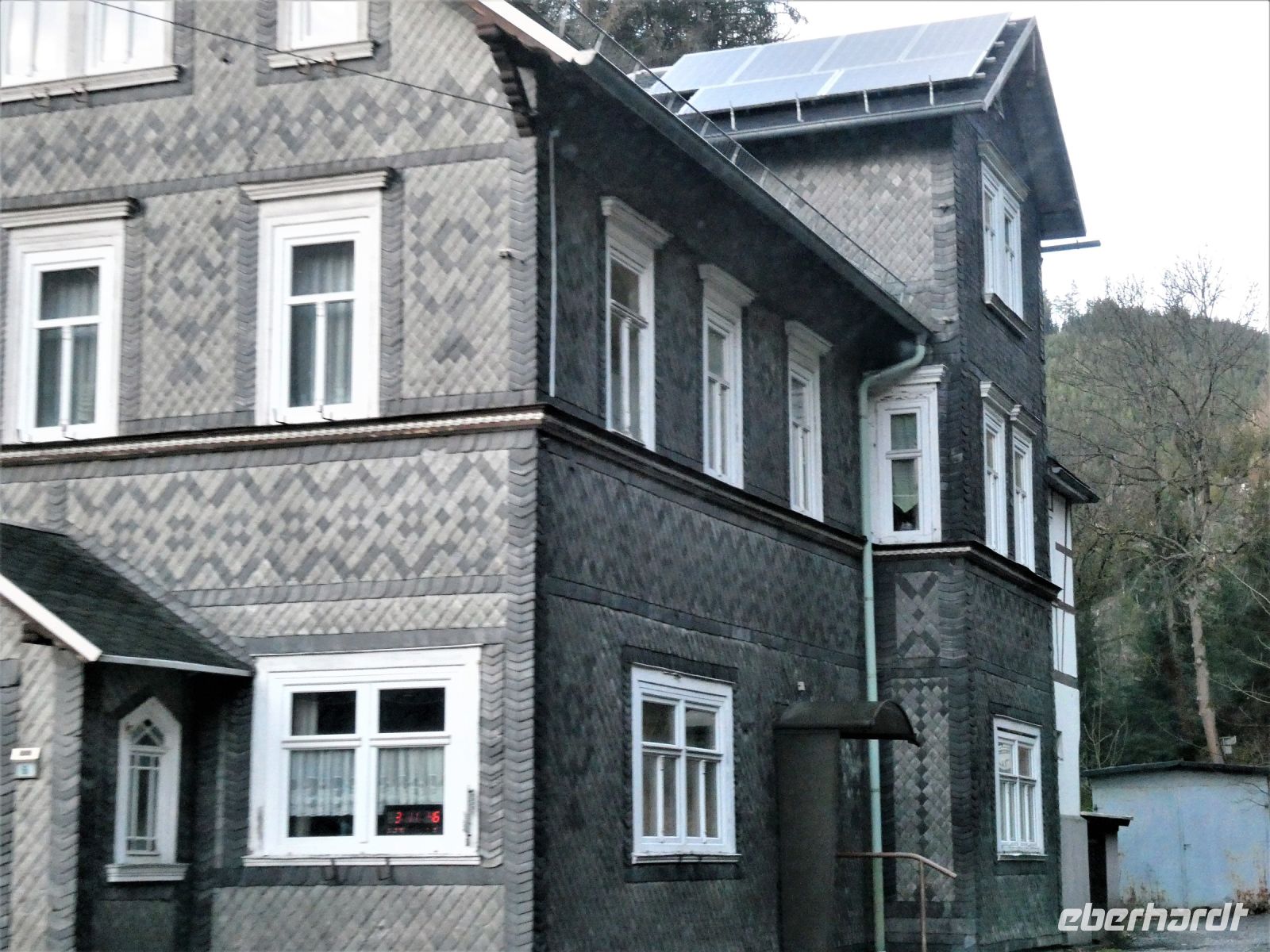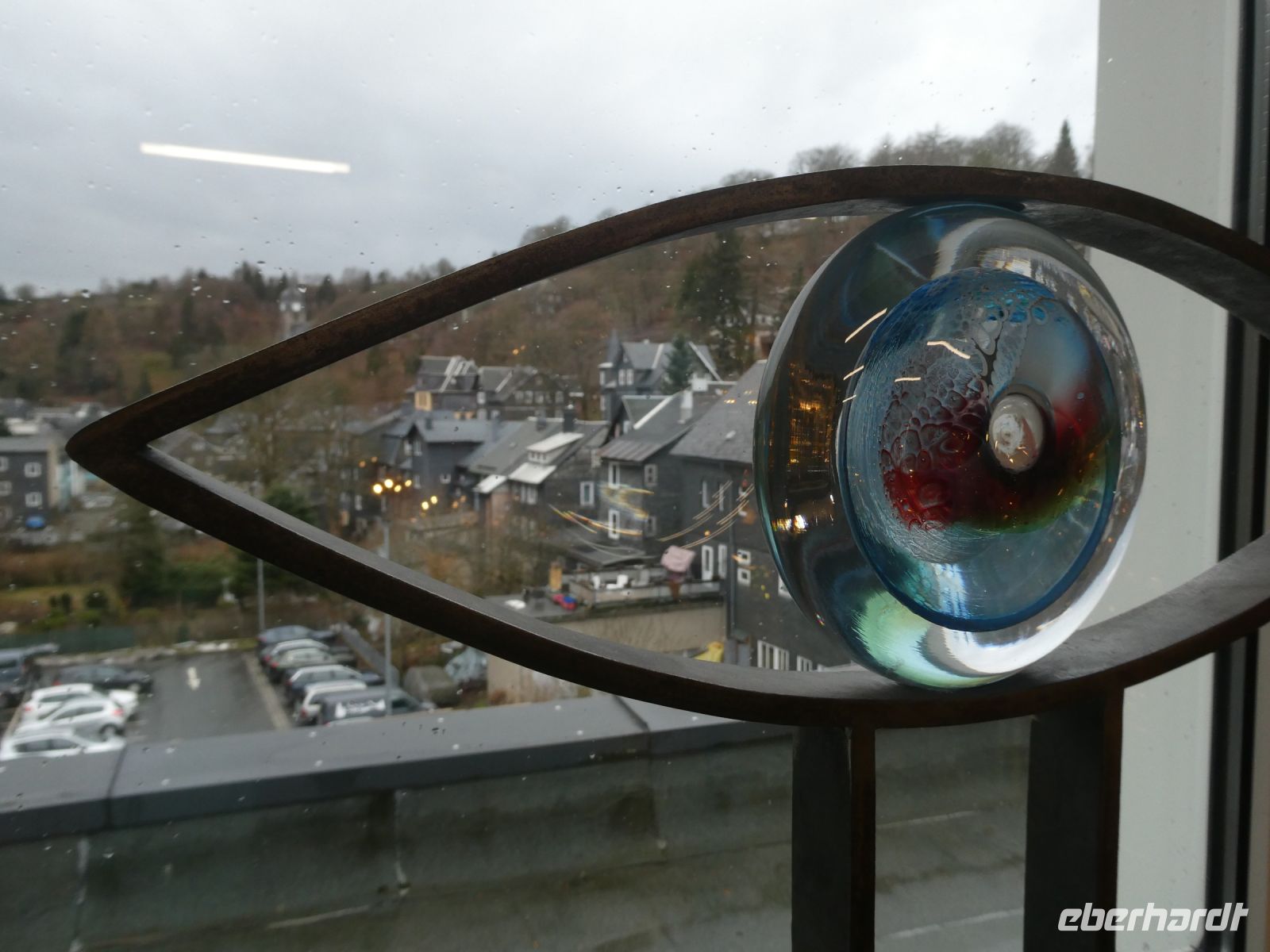 Bevor wir zu unserem Ziel, die Glasbläserstadt Lauscha, kommen muss unser Fahrer Hans-Jörg ganz schön arbeiten um die Kurven zu nehmen. Wir stellen uns vor, es würde hier Schnee liegen. Auf der Fahrt erfahren wir etwas über die Geschichte der Glasverwendung und -herstellung. Wasser, Pottasche, Soda und Buchenholz, alles was man für die Glasherstellung brauchte, gab es hier. Auch Quarzsand in unterschiedlicher Qualität war vorhanden. Wir fahren durch kleine Dörfer in denen die Farbe grau dominiert. Die Häuser sind meistens mit Schiefer verkleidet und auch die Dächer erstrahlen in Grau. Bei Regen wirkt das ein wenig düster.
