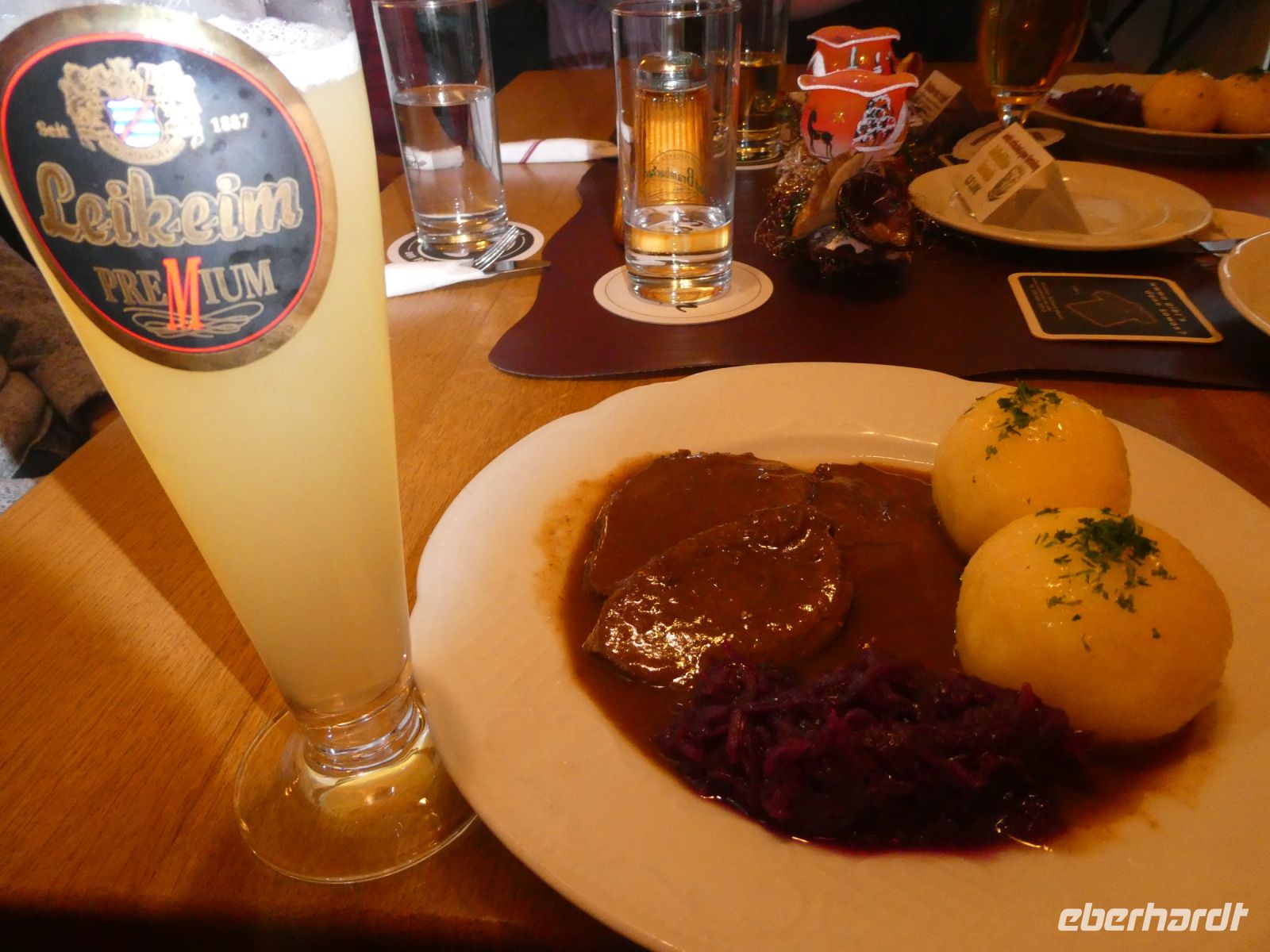 Als wir an der Glasfabrik ankommen sind wir über den modernen Bau erstaunt. Im Hintergrund erblicken wir eine Skischanze. In der Fabrik gibt es natürlich Glas der unterschiedlichsten Machart zu kaufen. Wir werden erst in ein Kino geschickt, in dem wir die Familiengeschichte der Glasfabrikbesitzer erfahren. Leider hat die Galerie auf die sich alle gefreut hatten zu. Der alte Ofen wird restauriert. Alle schwirren aus um den Glasbläsern in den Ateliers über die Schulter zu schauen, ins Museum zu gehen oder die Weihnachtsausstellung zu betrachten. Im Museum gibt es eine interessante Vielzahl von Glaskunstwerken aus vergangenen Zeiten und von heute. Danach gibt es im benachbarten Restaurant einen zünftigen Sauerbraten mit Klößen und Rotkohl.