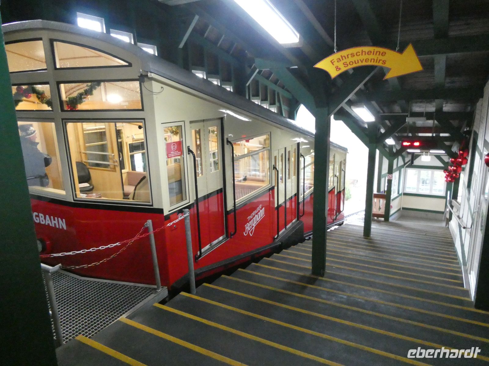 Gesättigt fahren wir weiter, um mit der Oberweißbacher Bergbahn zu fahren. Sie ist ein Markenzeichen des Thüringer Waldes. Komplett saniert und mit neuer Sicherheitstechnik ausgestattet bringt sie uns über 300 Höhenmeter ins Tal. Wir bekommen eine Bahn früher und erfahren von der freundlichen Dame von der Deutschen Bahn einiges über Technik und Bau dieser Strecke. Sie gilt als die steilste Bahn der Welt zur Beförderung normalspuriger Eisenbahnwagen. Nach diesem kleinen Abenteuer geht es zurück nach Bad Tabarz. Auf der Strecke verspäten wir uns etwas, da es ein wenig Stau und Umwege auf der Strecke gibt. Wir genießen wieder ein gutes Abendessen und einige treffen wieder zu einer Spielrunde zusammen.