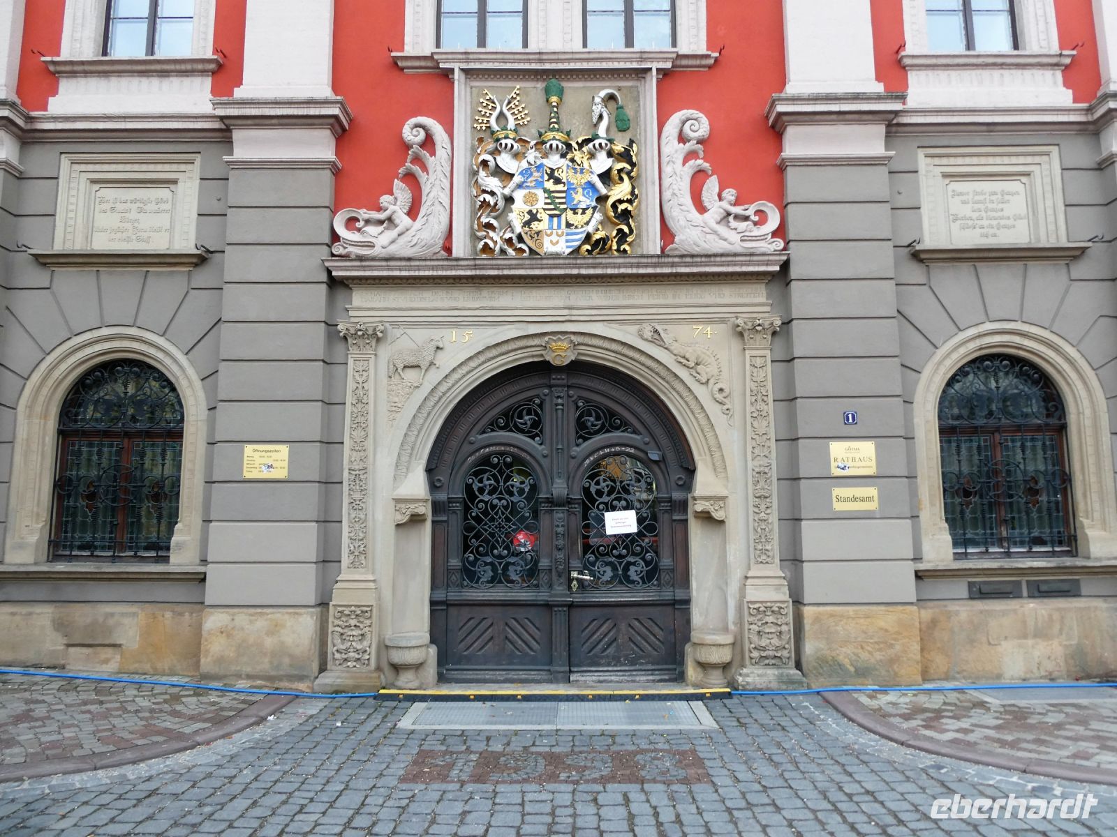 Unser Bus parkt in der Nähe des Schlosses und ein Teil der Gruppe nähert sich über den Schlosshof der Altstadt. Schön restaurierte Häuser säumen die Plätze. Der Marktplatz wird von dem Rathaus dominiert. Einige essen eine Rostbratwurst und andere warten auf den Geheimtipp einer Reiseteilnehmerin. Es soll hier das Beste „Fürst Pückler-Eis“ Thüringens geben. Uns so folgen wir der Beschreibung und es ist gar nicht weit. Das gemütlich eingerichtete Kaffee hat Platz für unsere kleine Gruppe. Nach und nach findet sich die gesamte Gruppe hier ein.