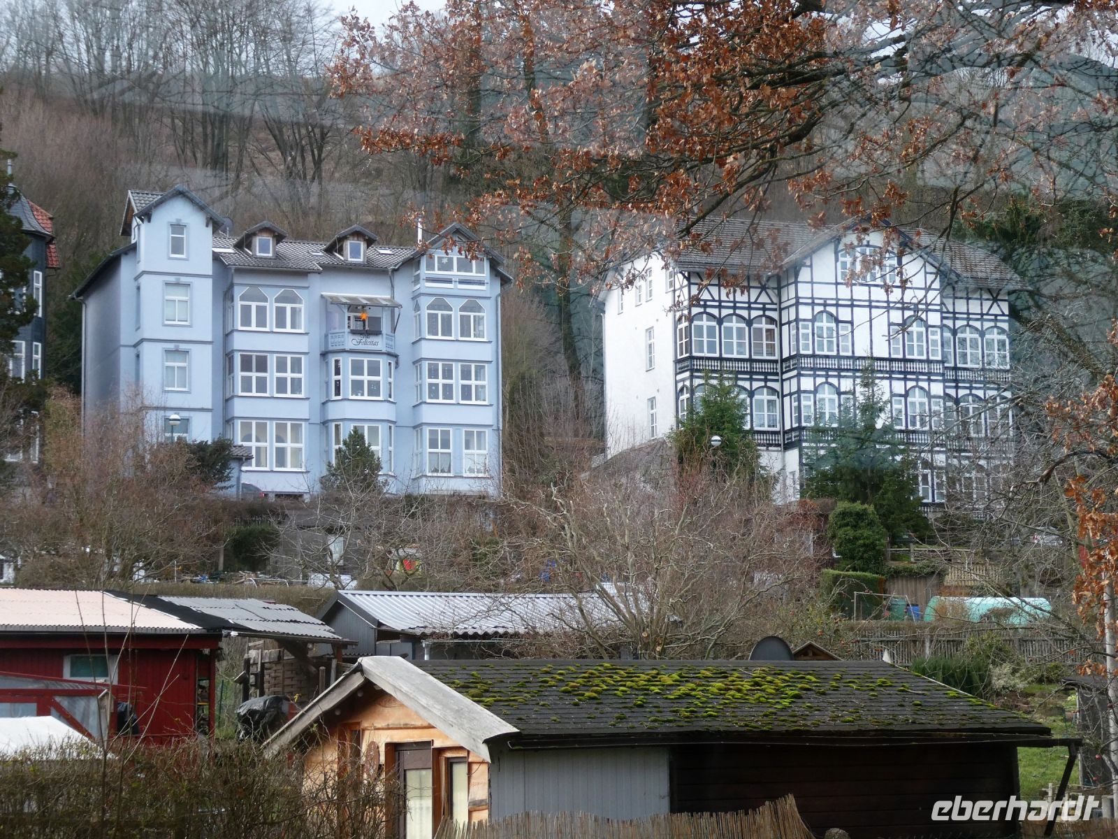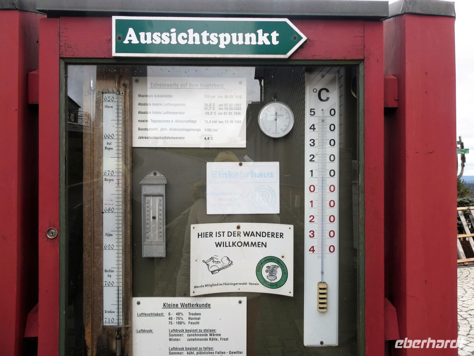 Unsere Parkführerin weiß einiges Interessantes zu berichten und kennt sich auch mit den Bäumen aus. Dann aber ist die Zeit schnell um und wir fahren in das Heilbad Bad Liebenstein, welches wohl seine beste Zeit einmal hatte. Im 19.Jahrhundert ein Bad für die Prominenz und die adeligen Häupter, ist es über den langen Weg eines Volksheilbades zu DDR-Zeiten wieder ein Heilbad, allerdings nicht mehr so prunkvoll wie damals. Nun ist es auch Winter und der Tag des letzten Jahres. Die meisten Geschäfte haben schon zu. Ein wenig enttäuscht fahren wir in Richtung Inselsberg, dem vierthöchsten Berg Thüringens. Nun – der Wind enttäuscht uns nicht.