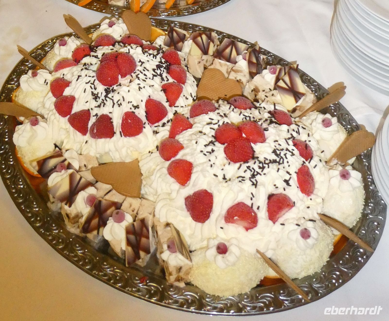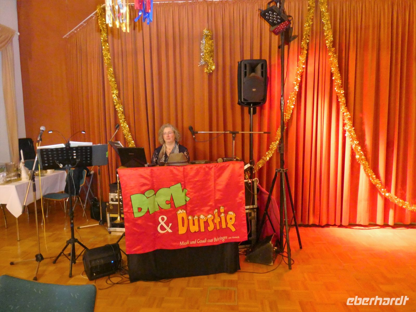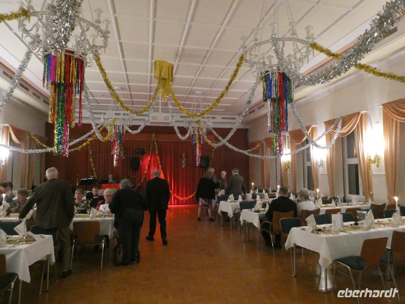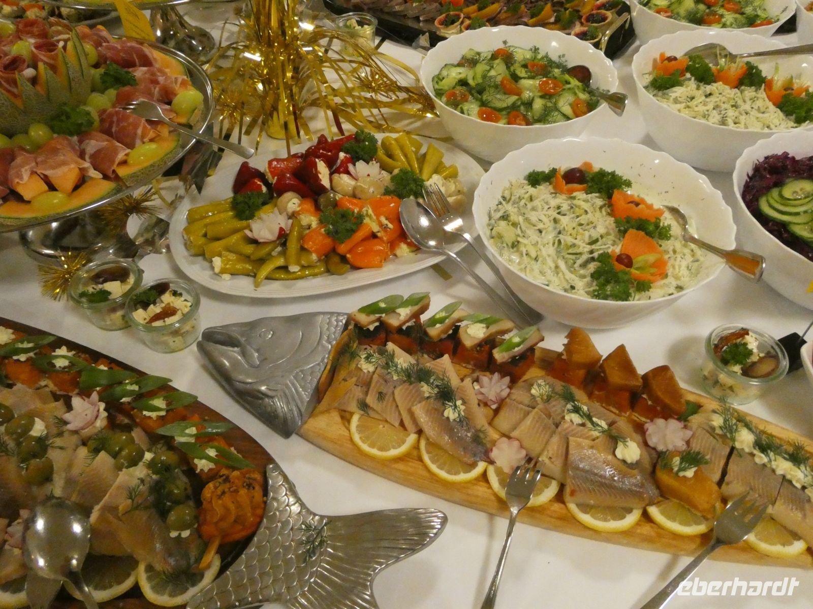 Wir können schon einmal einen Blick auf das aufgebaute Buffet werfen. Lecker sieht es aus, was dort zu sehen ist. Nach und nach füllt sich der Saal und nicht lange danach wird die Party offiziell eröffnet.