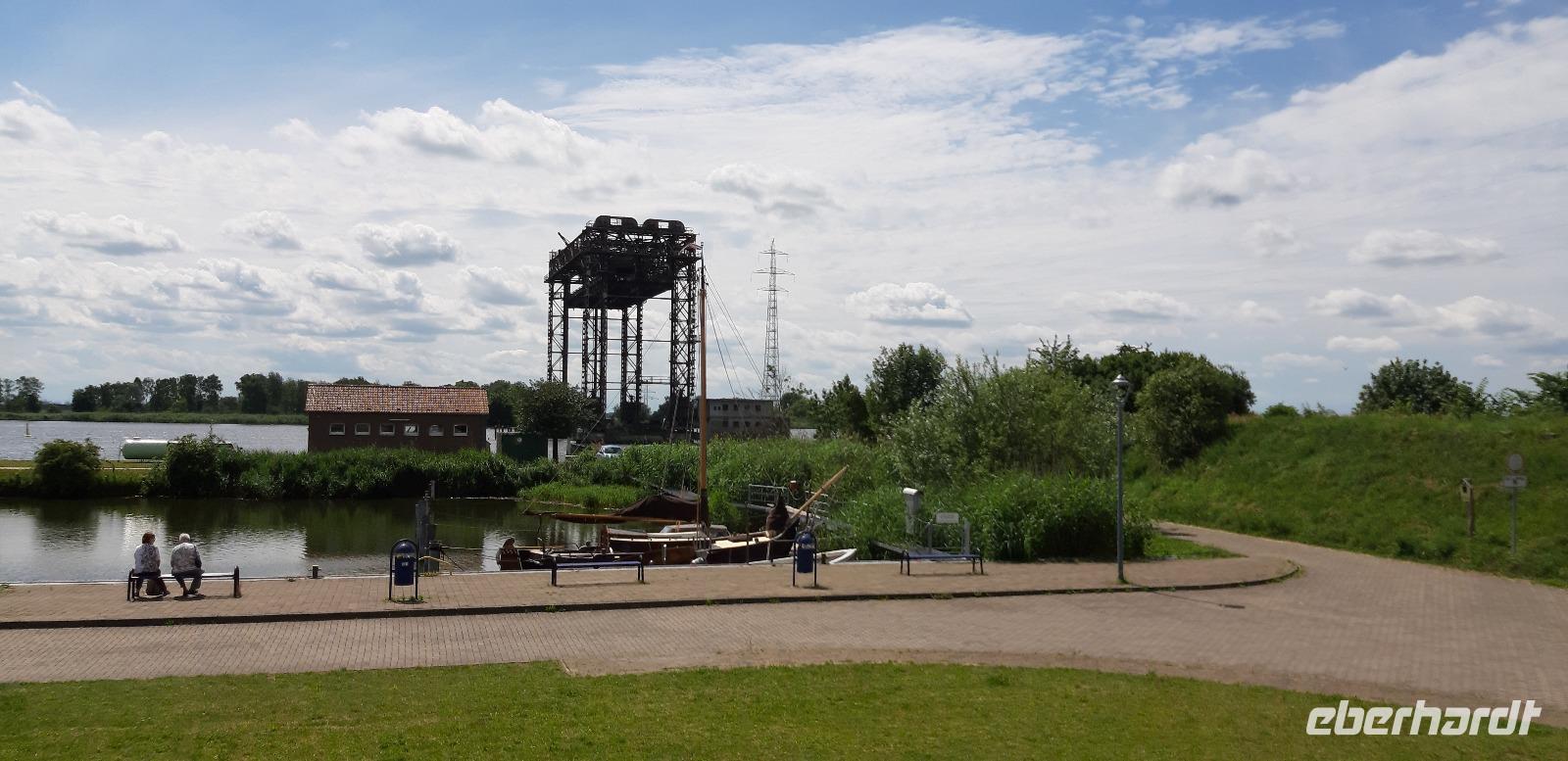 Nach dem Überqueren des Peenestroms legten wir gleich im kleinen Hafen von Karnin eine Pause ein, mit einem wundervollen Blick auf die Hubbrücke, ein technisches Denkmal.