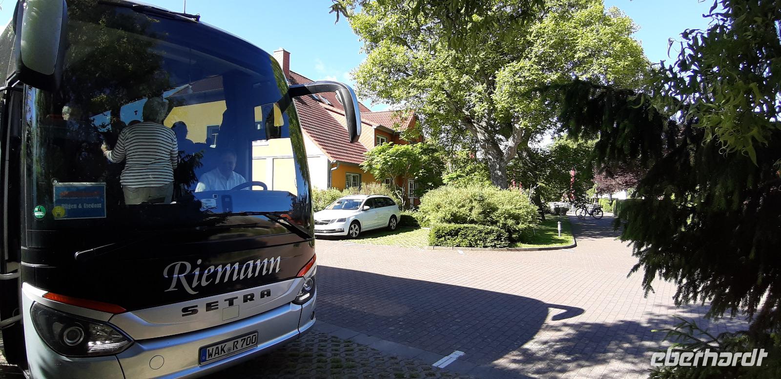 Steffen, unser Busfahrer, brachte uns sicher über die Autobahnen vorbei an Berlin bis in Höhe Anklam. Dort ging es dann über die B199 weiter Richtung Insel Usedom.