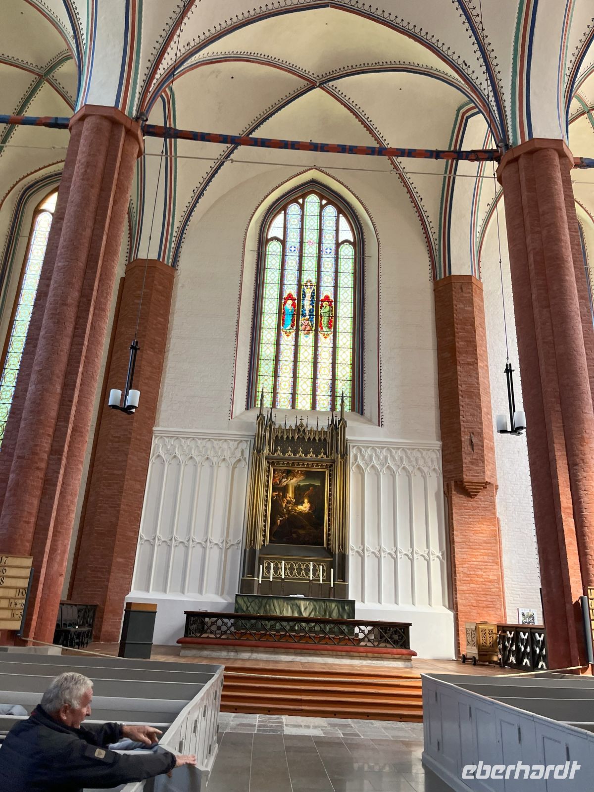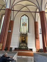 Mit unserem Gästeführer brachen wir zur Vorpommernrundfahrt auf und besuchten zunächst Koserow, wo man die alten Salzhütten der Fischer noch sehen konnte. Die Seebrücke ist sehr jung und modern. Sie führt nicht gerade ins Meer, sondern in Form von Schlangenlinien. Am Ende der Brücke steht eine Glocke. Man kann dort sogar heiraten. Bei der Weiterfahrt bestaunten wir die schöne Brücke über die Peene, die den Beinamen „Blaues Wunder“ hat. Dabei erfuhren wir Einiges über den Verkehr von und nach Usedom in früheren Zeiten. Außerdem sahen wir das Museum des Forschers Runge, des Begründers der Farbenlehre. Danach besuchten wir Greifswald. Wir genossen den Markt mit den schönen historischen Bürgerhäusern, dem Rathaus und den Blick auf den Dom. Die Marienkirche war geöffnet und wir konnten sie auch von innen besichtigen.