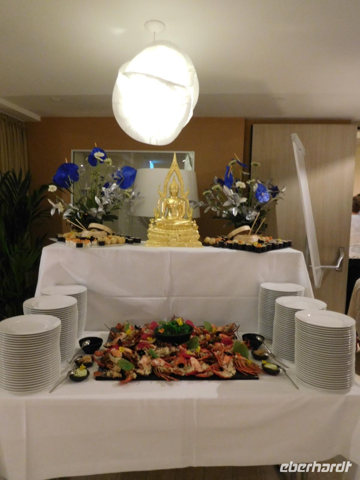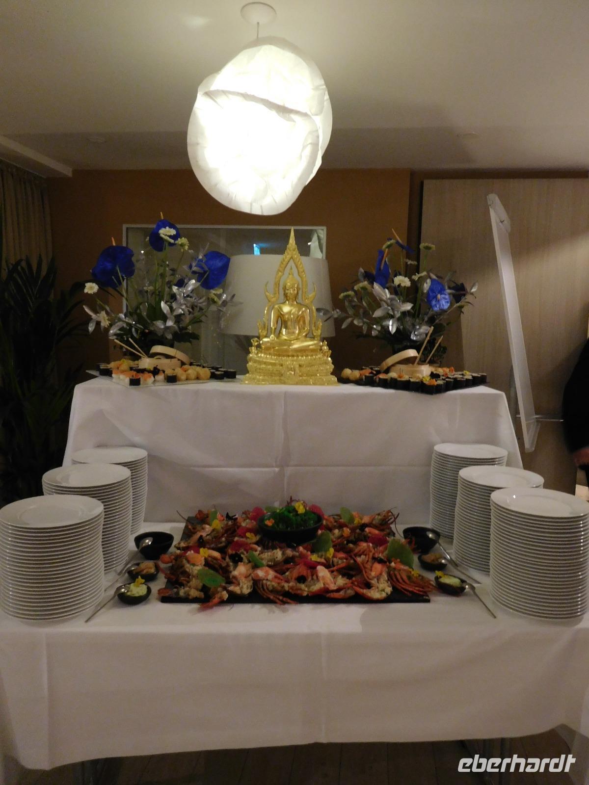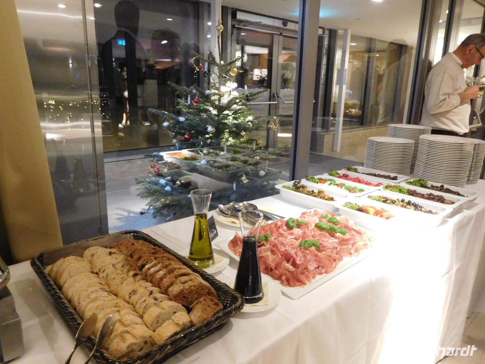 Um 18.00 Uhr begann die Silvesterfeier. Ein tolles Buffet bot für jeden etwas. Kabeljau und Lachs, Perlhuhnbrust, Trüffelpasta, Austern und vor allen die vielen leckeren Desserts waren liebevoll angerichtet. Später spielte eine Band und es konnte getanzt werden.