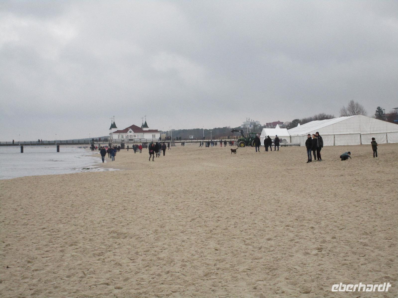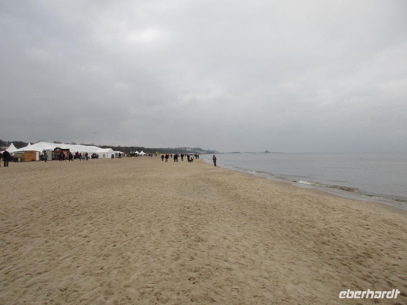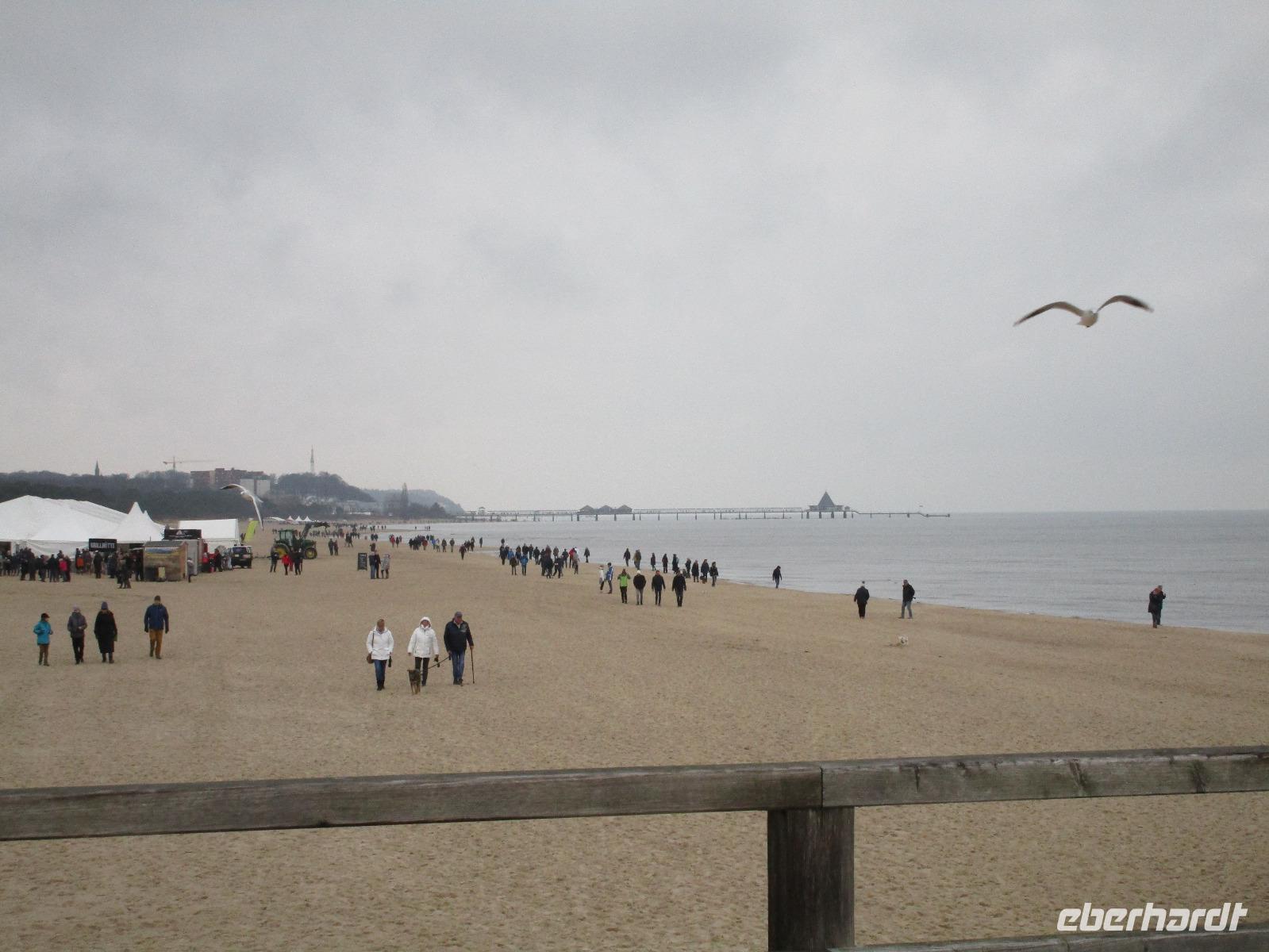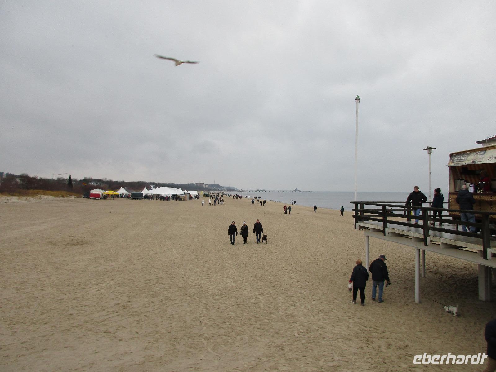 Nach einem super Frühstück starteten wir um 11.00 Uhr im Hotel und bummelten gemeinsam die Strandpromenade bis nach Heringsdorf entlang. Dort gab es Wildschweinbraten mit Sauerkraut, Glühwein und eine Musikkapelle spielte. Den Rückweg konnte dann jeder individuell gestalten. Entweder noch ein Stück am Strand entlang laufen, bis Ahlbeck, einen Einkaufsbummel starten oder die Seebrücke besuchen.