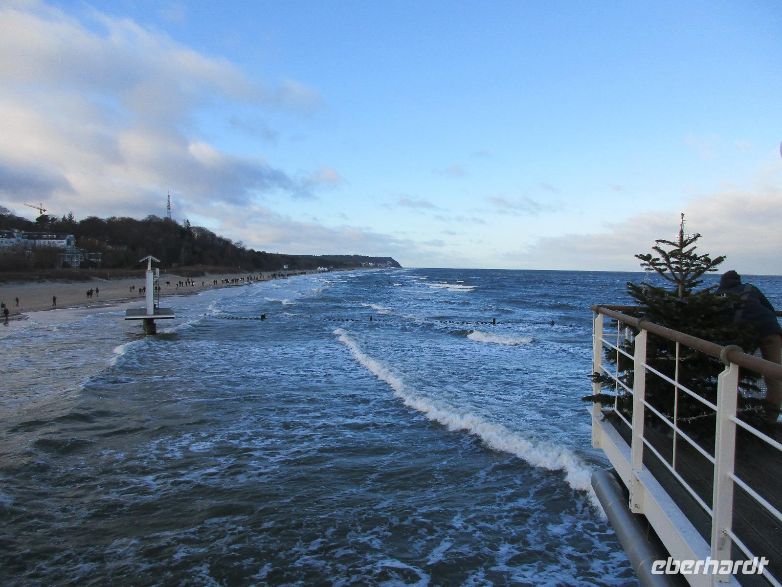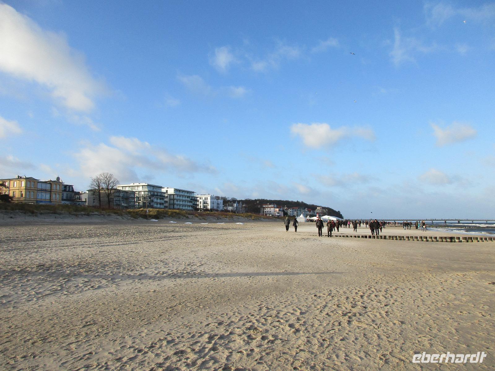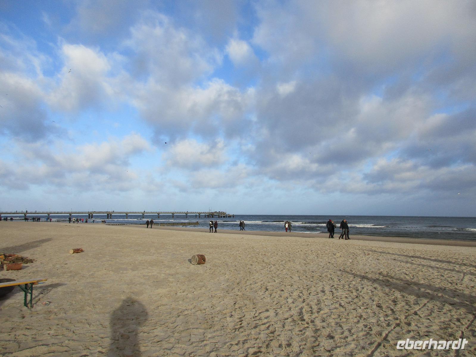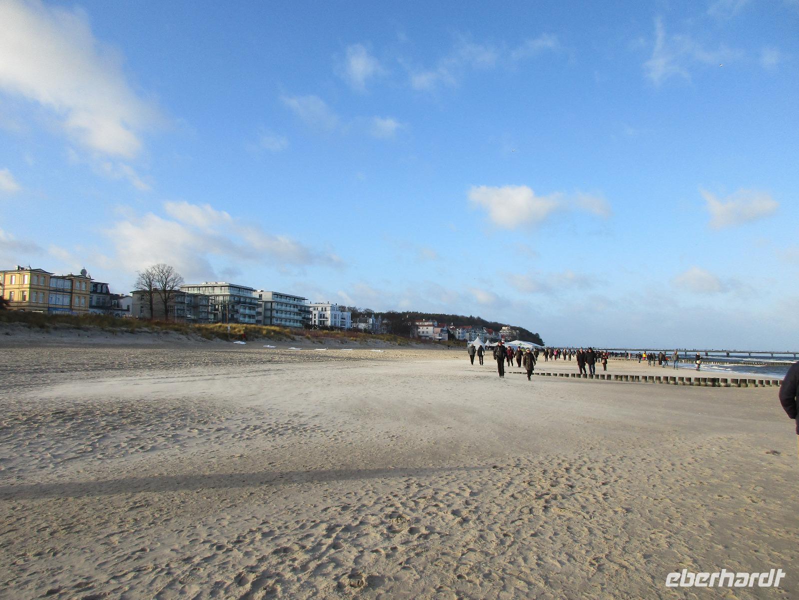 Nach einem super Frühstück starteten wir um 11.00 Uhr im Hotel und bummelten gemeinsam die Strandpromenade bis nach Heringsdorf entlang. Dort gab es Wildschweinbraten mit Sauerkraut, Glühwein und eine Musikkapelle spielte. Den Rückweg konnte dann jeder individuell gestalten. Entweder noch ein Stück am Strand entlang laufen, bis Ahlbeck, einen Einkaufsbummel starten oder die Seebrücke besuchen.