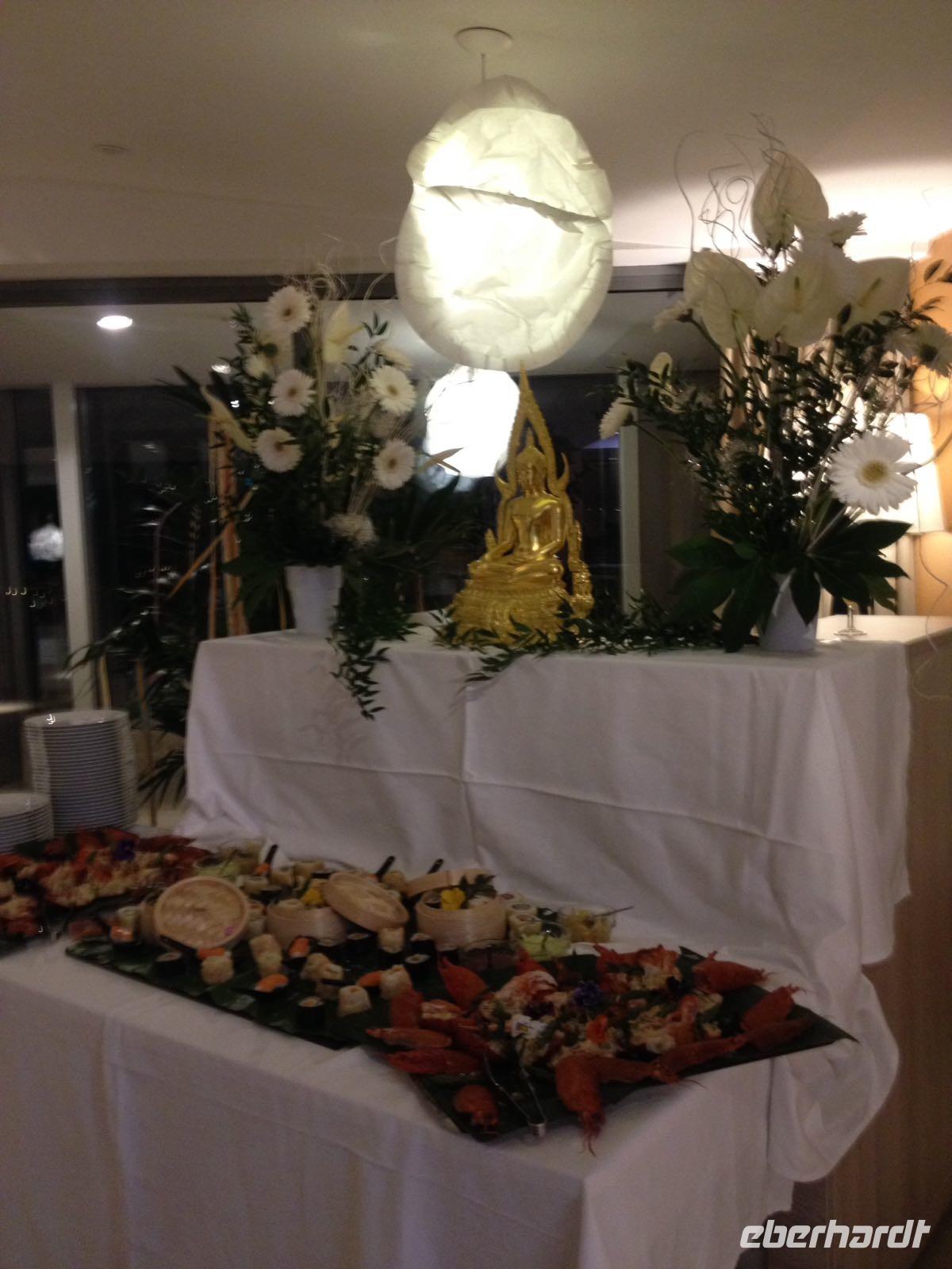 18.30 Uhr gab es auf dem Marktplatz vor dem Hotel einen kleinen Sektempfang. Dann öffnete der große geschmückte Raum zur Silvesterfeier. Eine Band spielte Musik und das Buffet war unglaublich. Auch in diesem Jahr, hat sich der Chefkoch des Hotels, wieder allerlei Leckerein ausgedacht. Auch Austern und Sushi fehlten nicht. Vor allen aber die vielen kleinen Desserts waren liebevoll angerichtet. Der Chefkoch persönlich empfahl uns den einen oder anderen Gaumenschmaus. Es konnte getanzt werden und die Zeit verging sehr schnell.