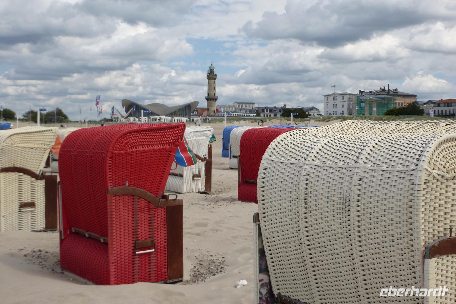 Ein gemütlicher Nachmittag am Strand in einem Strandkorb durfte natürlich auch nicht fehlen. Schließlich wurde das komfortable Strandmöbel 1882 genau hier in Warnemünde vom Hof-Korbmachermeister Wilhelm Bartelmann erfunden!