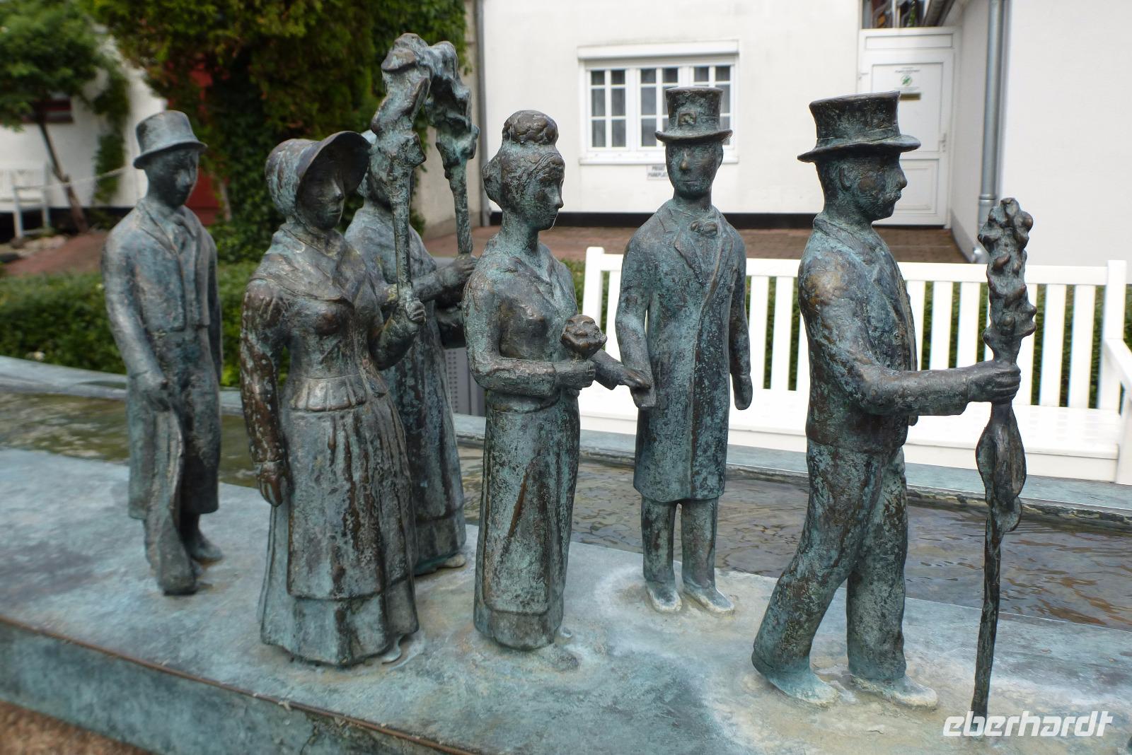 Bei einem Bummel durch die kleinen Gässchen der Stadt mit ihren alten Fischerhäusern und der Alten Vogtei kommt man zum „Warnminner Ümgang"-Brunnen in der Alexandrinengasse, der den historischer jährlicher Umzug in Warnemünde zeigt.