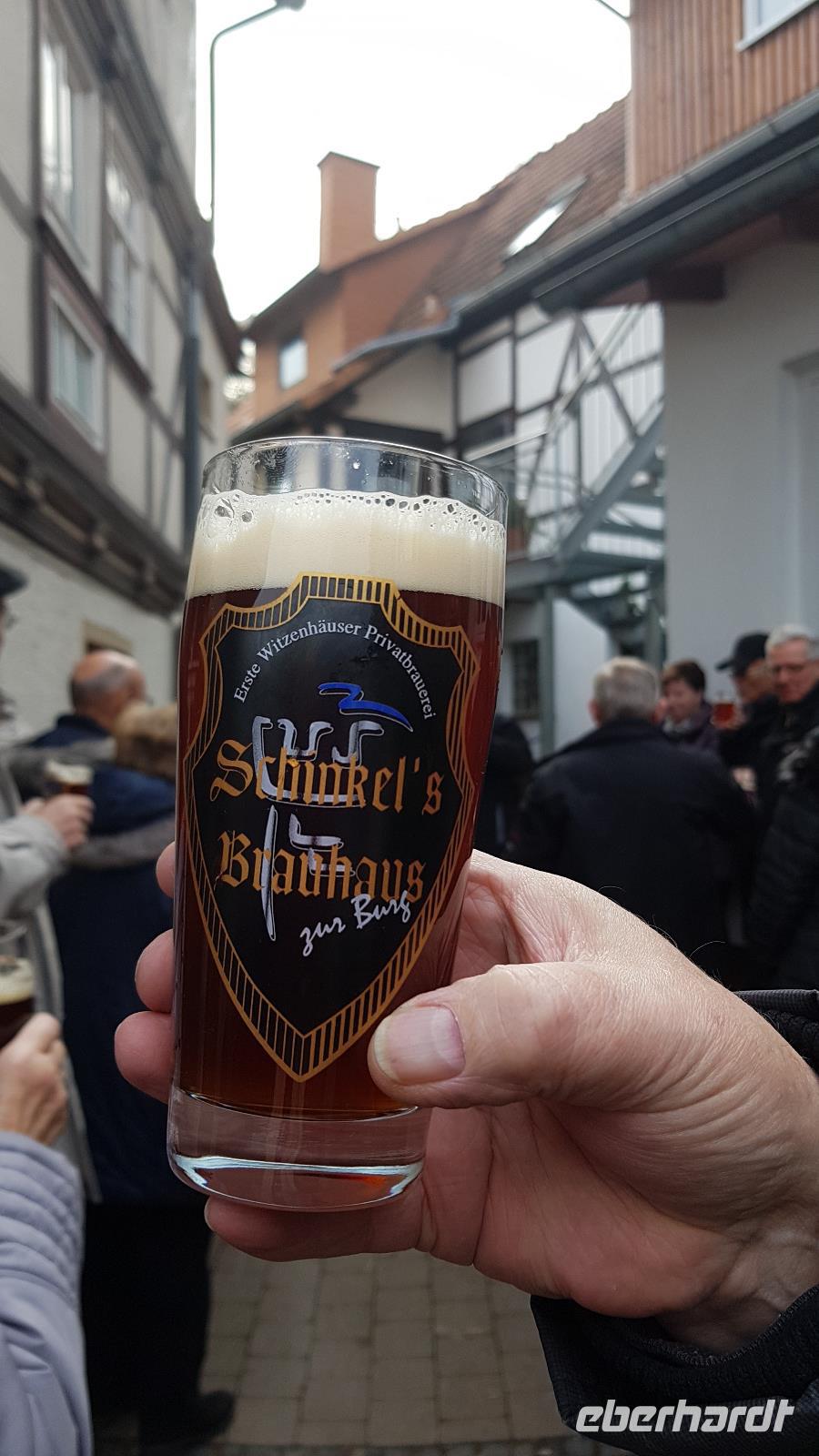 Hier erfuhren wir alles über die Bierherstellung und mit Frau Schinkel jun. erlebten wir eine der ersten Bier-Sommeliers des Landes. Natürlich verkosteten wir den edlen Tropfen- hmm, süffig und malzig, eine Art Kellerbier. Dabei erfuhren wir auch einiges über die Geschichte des Bieres, das es bereits länger als 10.000 Jahre gibt. Dass Bierbrauen damals immer Frauensache war und zur Aussteuer auch immer ein Braukessel gehörte, dass bis zum Einsatz der Hefe ab dem 20. Jahrhundert stets ein Quentchen Glück nötig war, ob die Gärung einsetzte...Deshalb behalf man sich oftmals unorthodoxer Mittel, etwa Fliegenpilze zu verwenden oder Bilsenkraut, alles hochgiftig, aber in der richtigen Dosis brachte es den gewünschten Rausch. Da das aber auch öfter mal schief ging bezeichnet man das deutsche Reinheitsgebot von 1516 auch gern als erstes Männerschutz-Gesetz... ein unterhaltsames Stündchen verbrachten wir hier im Brauhaus und dann ging es weiter Richtung Beverungen. Wir passieren den Zusammenfluss von Werra und Fulda, ab hier heißt der Fluß Weser und dem folgten wir nun eine Zeitlang. Bis wir auf die andere Seite der Weser fahren und in Würgassen, das heute zu Beverungen gehört, an unserem Hotel ankommen, dem