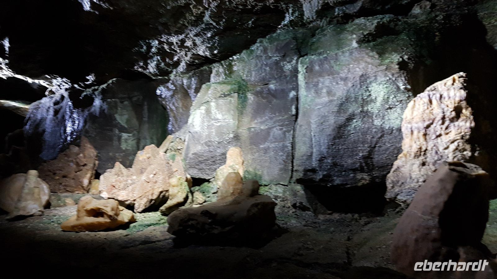Dichter Nebel hüllte alles ein auf unserem Weg hierher und so machte die Stadt der Mythen, Sagen und verborgenen Schätze ihrem Ruf alle Ehre. Die Höhle trägt ihren Namen nach einem der Höhlenforscher, die diese Höhle auch für die Öffentlichkeit zugänglich gemacht haben. Sie ist die nördlichste Tropfsteinhöhle Deutschlands und als einzige von 3 Höhlen begehbar. Extra für uns war sie geöffnet und in 2 Gruppen konnten wir eine faszinierende Welt erleben. Ein toller 3D-Film über die Gebirge hier, die Tier- und Pflanzenwelt und dann natürlich die Führung durch die Höhle selber. Wir bestaunten versteinerten Meeresboden, Fossilien und natürlich die Stalaktiten (die von oben nach unten wachsen) und die Stalakmiten: 0,5 cm in 100 Jahren wachsen sie und so können wir in etwa erahnen, wie lange es gedauert haben muß, bis diese Prachtexemplare so groß werden konnten. Leider ist es auch hier wie so oft: da wo der Mensch hinzukommt verdirbt er alles- so auch in den Schauhöhlen, das Klima in der Höhle ändert sich, die Temperatur steigt, Moose und Farne beginnen zu wachsen, die Tropfsteine verfärben sich gelblich ...dass es ohne den Menschen besser geht zeigt eindrucksvoll ein 3D-Film am Ende des Rundganges: die benachbarte Höhle darf nur 2 x im Jahr zu Forschungszwecken betreten werden- und was für atemberaubende Schönheiten können hier ungestört weiterwachsen! Unsere Höhlenführer erzählen mit viel Engagement und Herzblut von ihrer ehrenamtlichen Tätigkeit, wir sind tief beeindruckt. Zurück am Bus freuen sich alle über einen leckeren Cappucchino oder Kaffee und dann geht es