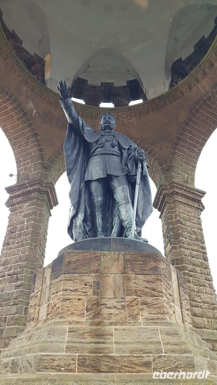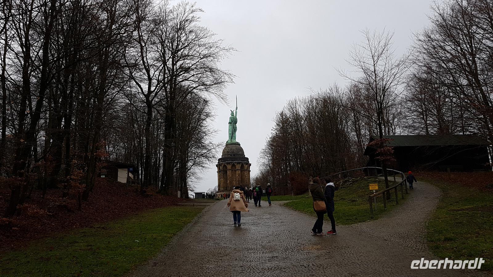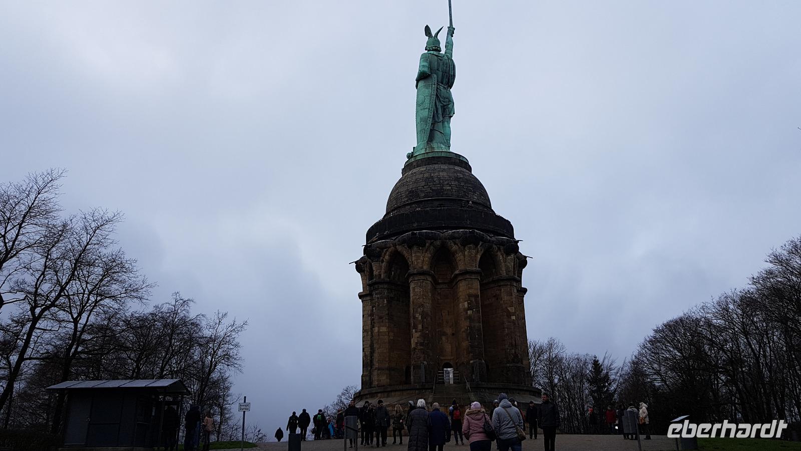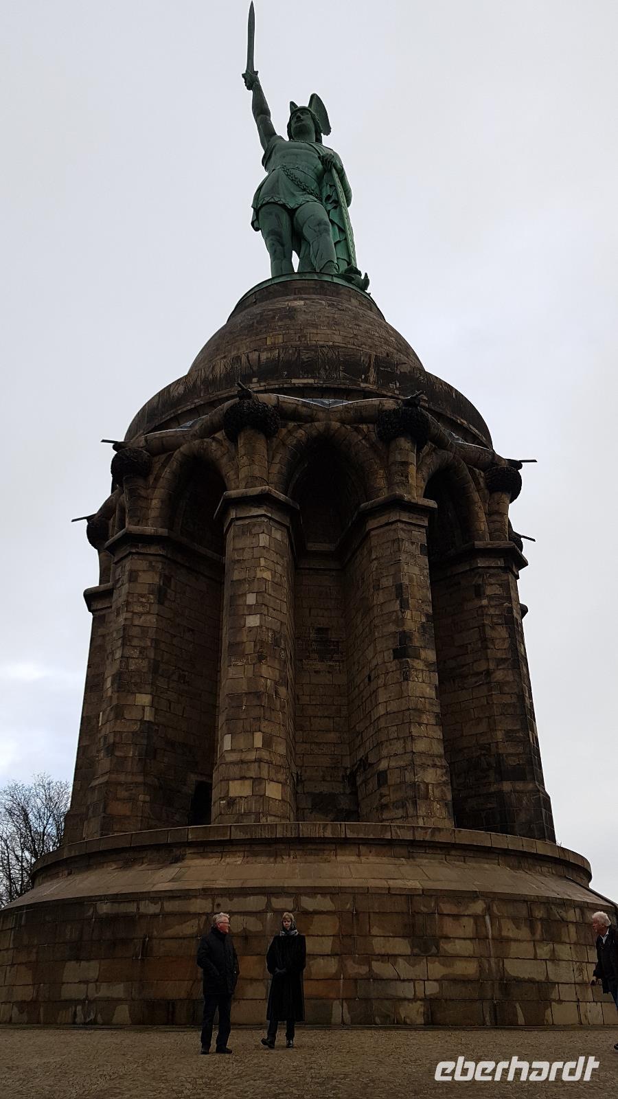 Ernst von Bandel widmete seit 1819 sein ganzes Leben der Idee, hier mit einem Denkmal des Hermann ein Nationalsymbol für ein geeintes Deutschland zu schaffen. Auf dem "großen Hünenring", der altgermanischen Wallburg auf Grotenburg mit ihrer Hochfläche sollte es entstehen und dem Cheruskerfürsten Arminius- Hermann genannt- , der vor 2000 Jahren im Teutoburger Wald das große römische Heer des Varus vernichtend geschlagen hatte ein weithin sichtbares Denkmal setzen. Sein Sieg über die Römer galt im 19. Jahrhundert als Gründungsmythos einer deutschen Nation. Heute steht das Hermannsdenkmal als Mahnmal für den Frieden und für Völkerverständigung. Wir spazieren gemeinsam zum Denkmal und einige nutzen wieder die Gelegenheit und steigen die 69 Stufen im Innern hinauf um die Aussicht auf den Teutoburger Wald und das Eggegebirge zu genießen. Dann geht es weiter zu unserer nächsten Station: