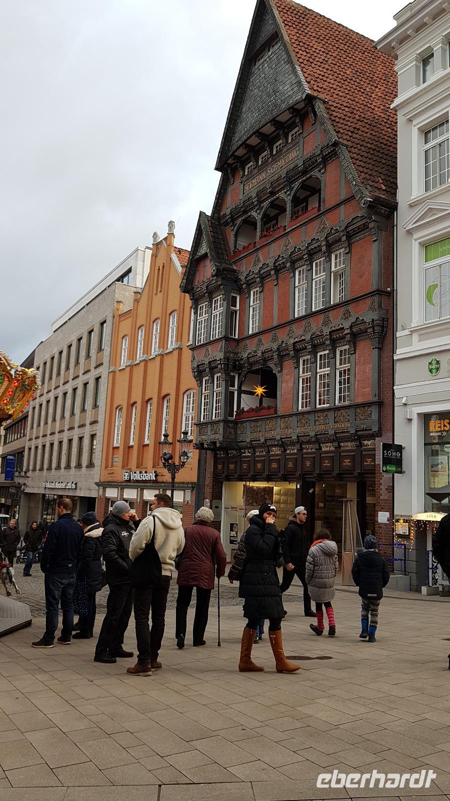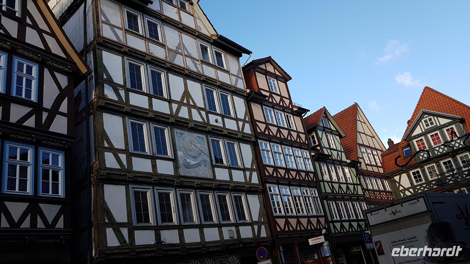 Als Einstimmung hörten wir unterwegs die Geschichte vom Rattenfänger von Hameln, leichter Nieselregen begleitete uns aber an und an ließ sich die Sonne schon sehen. In Hameln angekommen lud ich zu einem kleinen Spaziergang zum Rathaus ein um dort das Glockenspiel mit den Figuren der Rattenfängergeschichte anzuschauen. Leider gab es einen kleinen technischen Defekt, aber wenigstens die Szene mit dem Auszug der Kinder konnten wir sehen. Zurück am Bus trafen wir unsere Stadtführerinnen und in 2 Gruppen ging es los. Dabei passierten wir auch die "Bungelosentraße", hier soll der Rattenfänger die Kinder aus der Stadt geführt haben- seither ist dort das Musizieren und trommeln verboten. Wunderschöne Fachwerkhäuser reihen sich hier im Stadtzentrum aneinander, Hameln hatte Glück und wurde während des Krieges nicht so zerstört wie andere Städte der Region. Ein Besuch im "Himmelreich" durfte natürlich nicht fehlen- so heißt eine der Straßen. Gern wären viele noch ein wenig hier geblieben, aber unser nächster Termin wartete bereits: