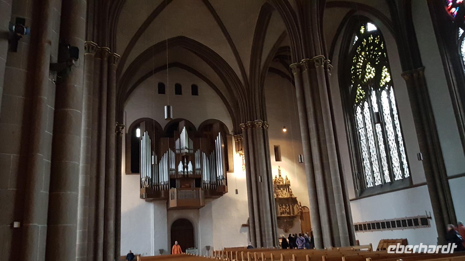 zu ihrem Namen und diese wollten wir als nächstes besuchen. Nach kurzer Parkplatzsuche konnten wir direkt in der Nähe des Domes unseren Bus abstellen und spazierten gemeinsam zum Dom. Ein Dom der Andacht und der Stille, daher hatte ich bereits im Bus etwas zu diesem beeindruckenden Gebäude erzählt. Und so bestaunten wir den Dom, den Taufstein, die goldene Tafel, die mittelalterliche Pieta ... Bereits während unseres Spazierganges zum Dom hatten wir den Weihnachtsmarkt entdeckt und so besuchten wir diesen natürlich ebenso. Zwischen Schmieding-Haus und Rathaus herrschte noch buntes Treiben, es war der letzte Tag des Weihnachtsmarkts hier und den zelebrierten alle. Zurück am Bus hatte ich für alle eine kleine Überraschung: gebrannte Mandeln und Nüsse, Waffeln und Schokofrüchte wurden fleißig probiert. Schon ging unsere Fahrt zurück zum Hotel, passend zum letzten Weihnachtsmarkt-Tag las ich die Geschichte von Ottokars Weihnachtsbräuchen vor und bei anschließender leiser Musik konnten alle die Rückfahrt entspannt genießen. Im Hotel erwartete uns wieder unser 3-Gänge-Menü und danach sahen sich etliche Gäste noch ihren Film ihrer letzten gemeinsamen Reise an. So klingt ein langer Tag aus und morgen ist