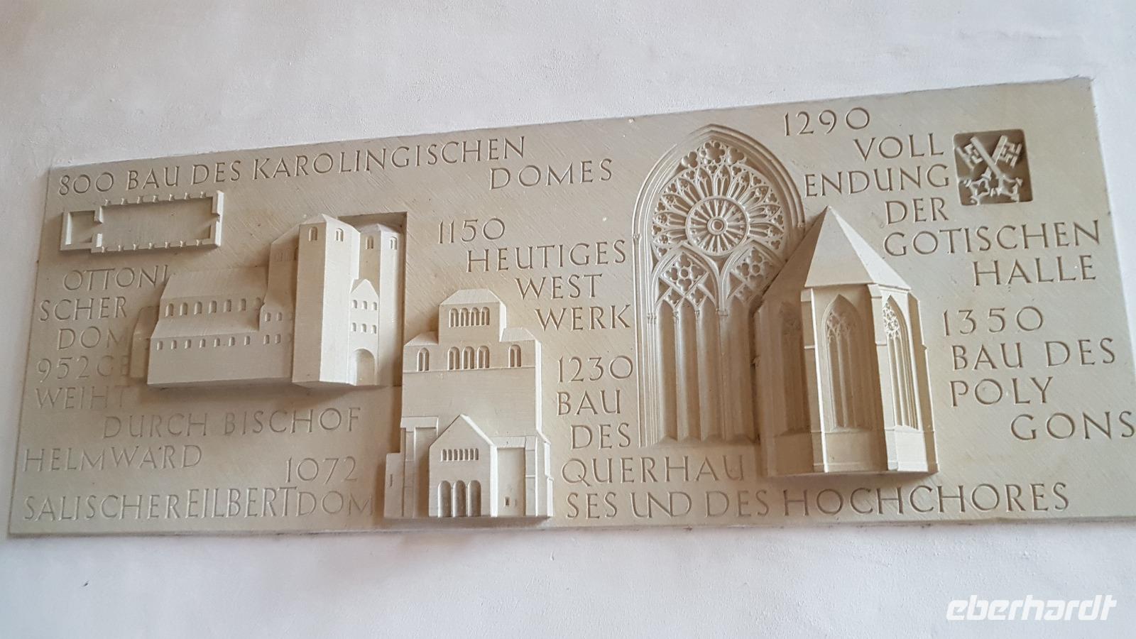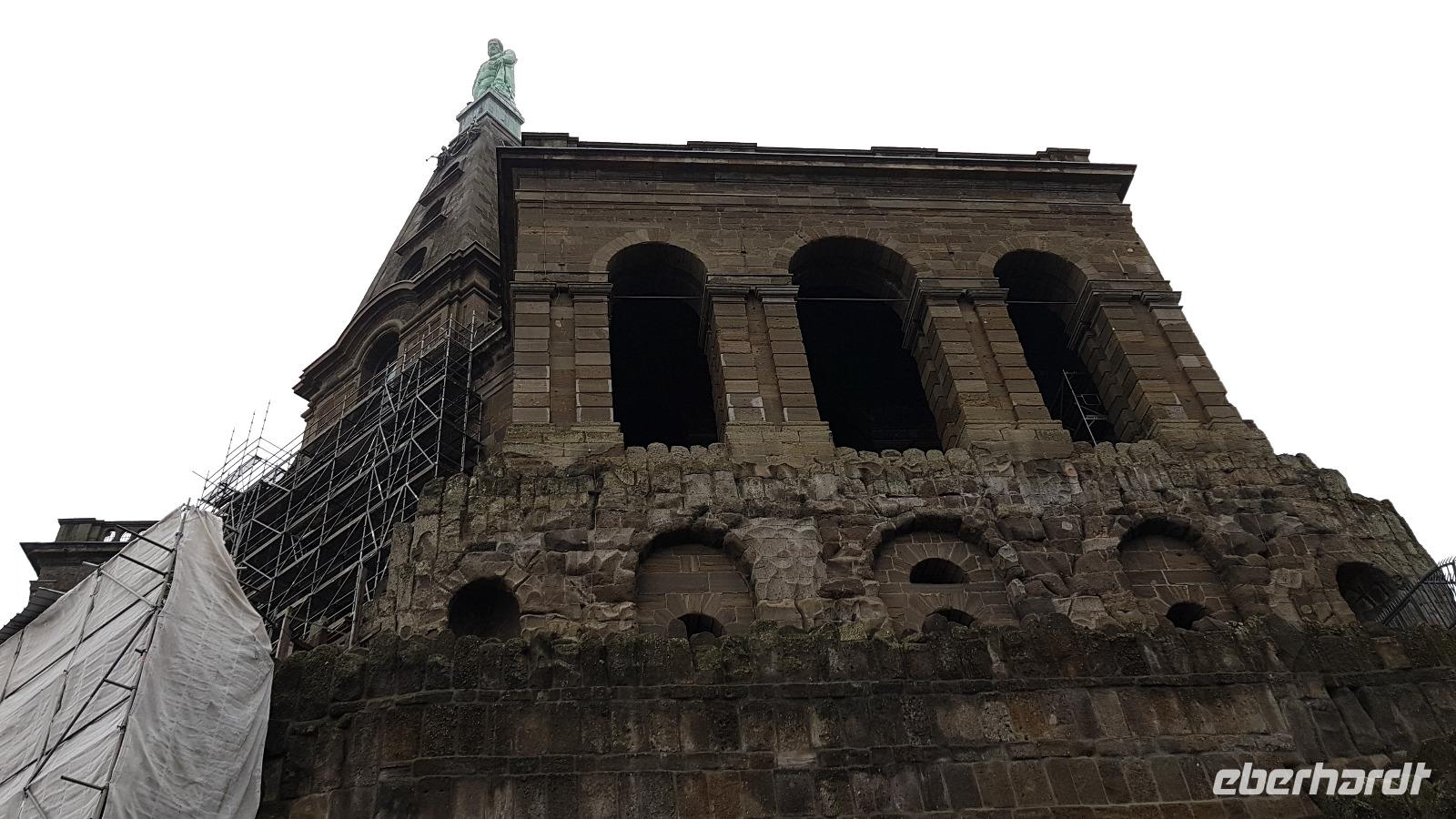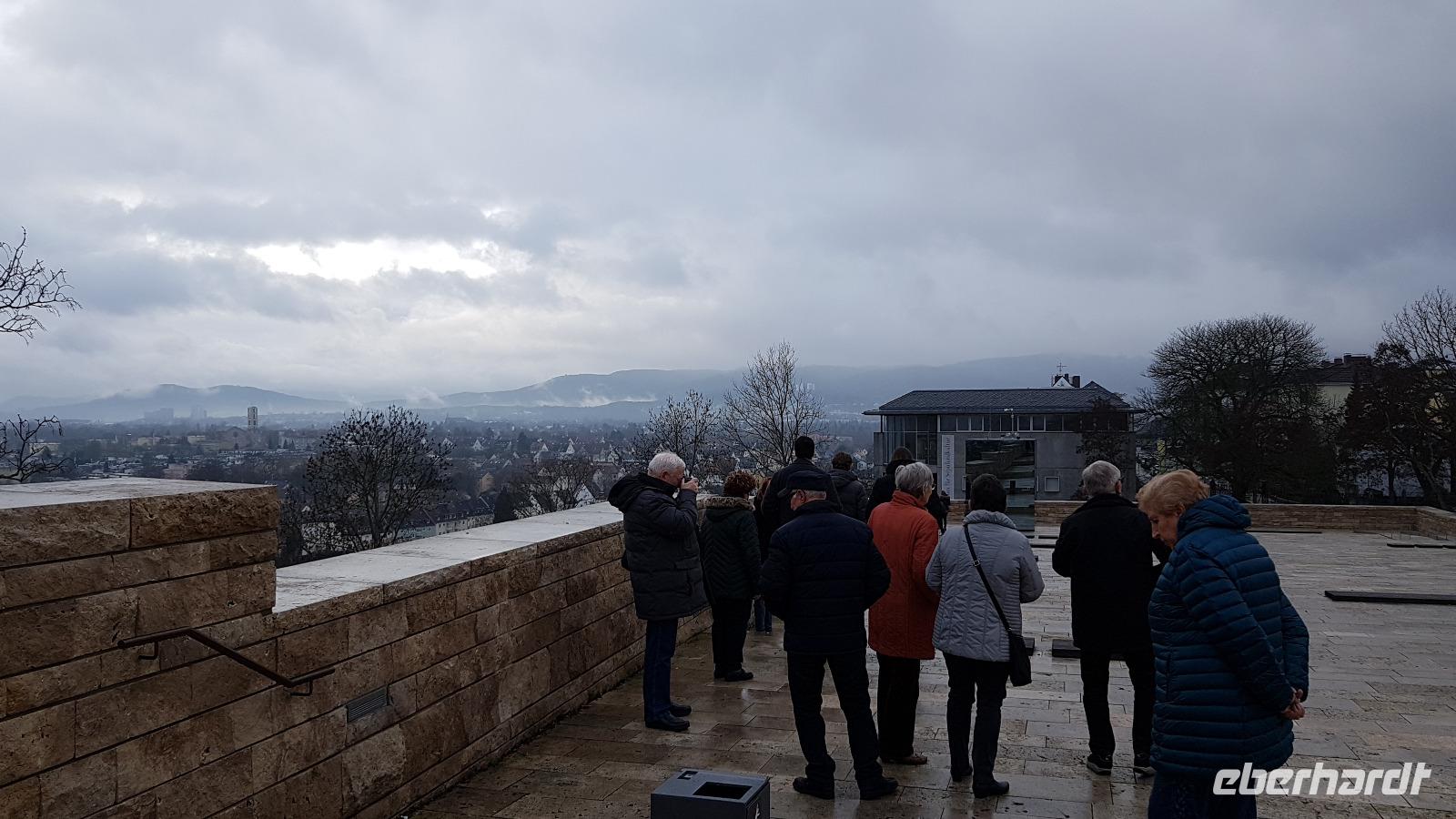 wir fahren ganz hinauf und haben Glück: Heute fährt der Shuttle-Bus nicht, da können wir uns mit unserem Bus oben hinstellen. Das gesamte Areal wurde aufwändig saniert in den zurückliegenden Jahren, erst seit Sommer diesen Jahres ist es wieder öffentlich zugänglich. Wir stärken uns kurz vom Bordservice und starten dann eine individuelle kleine Erkundungstour zum Denkmal. 1896 wurde es zu Ehren Kaiser Wilhelm I. errichtet und mit der letzten Sanierung sind unglaublich interessante Ausstellungen und Plattformen dazugekommen. Hier müßten wir mehr Zeit haben, genießen aber trotzdem den Ausblick von hier oben in 281 Metern über NN. Ganz in der Nähe befindet sich auch die Wittekindsburg, hier gab es bis 1938 eine Quelle, die eingefasst wurde und über der ein Hufeisen angebracht worden war. Nach einer Überlieferung wollte sich der heidnische Sachsenherzog Widukind nicht Kaiser Karl dem Großen beugen, der das Land christianisieren wollte, er verlangte einen Beweis für die Macht dieses Glaubens. Da soll sein Pferd mit den Hufen gescharrt haben und eine Quelle ans Tageslicht gebracht haben, eben jene in der Wittekindsburg. Durch dieses Quellwunder soll Widukind so beeindruckt gewesen sein, dass er das Knie beugte vor Karl dem Großen und sich unterwarf. "Diese Burg soll nun "min und din" (mein und dein) sein, bot Widukind an und Karl der Große soll erwidert haben:"So trage sie auch den Namen Min-din". So kam die Stadt