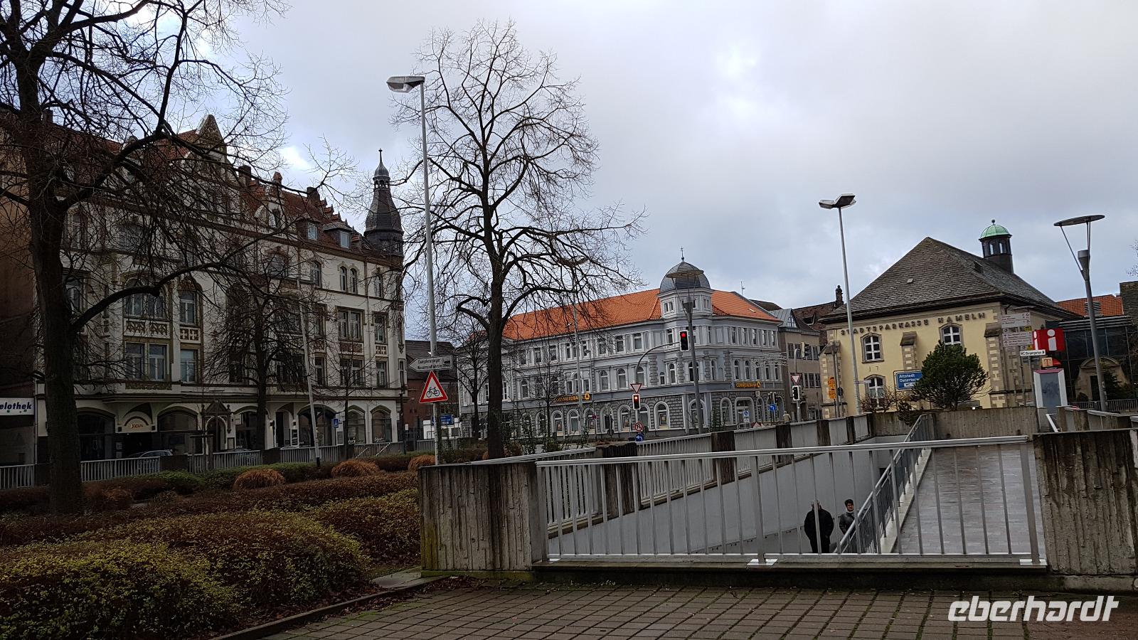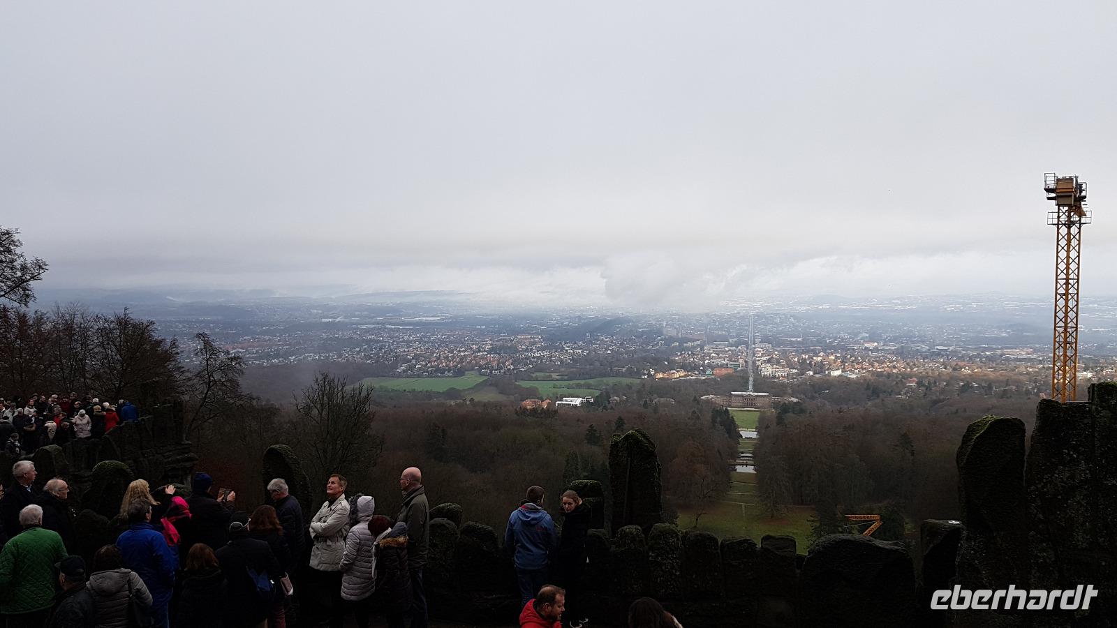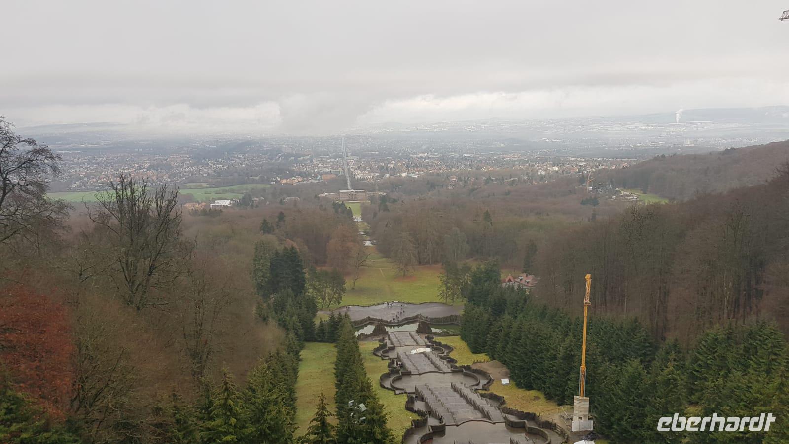 "Guten Tag" zu sagen. Valerian, unser Busfahrer und ich waren uns rasch einig, dass wir hier ein zusätzliches WOW anbieten wollen und so fuhren wir hinauf zum Bergpark Wilhelmshöhe. Hier wird zwar seit 2006 saniert, aber der Herkules grüßt gut sichtbar von seiner Pyramide auf dem Oktogon, dem Riesenschloß. Von der Aussichtsplattform hatten wir einen tollen Blick auf die Stadt, wenn auch etwas wolkenverhangen. Nun ging es aber wirklich zurück nach Würgassen zu unserem Hotel und hier bleibt noch Zeit, das abendliche Würgassen bei einem Spaziergang zu genießen und sich für den
