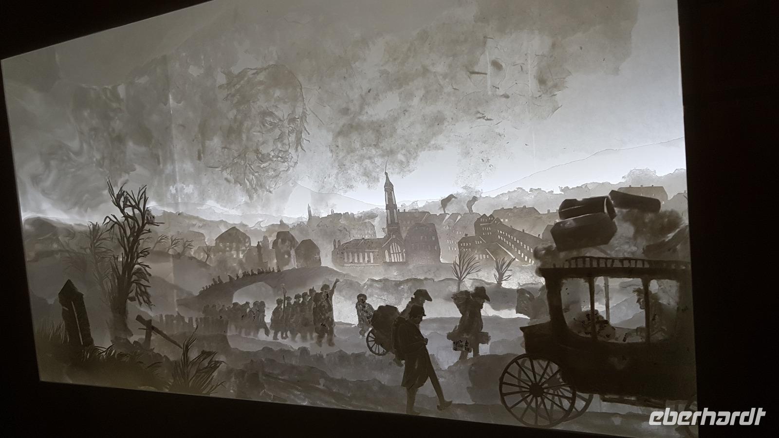schließlich erkunden wir in zwei Gruppen. Unglaublich, was die Brüder Grimm geleistet haben, erst mit der Sammlung der Märchen, besonders aber später mit dem Wörterbuch der deutschen Sprache. Ohne sie gäbe es heute keine einheitliche deutsche Sprache- wer hätte das gewußt. Unsere Führerin erzählte uns, dass beide Brüder hochbegabt waren, als 3jährige bereits geschrieben haben und bis zu 40 Sprachen und Dialekte beherrschten- wow! Die Darstellung ihrer Arbeiten hier in der Grimmwelt waren sehr aufschlußreich für uns und natürlich haben wir uns auf die Märchenwelt besonders gefreut. Da nach der offiziellen Führung noch Freizeit war nutzten viele die Gelegenheit und sahen sich nochmals Teile der Grimmwelt ausführlicher an. Dann lockte das Restaurant zu einem Imbiss, einige Gäste spazierten auch in die Stadt hinunter, als Abschluß dann der Blick vom Dach der Grimmwelt auf Kassel und den Märchengarten. So machten wir uns auf den Rückweg- aber was wäre ein Besuch in Kassel, ohne