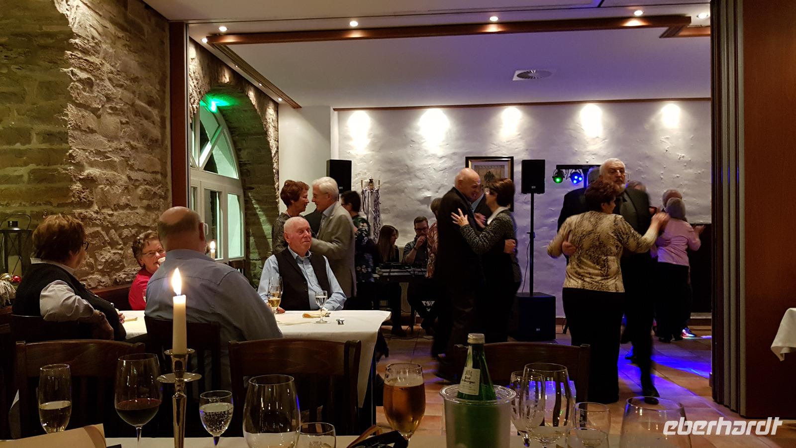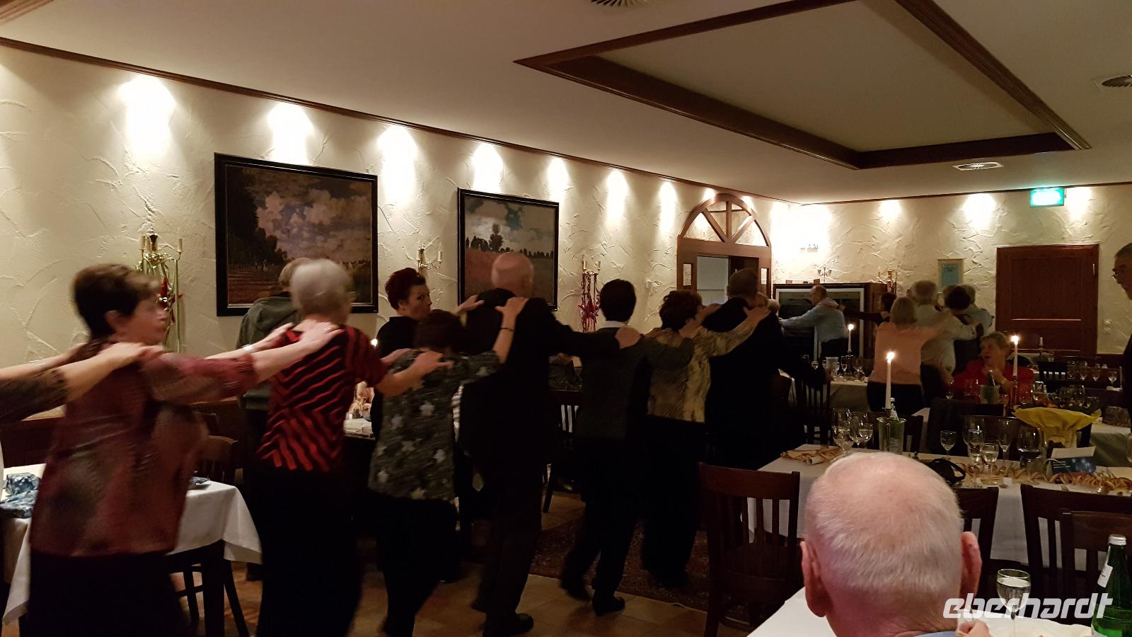 fit zu machen. Dieser begann mit einem Sektempfang in der Lobby, an festlich gedeckten Tischen nahmen wir Platz und die Chefin des Hauses eröffnete das Buffett. Von Suppe, Wildschweingulasch über Fischfilet bis Lendenbraten, von Kartoffelauflauf bis Kroketten, von Rotkohl bis Bohnengemüse- hier war für jeden etwas dabei. Leckere Desserts rundeten diesen Auftakt ab und dann wurde getanzt bis zum Morgen. Der DJ schien erst ab dem neuen Jahr munter zu werden, er "verschlief" bis 24 Uhr die Zeit und legte nur Musik auf, auch das neue Jahr begrüßten wir selber, dann aber drehte er richtig auf und als erstes gab es ein Ständchen für unser heutiges Geburtstagskind. Dann wurde getanzt bis in den Morgen.