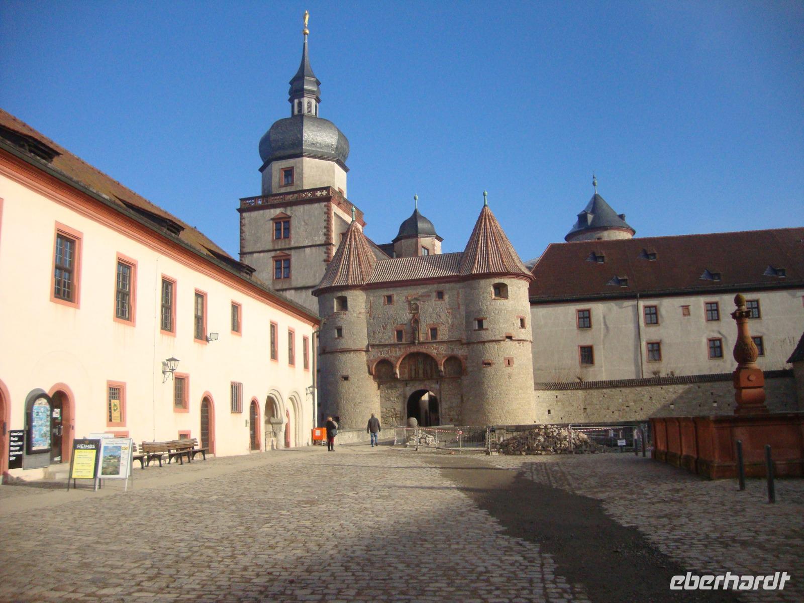 Unsere Anreise von Dresden nach Würzburg verlief ganz planmäßig, so wie ich das mit unserem Chauffeur Werner Hering, schon vorher abgesprochen hatte. Im schönen Vogtland begann die Morgendämmerung und wir konnten die "Hauptstadt" Plauen von der Ferne erkennen.Weiter ging es über die "Weisse Elster - Brücke", welche als Erste die scnelle Verbindung zwischen Sachsen und Bayern schuf. An der Einweihung im August 1993 nahmen u.a. die damaligen Ministerpräsidenten, Kurt Biedenkopf und Edmund Stoiber, teil. Ein wahrlich historisches Ereignis. Das Fichtelgebirge mit seinen beiden höchsten Erhebungen, dem Schneeberg mit 1053 m und dem Ochsenkopf mit 1024 m, passierten wir anschließend. Am Dreieck Bayreuth / Kulmbach bogen wir ab ins Eldorada der Kletterer und Bergsteiger, die "Fränkische Schweiz". Bekannt ist diese Landschaft auch durch ihre zahlreichen Höhlen, wobei diese bei Pottenstein, die Größte ist. Auf der deutschen "Bierstrasse", vorbei an Kulmbach, der Hauptstadt des Bieres und Bamberg, der Weltkulturerbe - Stadt, machten wir eine kleine Mittagspause am Autohof in Knetzgau, Die Würstchen und den Kaffee liesen wir uns munden nach der Ankunft auf der Feste Marienberg , in Würzburg. Der Nebel hatte sich inzwischen aufgelöst und bei einem Rundgang sah man die Altstadt von Würzburg sehr gut. Die alte Kirche der Festung mit über 3m dicken Mauern ist im Inneren mit prächtigem Stuck ausgestattet. Die Fürstbischöfe bauten immer wieder neue Festungselemnte an und im 17.Jh. umschlossen den Marienberg Mauern und Bastionen von 12 km Länge! Wahrhaft eine gewaltige Wehranlage, welche den Fürstbischöfen als Zuflucht diente.