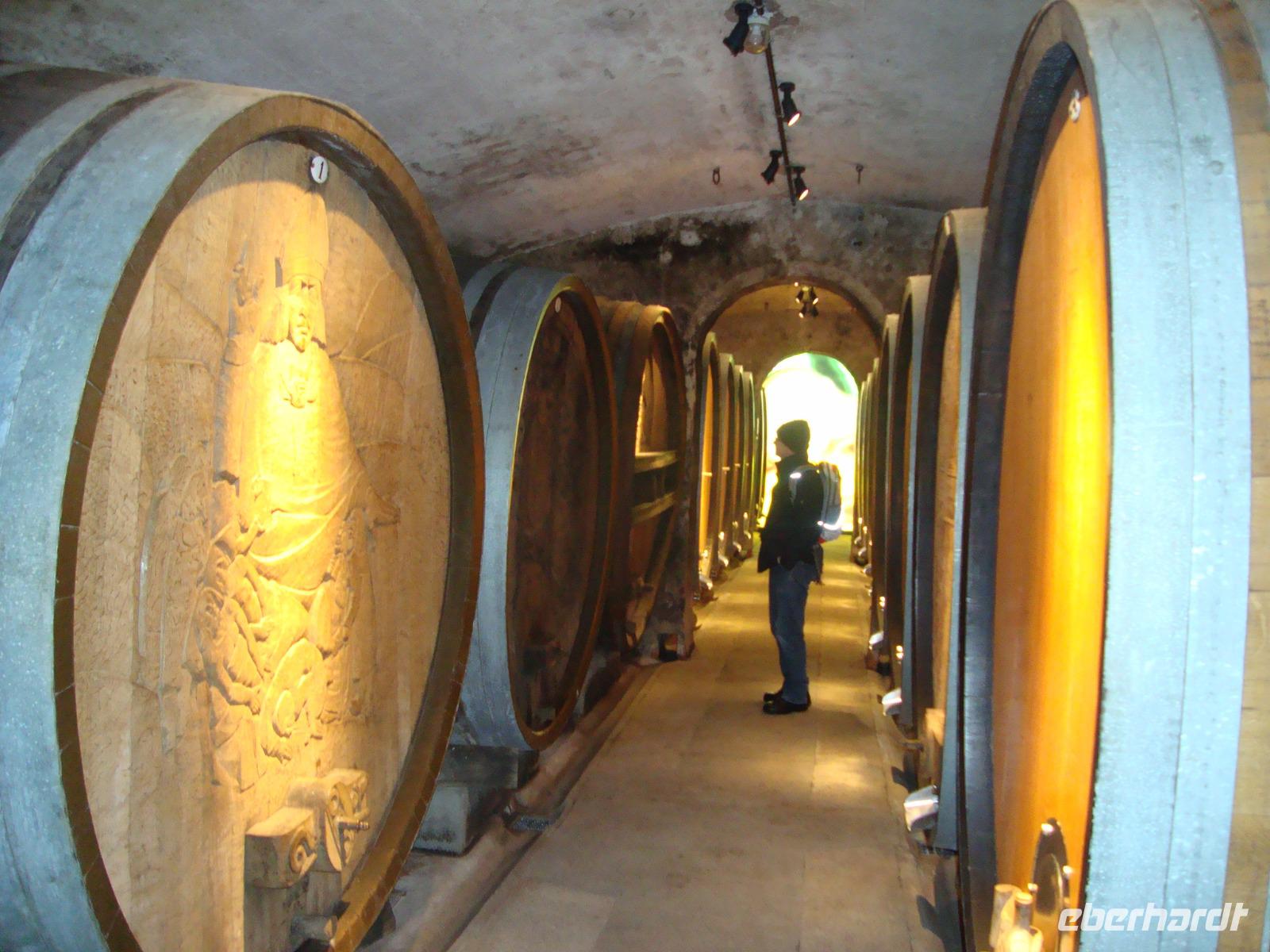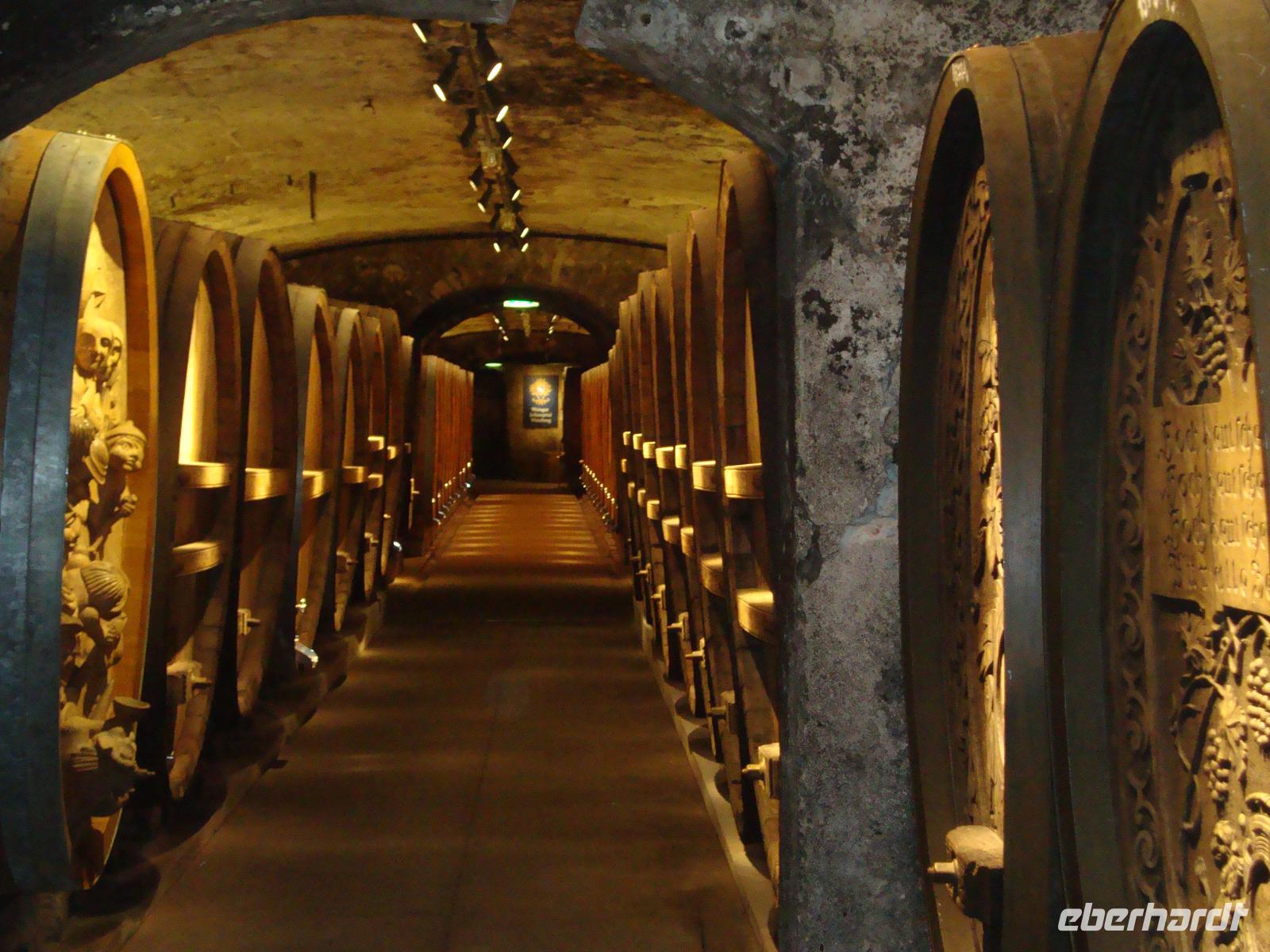 Den Vormittag, mit einem gehaltvollen und sehr guten Frühstück, liesen wir gemächlich angehen. Denn die längste Nacht des Jahres stand bevor. Die meisten Gäste zogen einen Bummel in der schönen, weihnachtliche Atmosphäre verbreiteten Altstadt vor. Am frühen Nachmittag waren wir zu einer Weinprobe, in einem der größten Weingüter Deutschlands dem Juliusspital eingeladen. Das Juliusspital ist Seniorenstift, Palliativstation und Krankenhaus finanziert aus Weinbau und Landwirtschaft. Seinen schlossähnlichen Charakter offenbart das Gebäude zum Innenhof. Damit schuf sich Fürstbischof Julius Echter, Stifter der Anlage, 1576 ein Denkmal mit Rokoko - Apotheke und einem Gewölbekeller mit mächtigen Weinfässern, der seinesgleichen sucht. Herr Halbleib unser freundlicher und sehr interessant erzählender Führer, durch diese gewaltige Anlage, wußte sehr viel zu berichten. Der 250m lange Weinkeller mit seinen mächtigen Eichenfässern beeindruckte uns sehr. Eine drei -fache Verkostung verschiedener Weine durften wir dabei probieren. In den Weinbergen rund um Würzburg wird vorwiegend "Silvaner" angebaut, das Juliusspital ist der größte Produzent. Zum Abschied erhielt jeder Reisegast noch einen kleinen Bocksbeutel Rot - oder Weiswein als Neujahrsgeschenk von GSR überreicht. Bis zum Abend verging die Zeit recht schnell. Gemeinsam, also alle 60 Personen, liefen wir zun unserem Schiff "Barbarossa" wo die gebuchte Silvesterfeier stattfand. Und man kann betonen, es war eine rundum gelungene Feier. Wir nahmen an unseren reservierten Tischen auf dem Hauptdeck Platz. Um 20.00 Uhr hieß es "Leinen los", dann waren wir 3,5 Stunden auf dem Main unterwegs. Das Gala -Büffet war mit sehr vielen Spezialitäten gerichtet, bis ins neue Jahr konnte man essen. Zum Tanz spielten"Yvonne und Johann" Live - Musik, die Titel, welche gewünscht waren. Kurz vor Mitternacht legte das Schiff wieder am Kranenkai an. Der "Alte Kran" von 1773 ist ein Wahrzeichen Würzburgs und noch voll funktionsfähig. Ein lautes und tolles Feuerwerk auf der Mainbrücke empfing die Schiffe. Mit einem Glas Sekt und besten Wünschen begrüßten wir das Jahr 2017, bis 02.30 Uhr konnte bei Musik und guter Laune ins neue Jahr gefeiert werden.