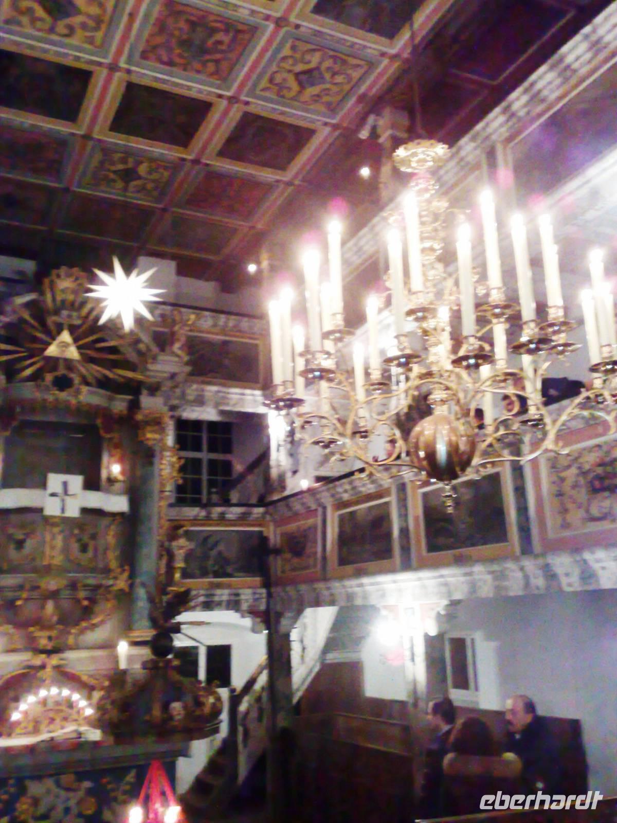 Am späten Nachmittag treffen wir im Hotel ein. Der Weihnachtsmann hat sich auch auf den Weg zu uns gemacht und sorgt sogar für das musikalische Ambiente. Einige von uns zieht es nach dem Abendessen noch in die Bergkirche Oybins, wo wir die Christnacht feiern. Die Kirche, auch „Hochzeitskirche" genannt, wurde 1734 im Stil des Spätbarocks errichtet und glänzt im Inneren durch wunderschön gestaltete Malereien.