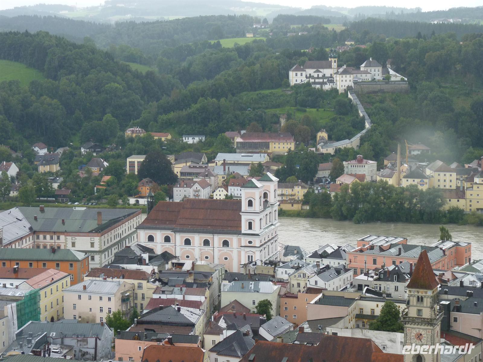 Nach Absprache mit der Chefreisebegleiterin, Frau Irene Schneider, entschieden wir uns trotz des feuchten Wetters, den herrlichen Blick von der Veste Oberhaus zu einem Fotohalt zu nutzen.